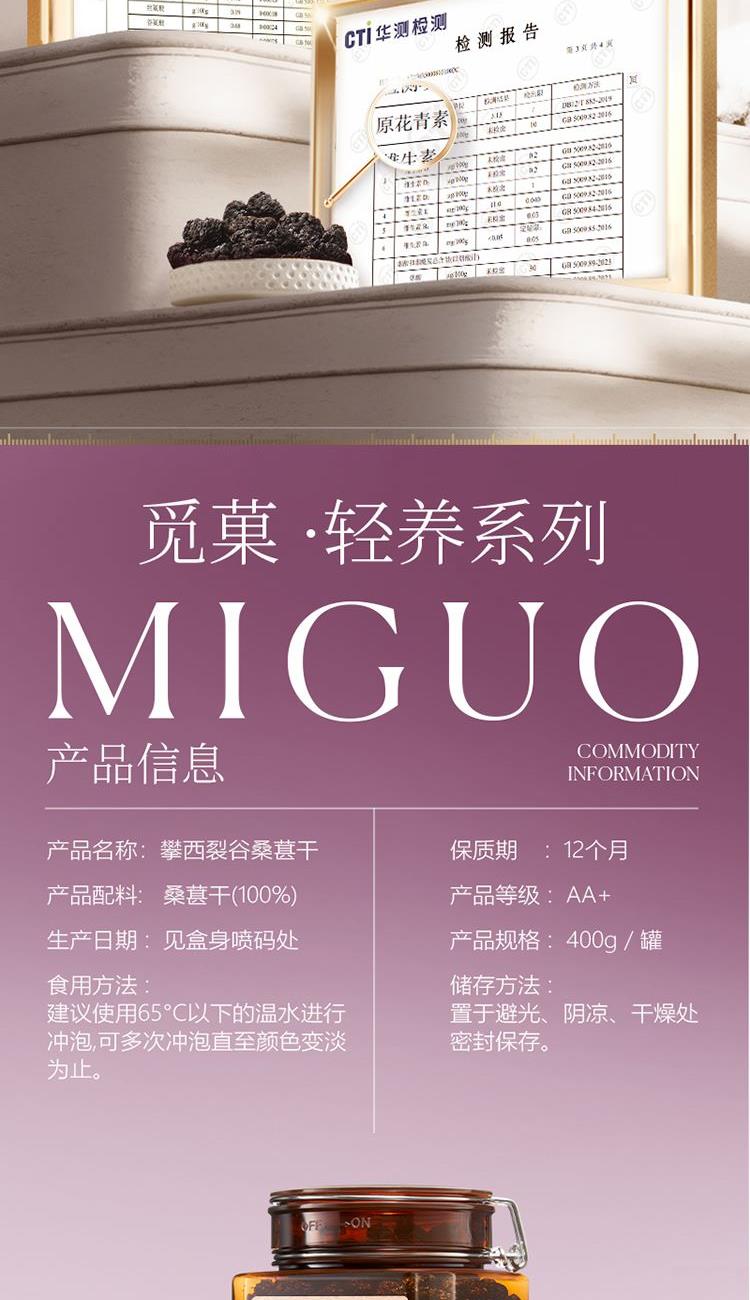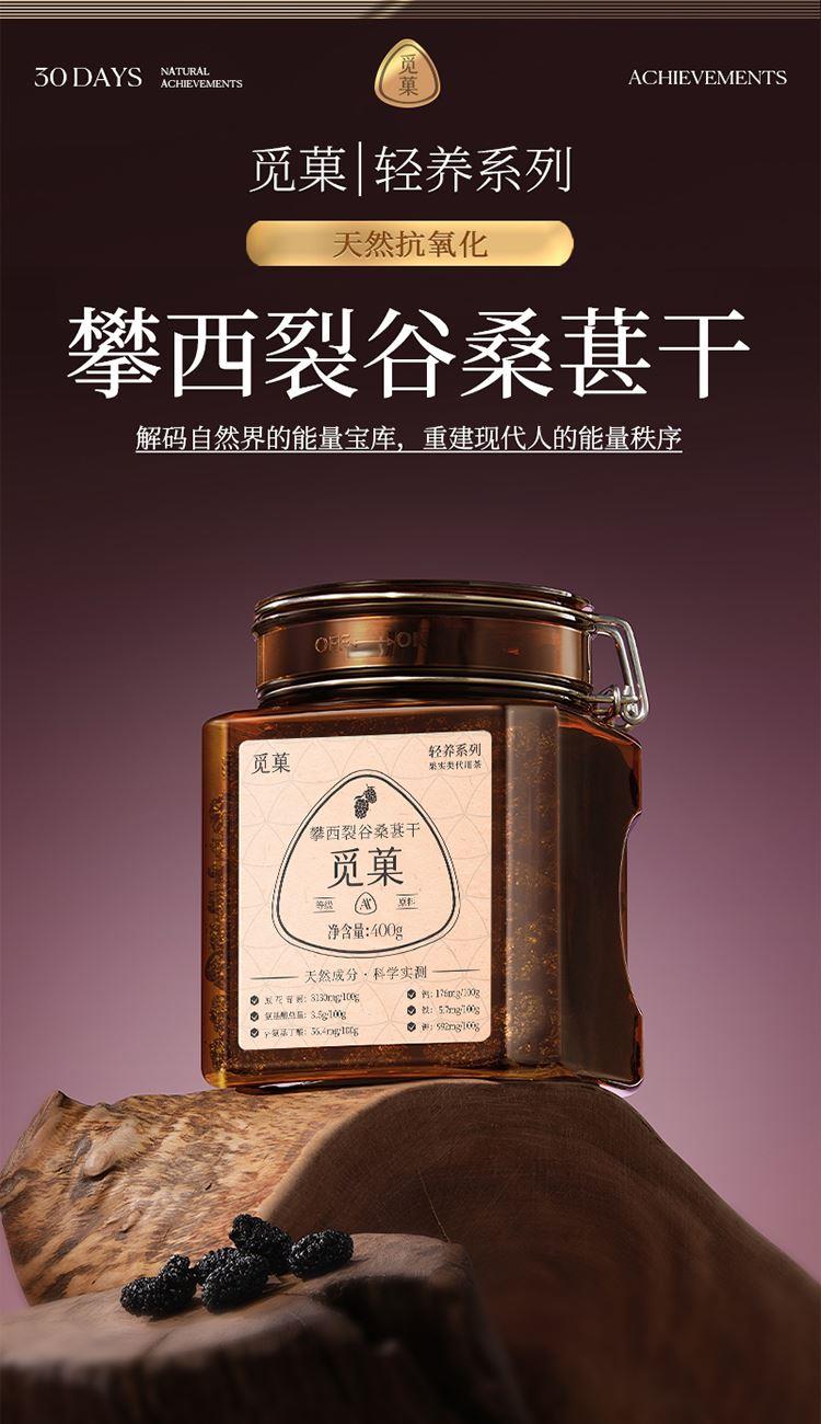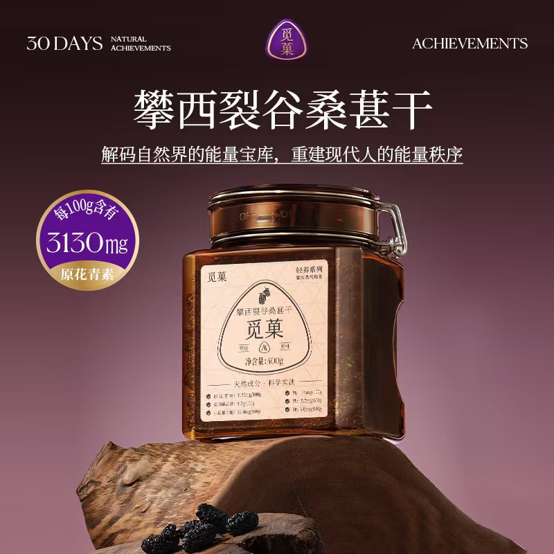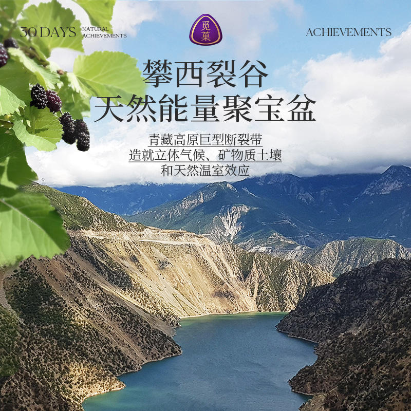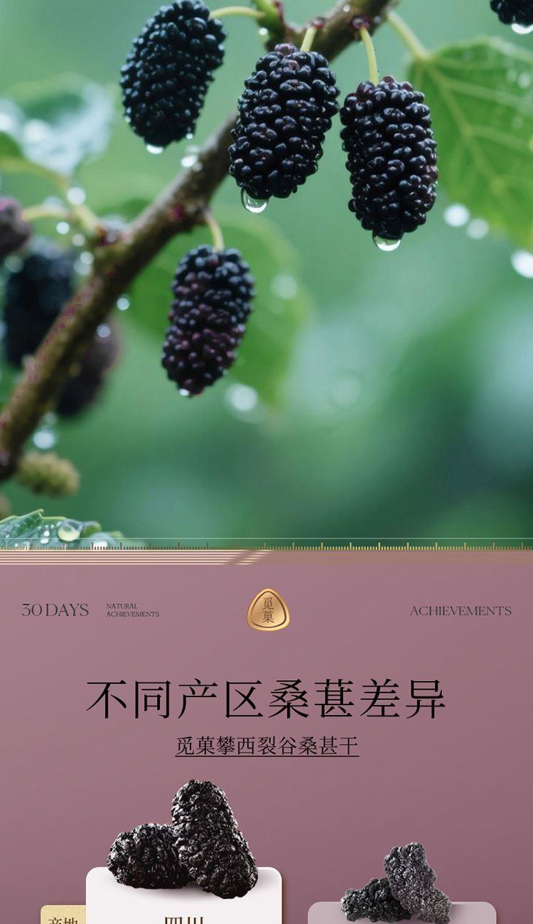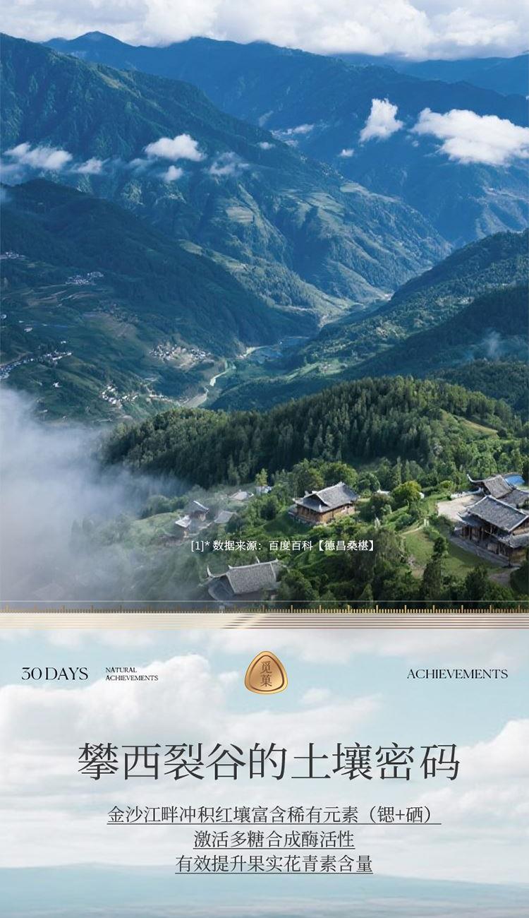 高贵品质 源自果桑之都四川德桑 罕有干热河谷气候 成就高贵品质 营养丰富 丰富多酚类物质 打造天然「防御系统」 丰富的多酚成分 对抗亚健康的天然解决方案 焕颜肌肤 肌肤暗沉救星 每100G原花青素含量 约等于蓝莓的14倍