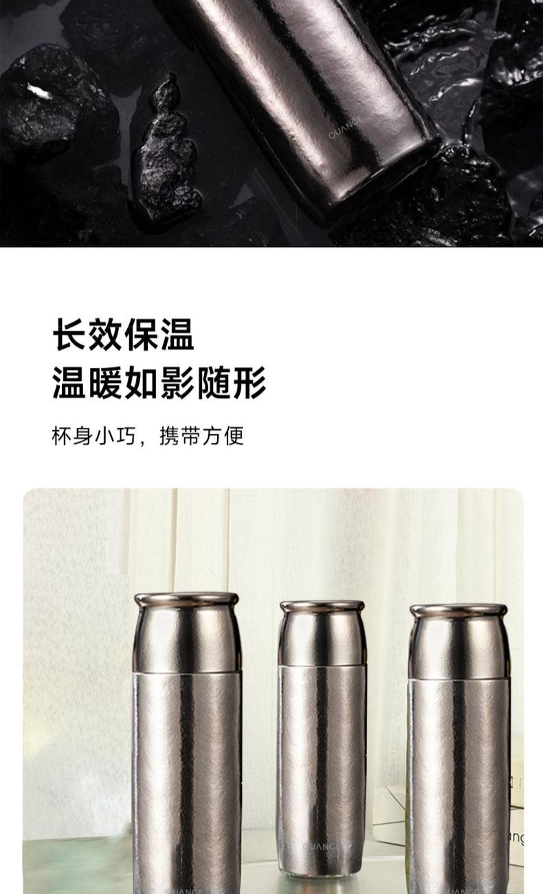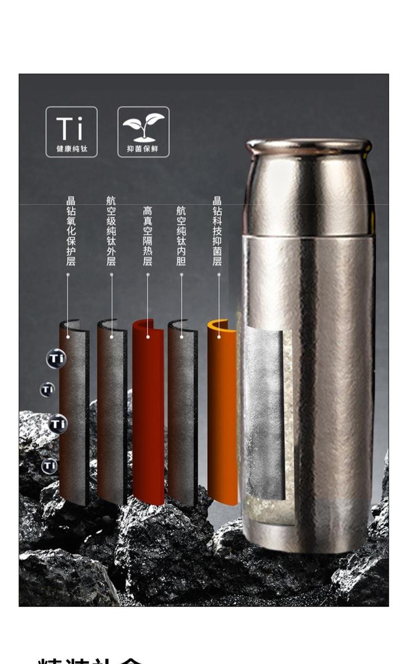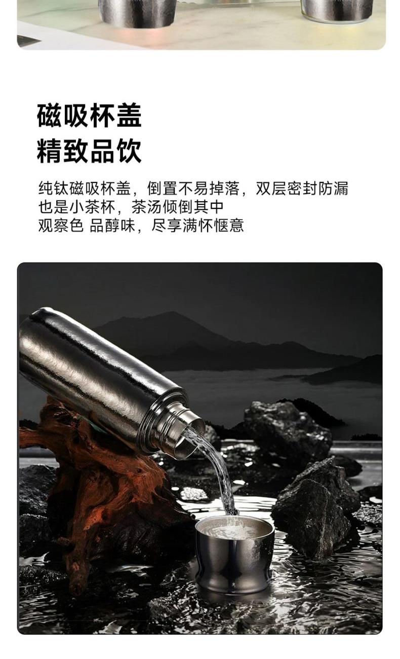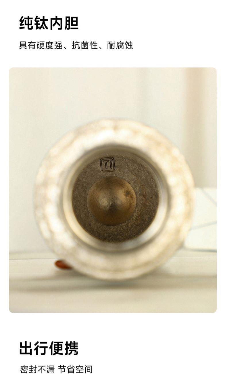颜色:银色 容量:420mL 材质:内胆、外壳、杯盖、茶漏:钛TA1 , 塑料件:PP;密封件:硅橡胶 配置:纯钛茶滤 工艺:本色结晶 产品尺寸:φ70*26mm 包装:礼盒,260*130*90mm 1、轻奢礼盒装(含手提袋) 2、420ml,纯钛材质,磁吸杯盖,一盖两用