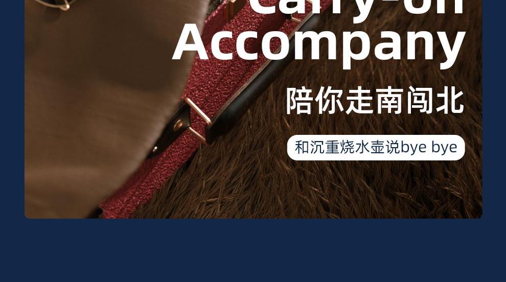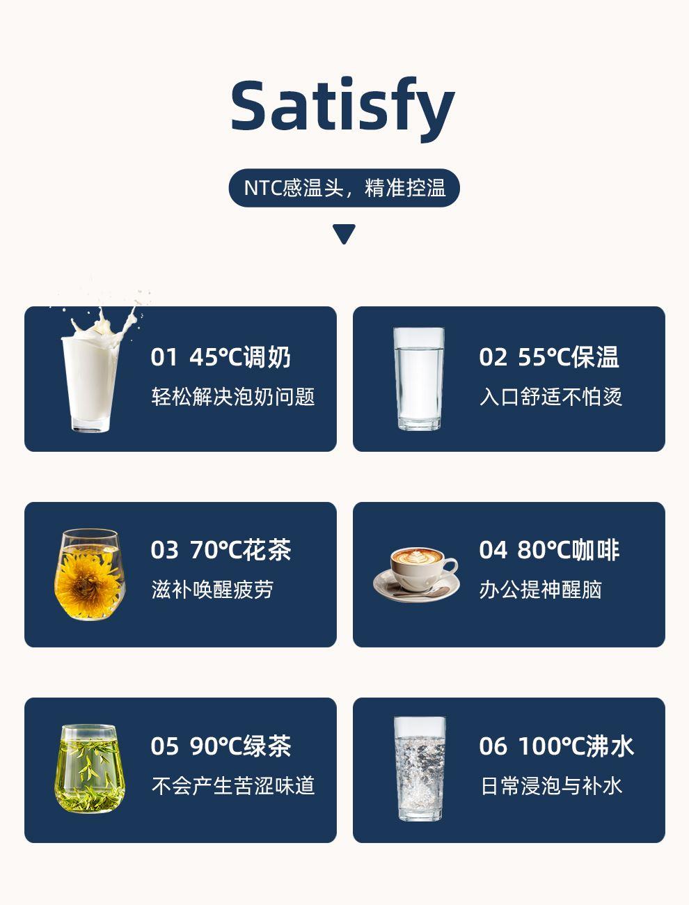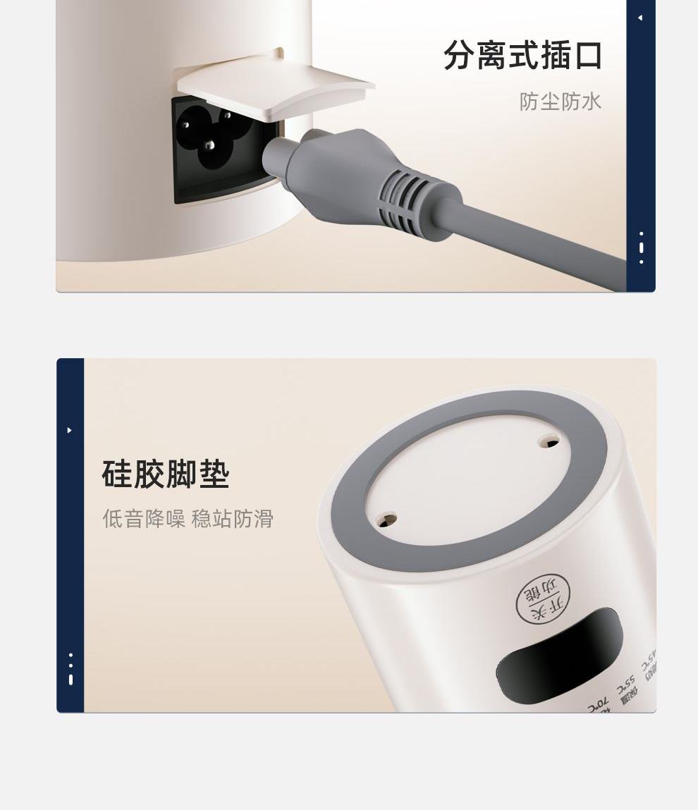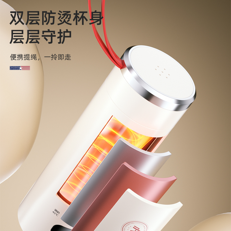 额定功率:800W 额定容量:1000mL 额定电压:220V~ 额定频率:50Hz 产品净重:0.9kg 产品毛重:1.0kg 整箱重量:13.2kg 烧水&保温便携易带,可做水杯使用,亦可触摸按键,快速烧水; 7段调温40°-100°C可调,温度实时显示,18h预约8h长效保温; NTC感温头,控温,防止干烧; 304不锈钢内胆食品接触用材质,耐高温耐腐蚀,保温性强; 基本配置1L大容量,双层防烫杯身,便携提手,内钢壶盖 兼作水杯,便携饮水;电源线拔插分离设计。