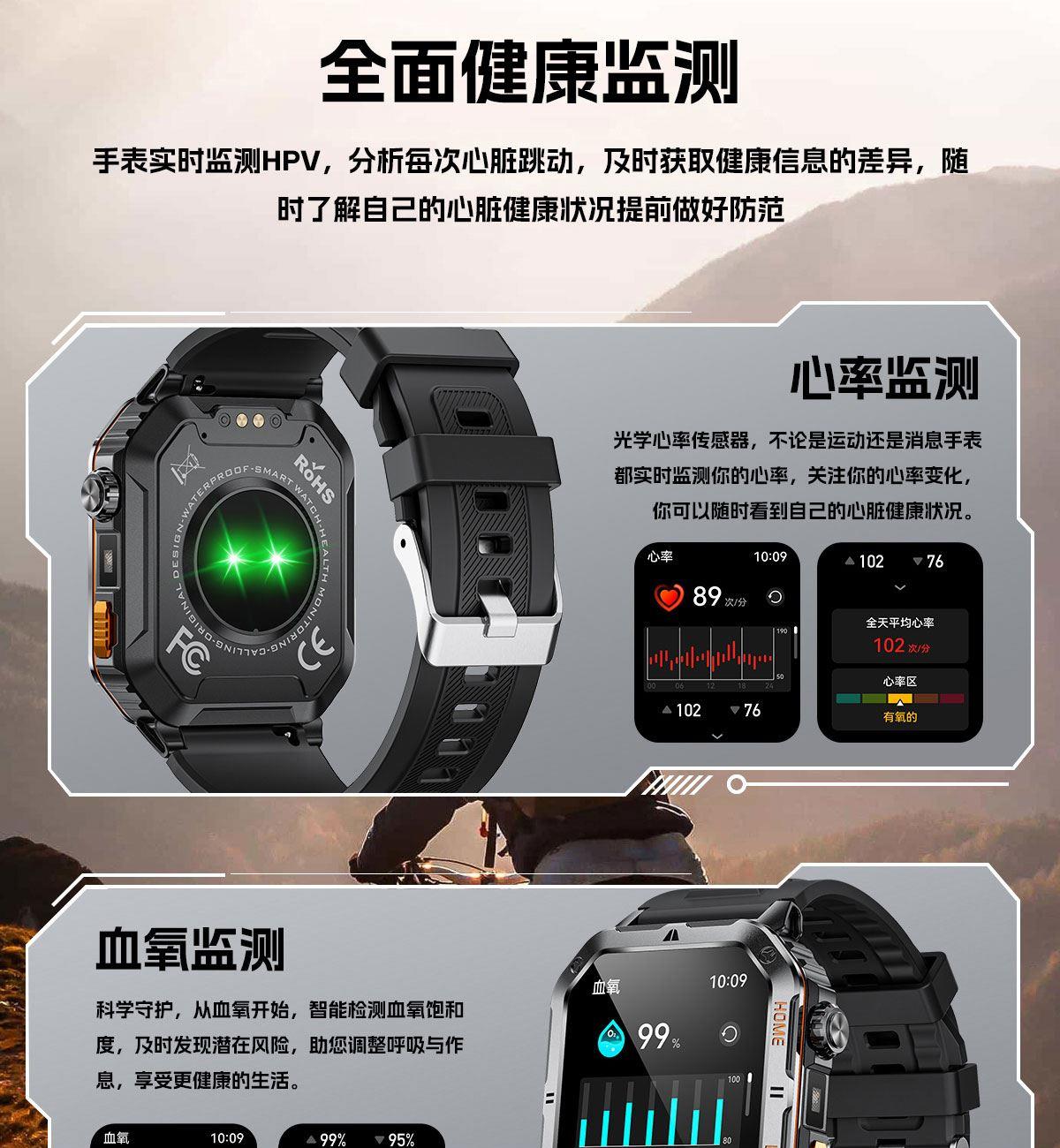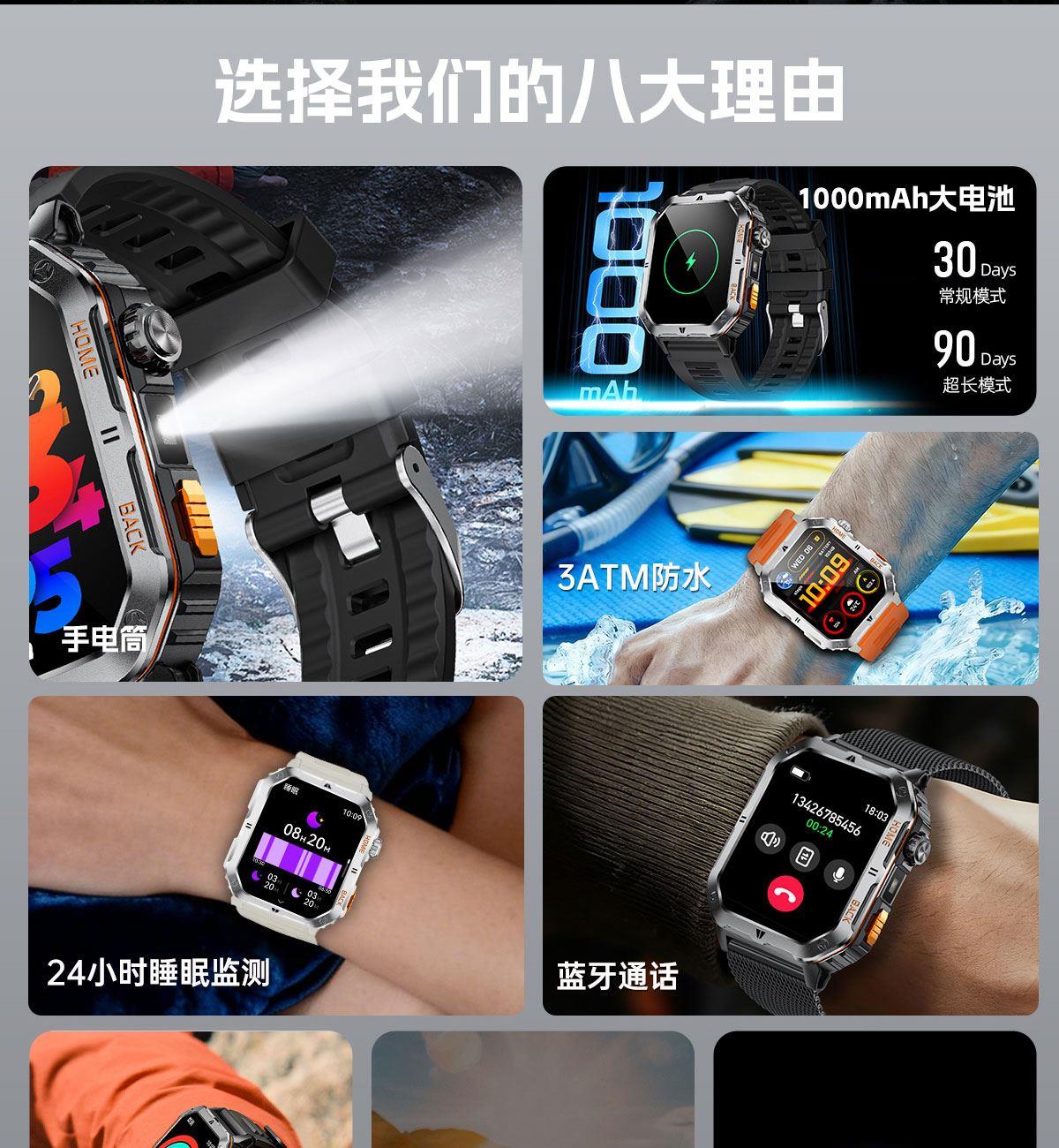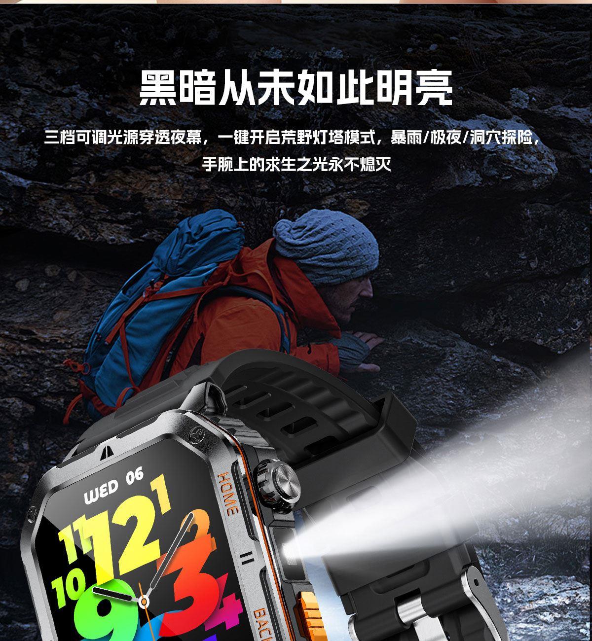 LIGE利格军工系带手电筒蓝牙通话智能手表BWMT62