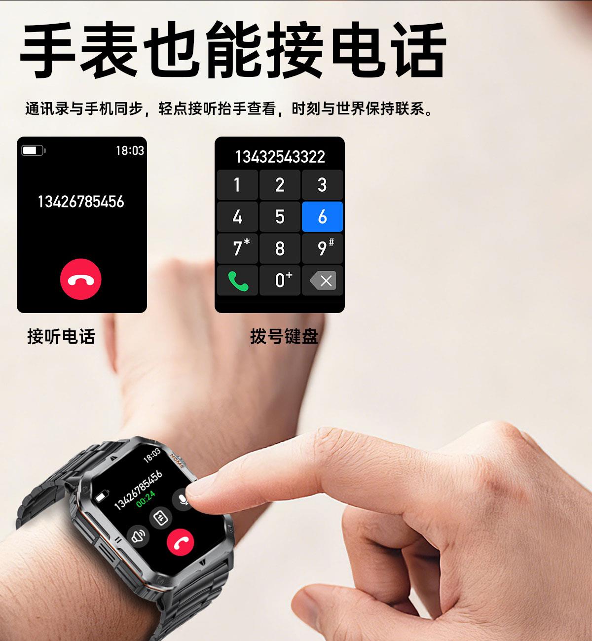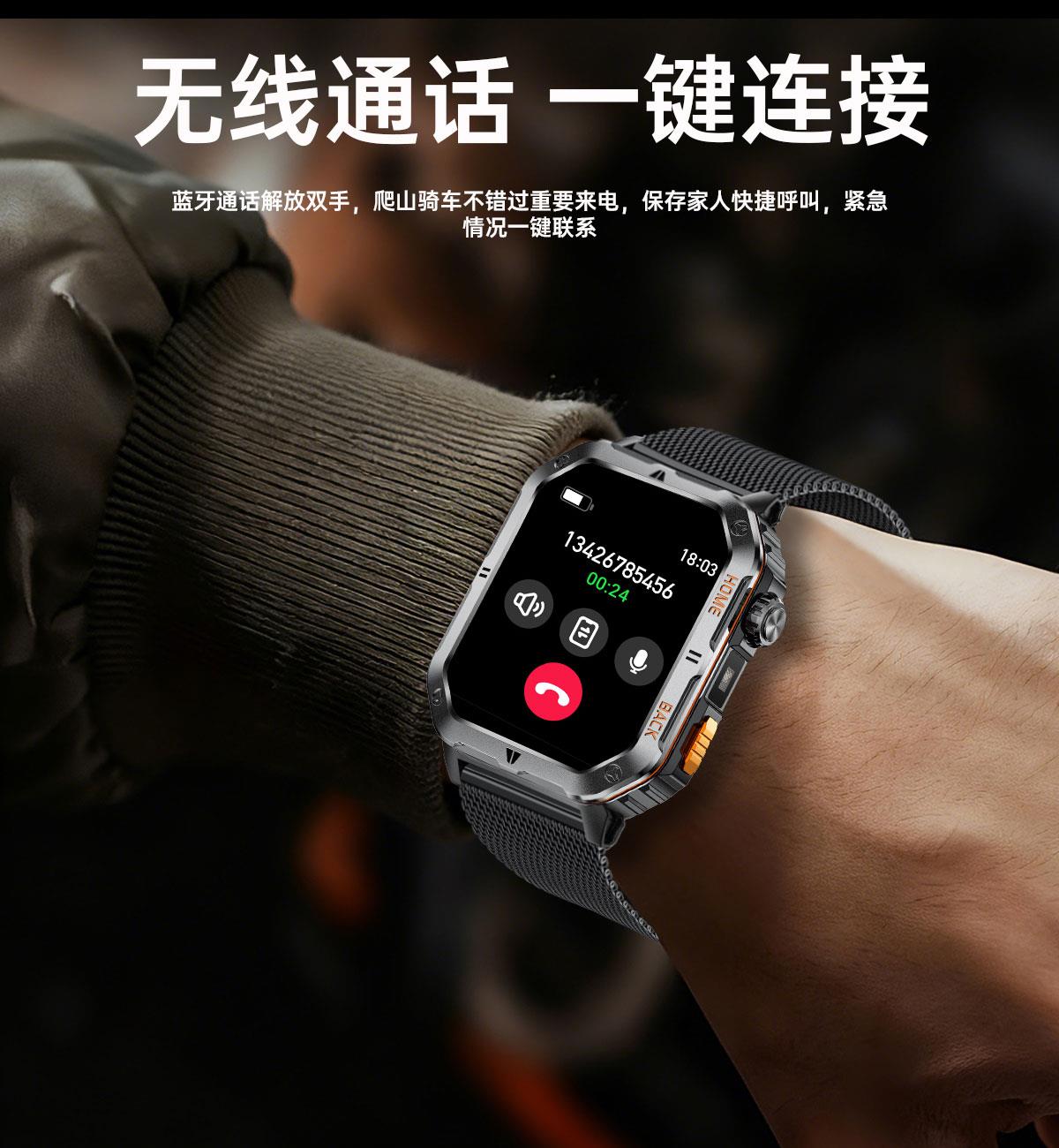 LIGE利格军工系带手电筒蓝牙通话智能手表BWMT62 LIGE利格军工系带手电筒蓝牙通话智能手表BWMT62