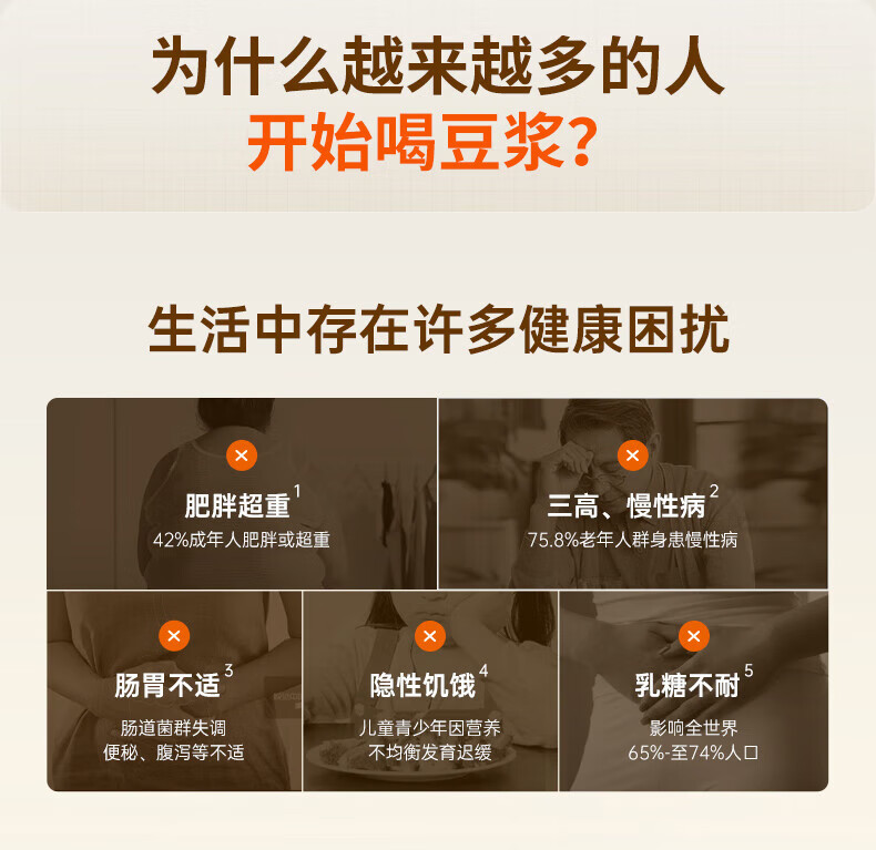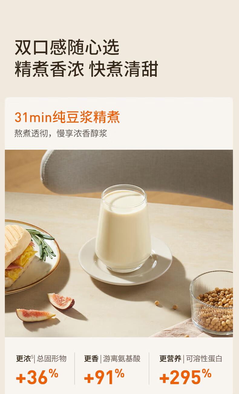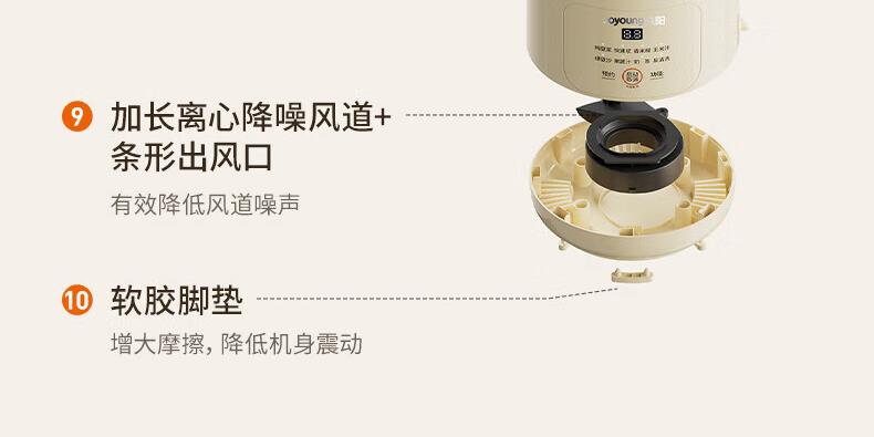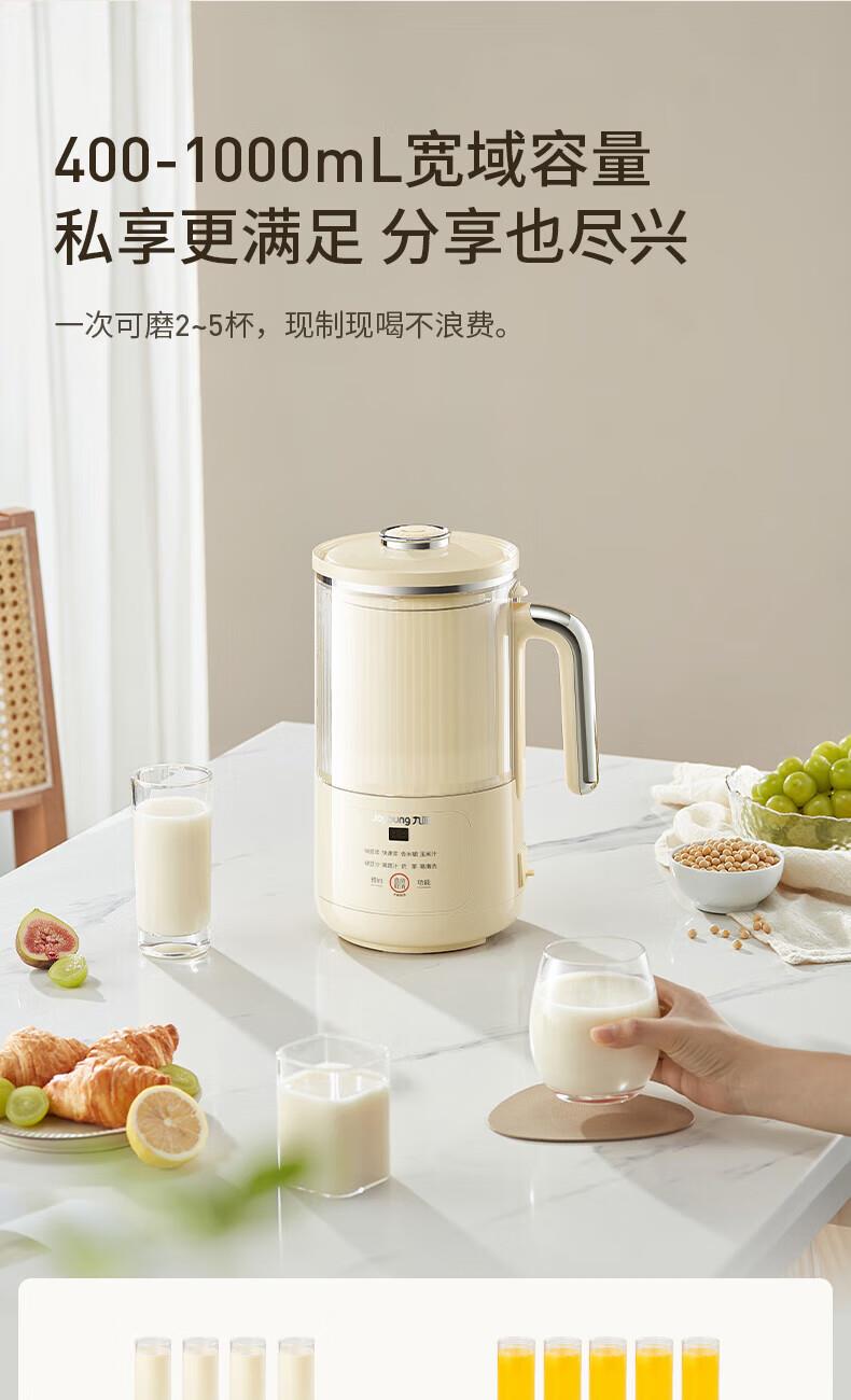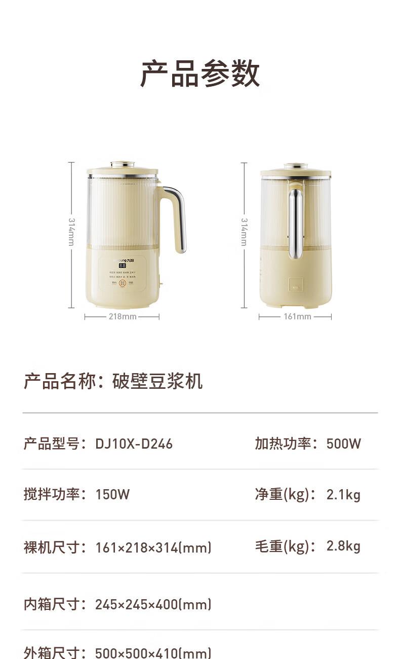 噪音低至45dB; 小巧不占地,简易好拆装; 22min特快浆; 细腻免滤,营养香浓; 双口感可调 容量:1000mL 单台包装尺寸:245L*245W*400Hmm