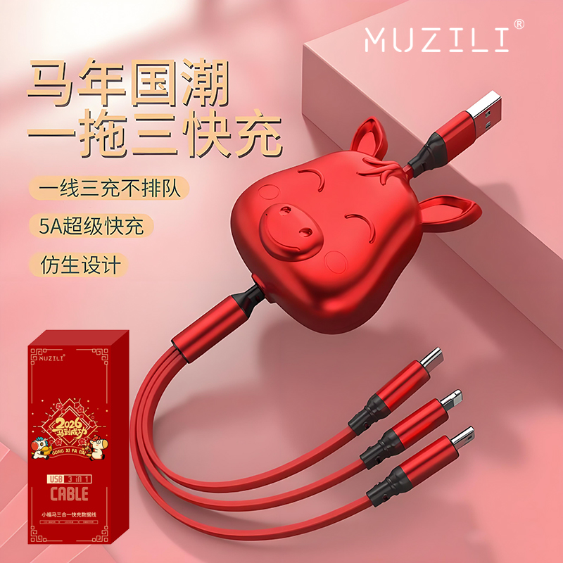 MUZILI·小福马66W一拖三超级快充生肖数据线