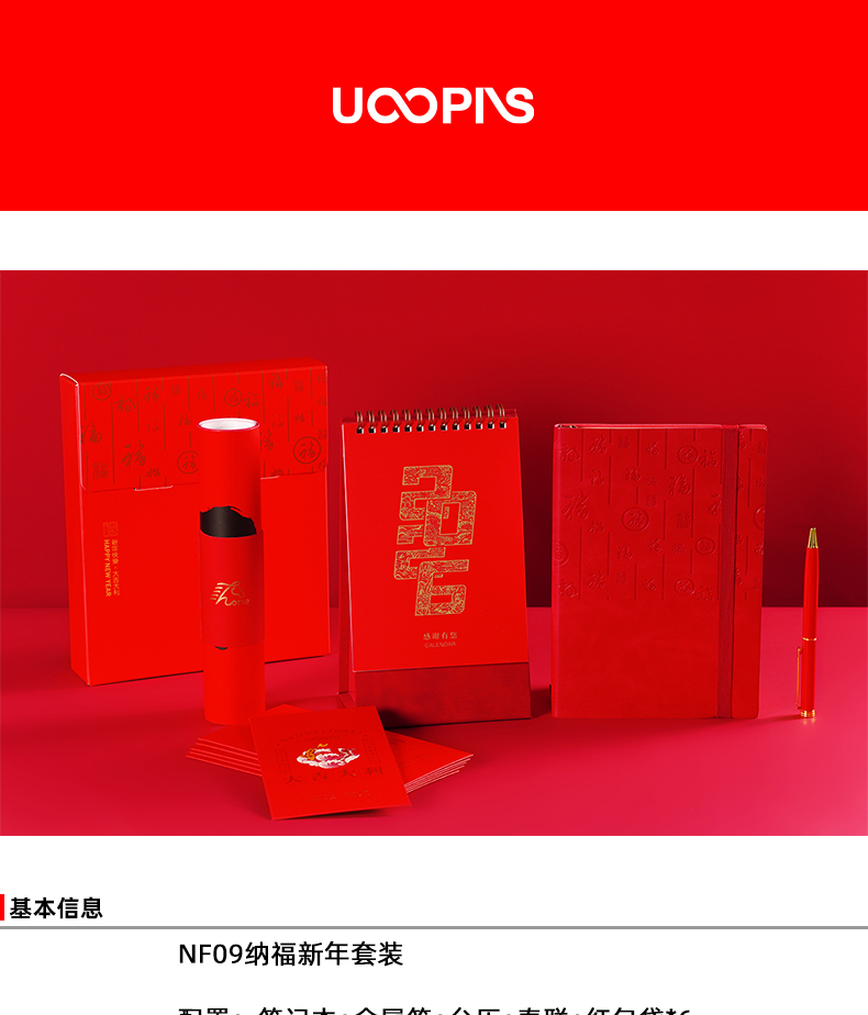 UOOPINS(优品序)纳福新年笔记本台历春联套装