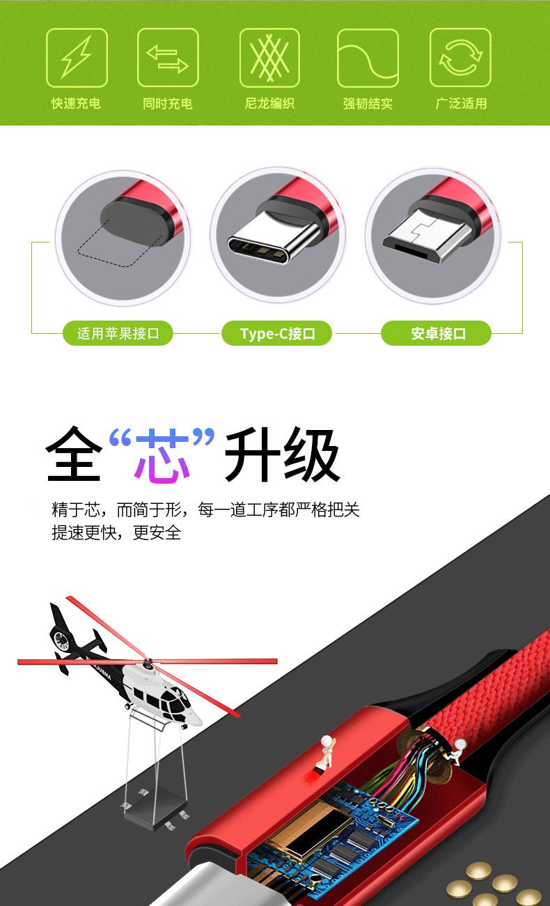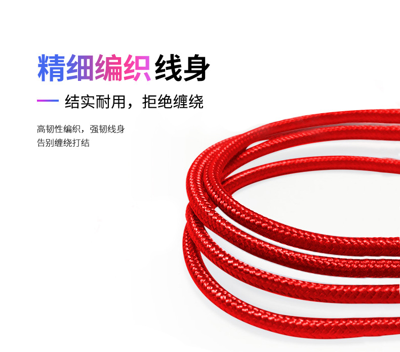 长 度:120cm 材 质:合金外壳+编织线身+铜丝 颜 色:中国红 宝石蓝 咖啡 骑士黑 墨蓝 接 口:苹果接口 安卓接口 Type-c接口 功 能:充电 输出电流:2A 产品净重:36.5g