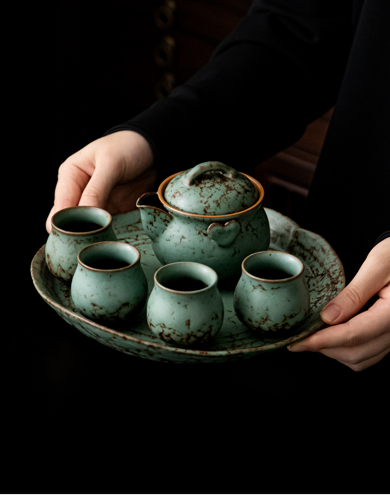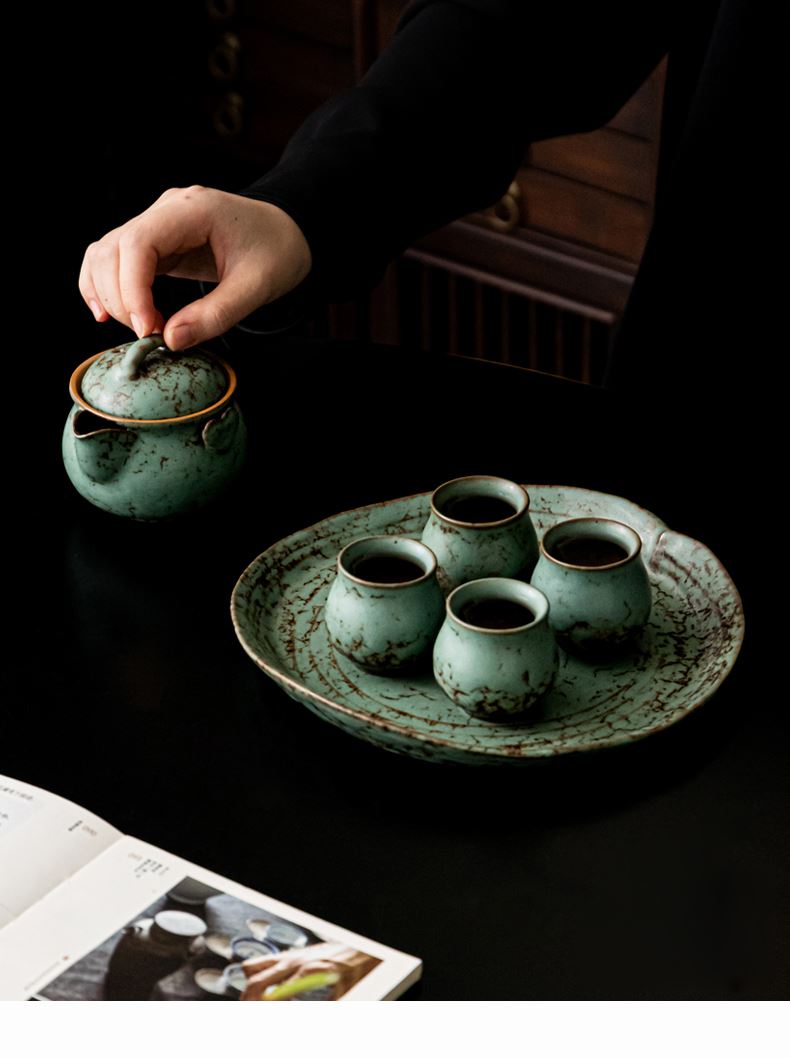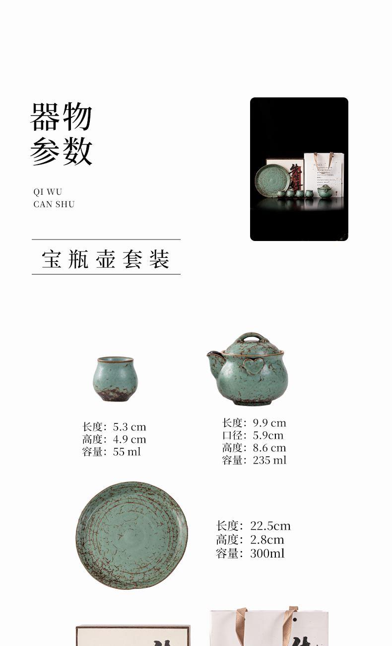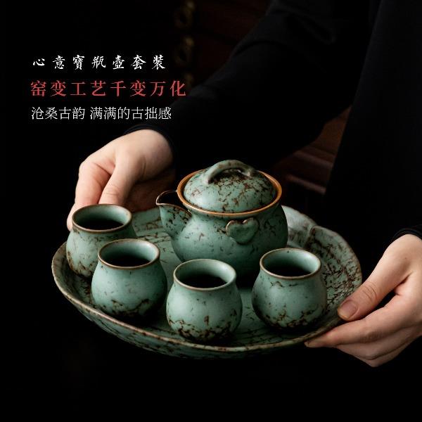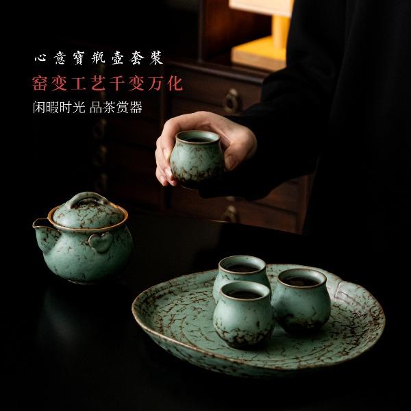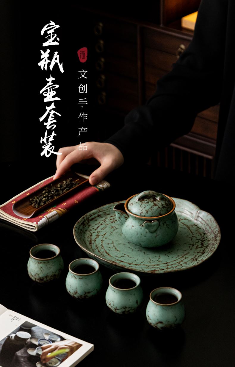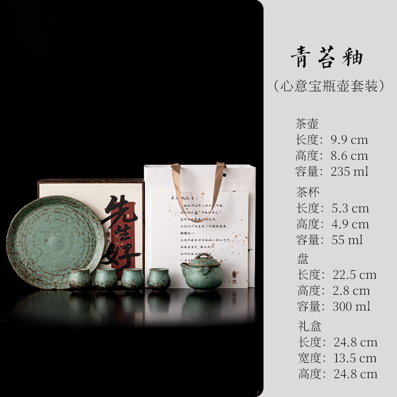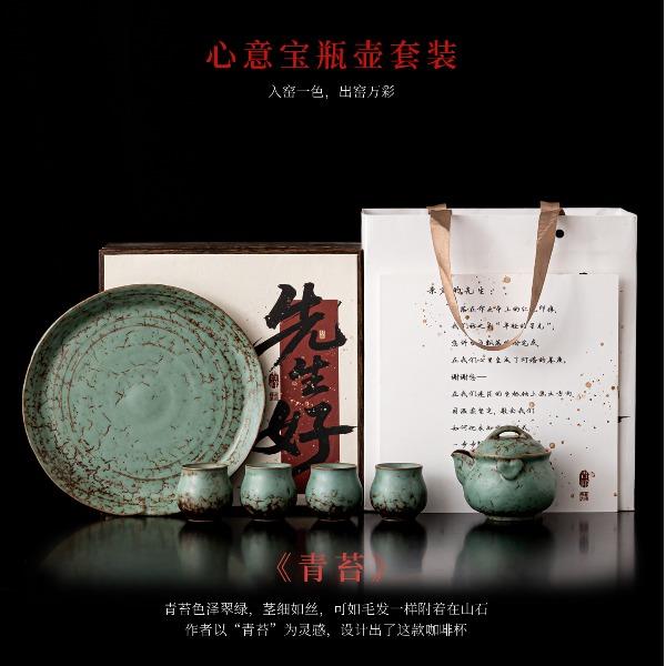 尾桥下窑文创复古青苔釉心意宝瓶壶茶具套装节日礼品茶事伴手礼