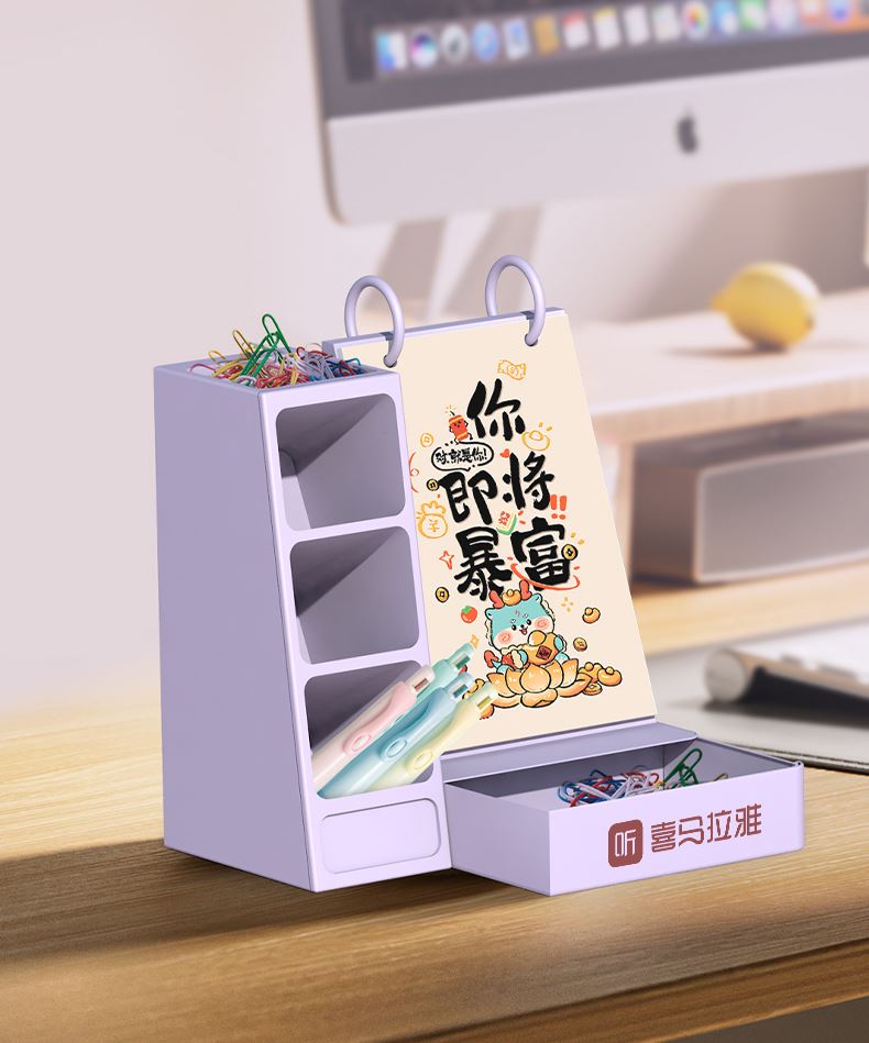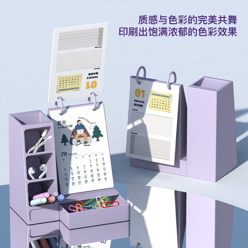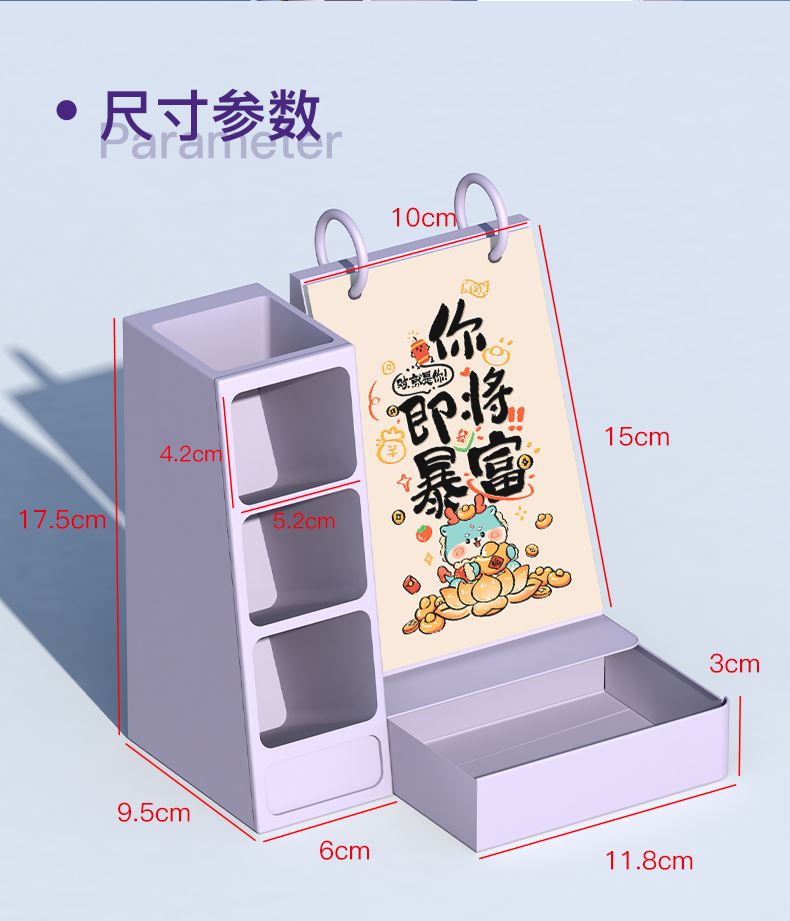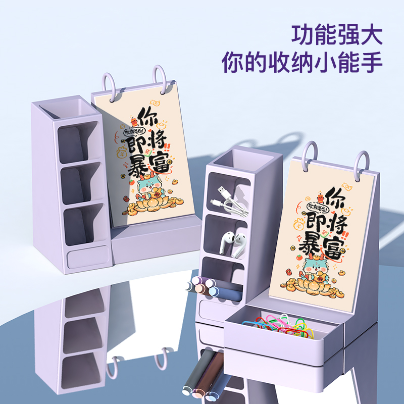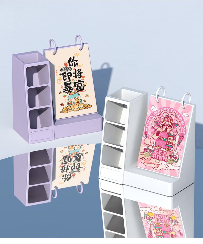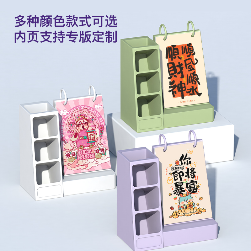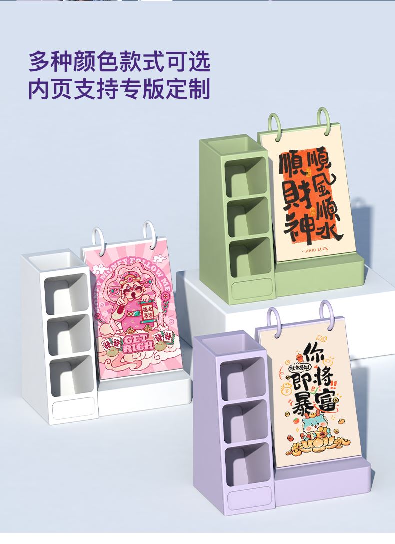 2026年创意桌面塑料笔筒台历学生打卡计划日历新款工厂批发