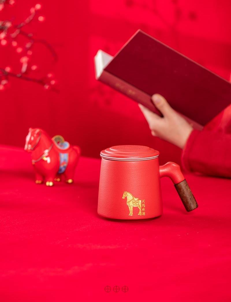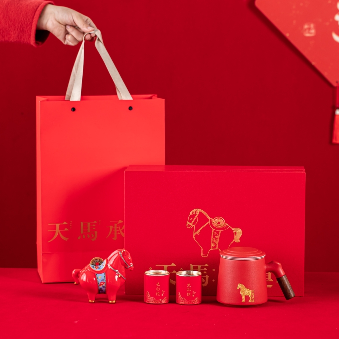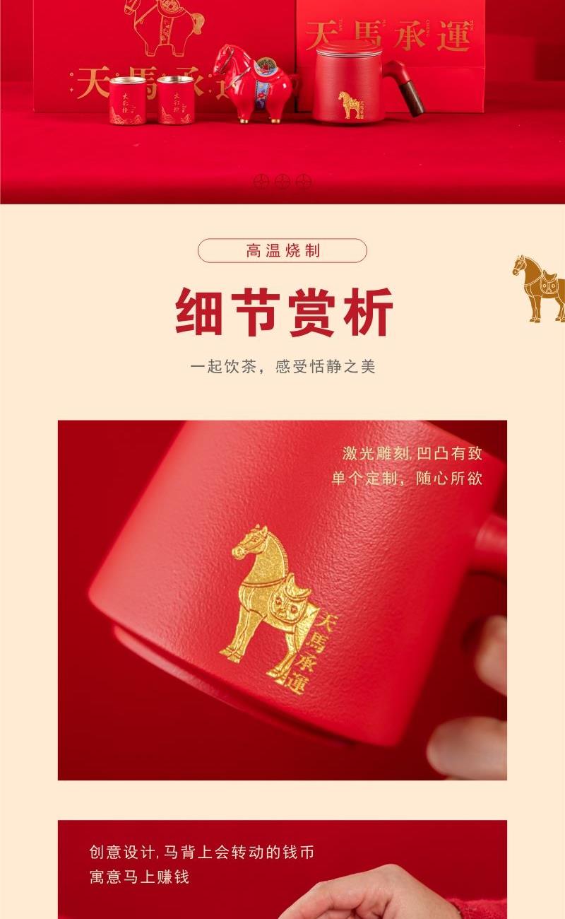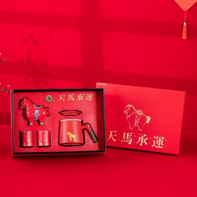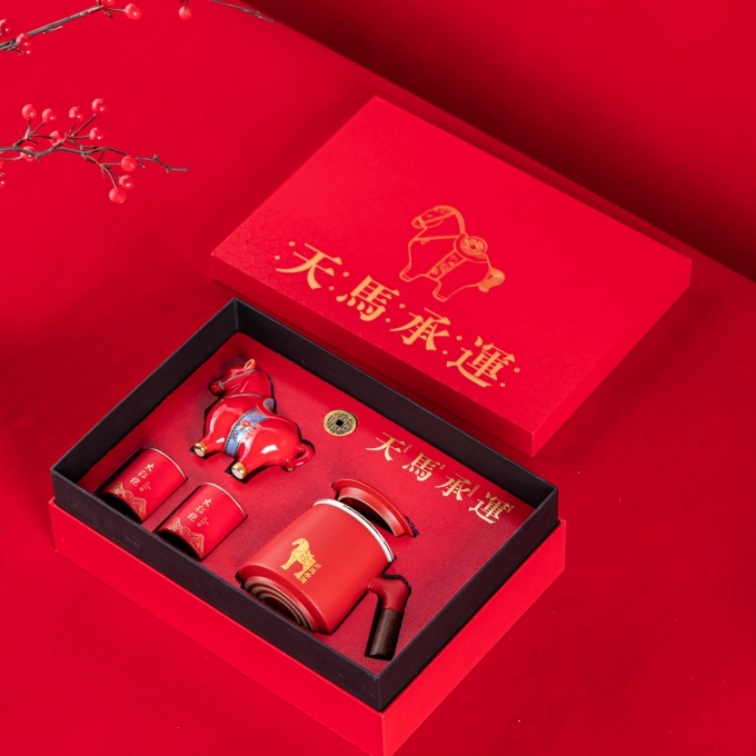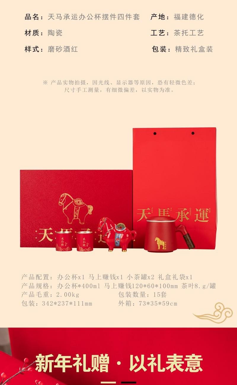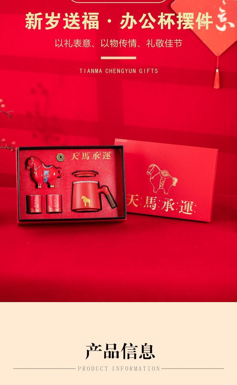 开门红年会茶具礼品天马承运办公杯摆件四件套