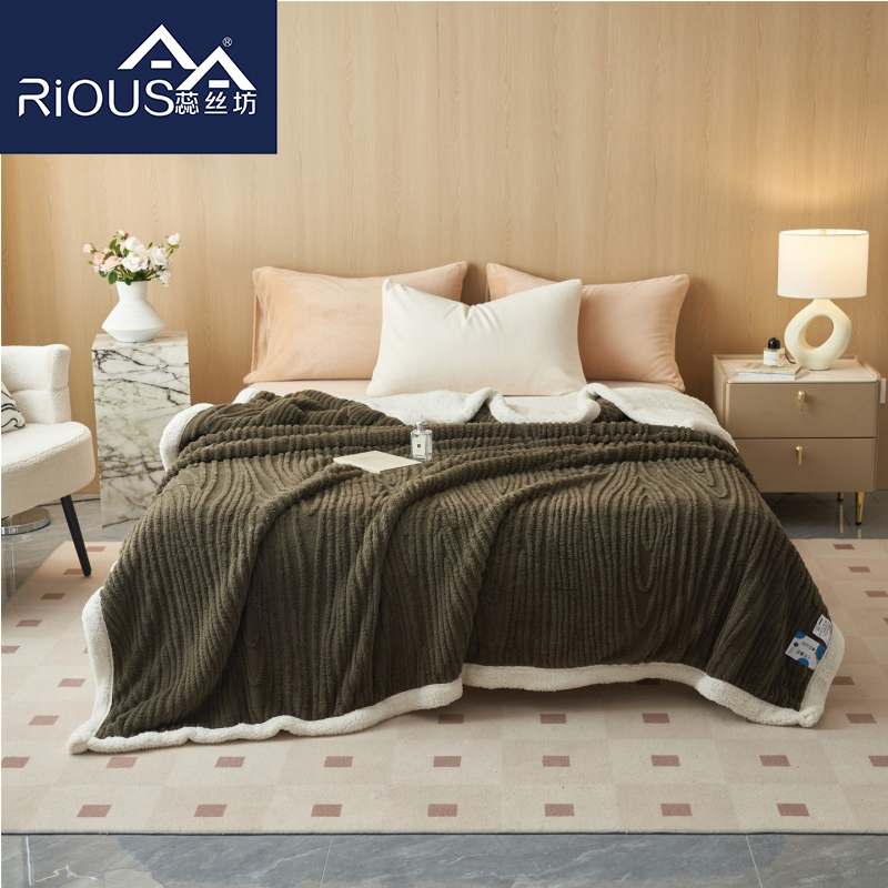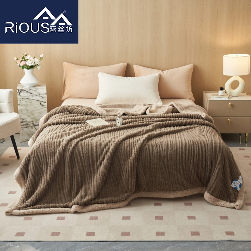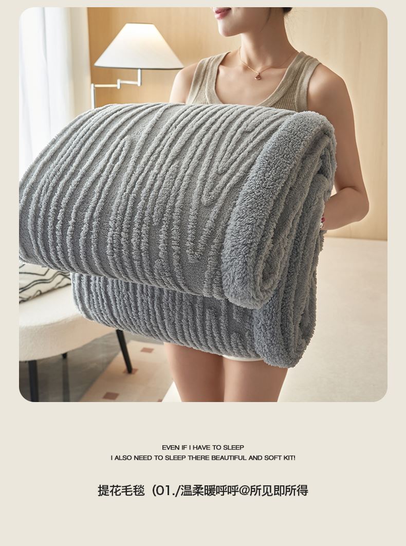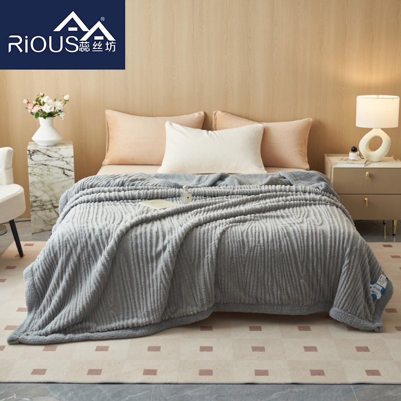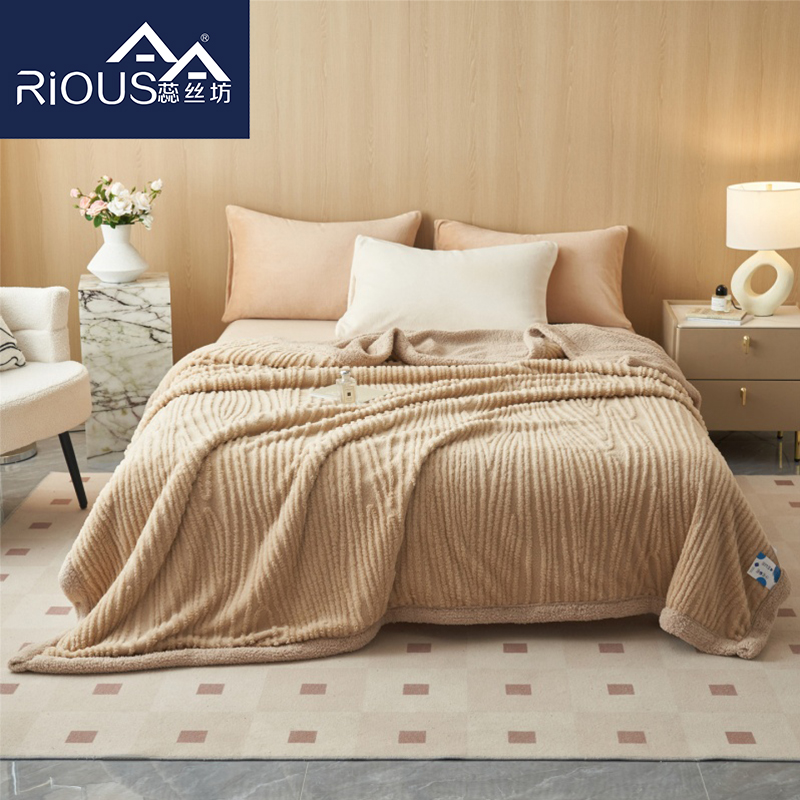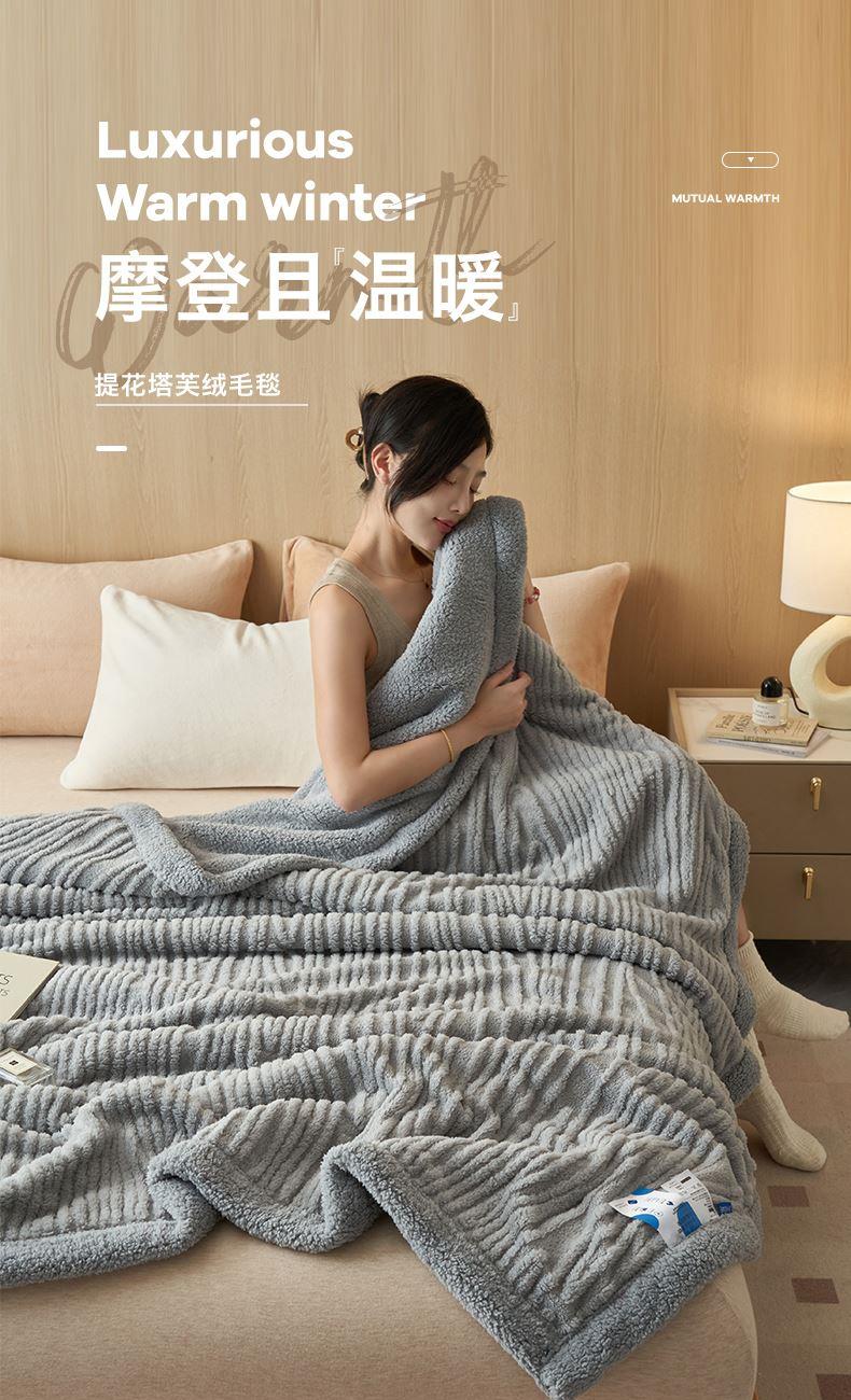 蕊丝坊家纺新款提花塔芙绒双层毛毯150*200cm