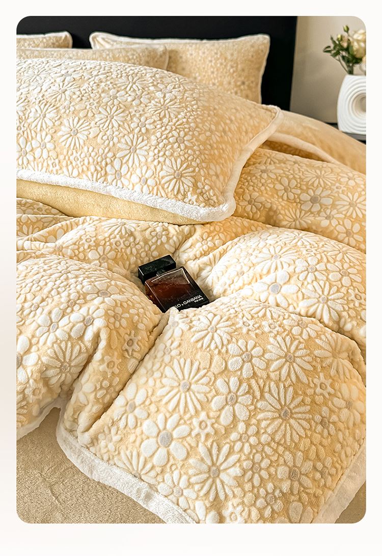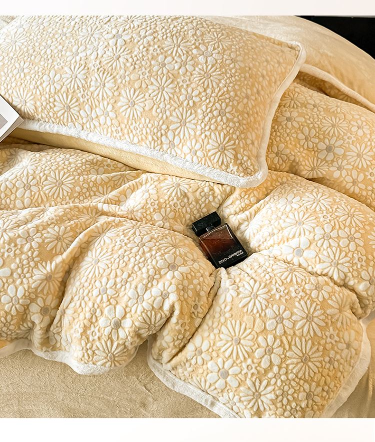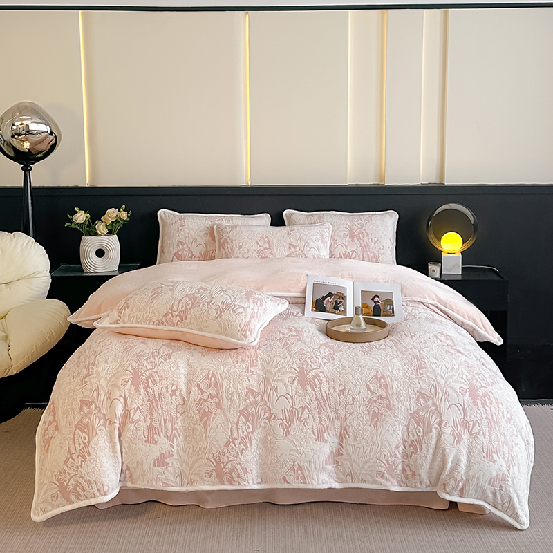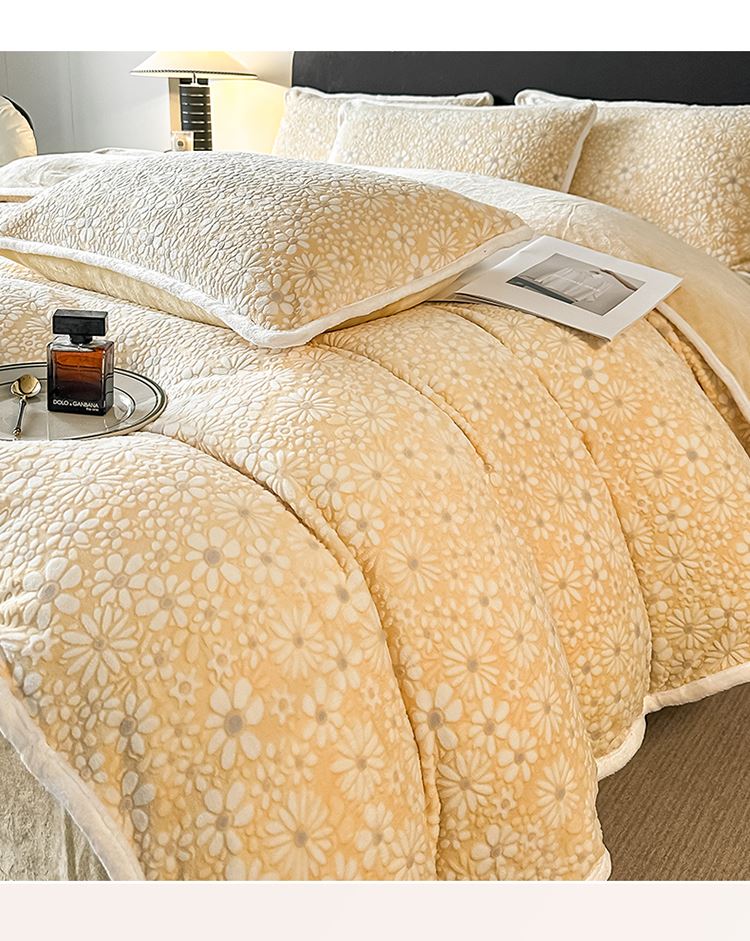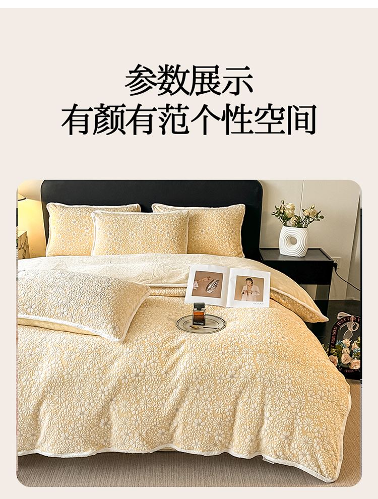 花花公子-家纺-牛奶绒加厚雕花冬季保暖四件套(8斤净重)