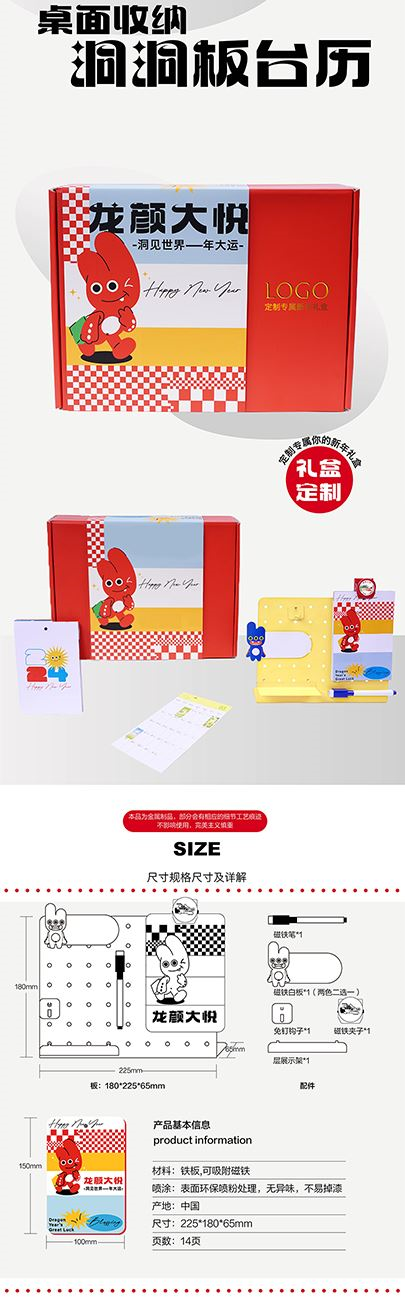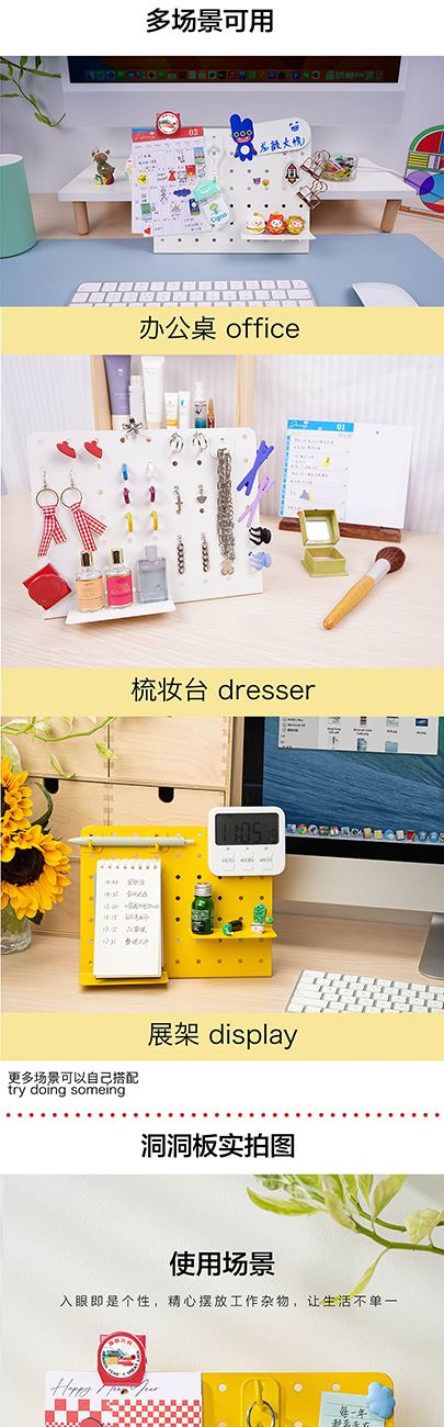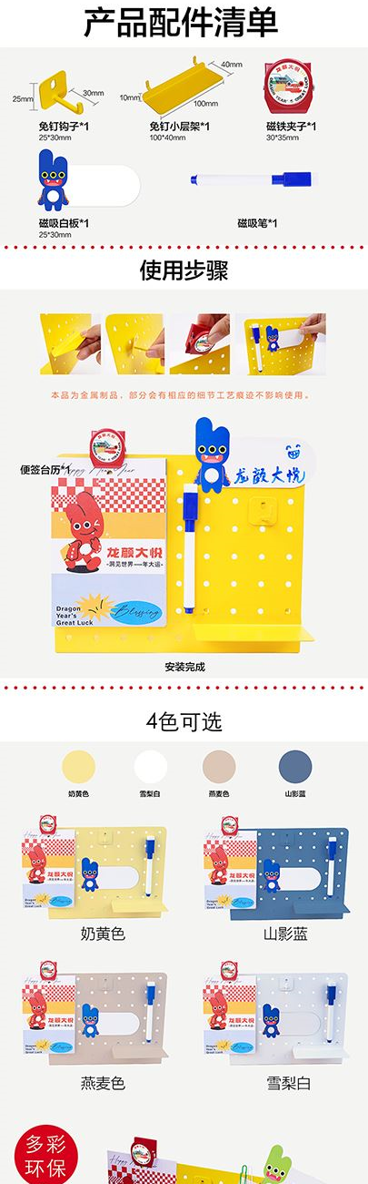 奶黄色桌面洞洞板*1 23cm*18*6.5cm 记事月历*1 10cm*15cm 13张 免钉小层架*1 7.5cm*4.5cm 包装盒尺寸:27.5*23.3*10.5cm