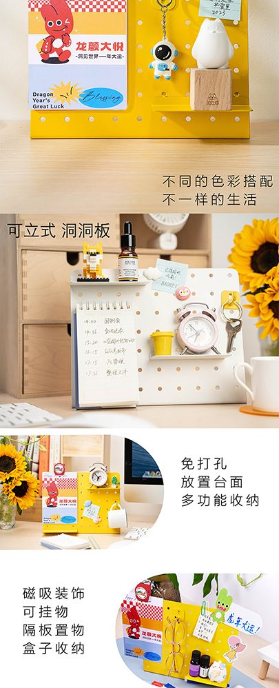 贪吃猫文创2025全新斜面奶黄色桌面洞洞板
