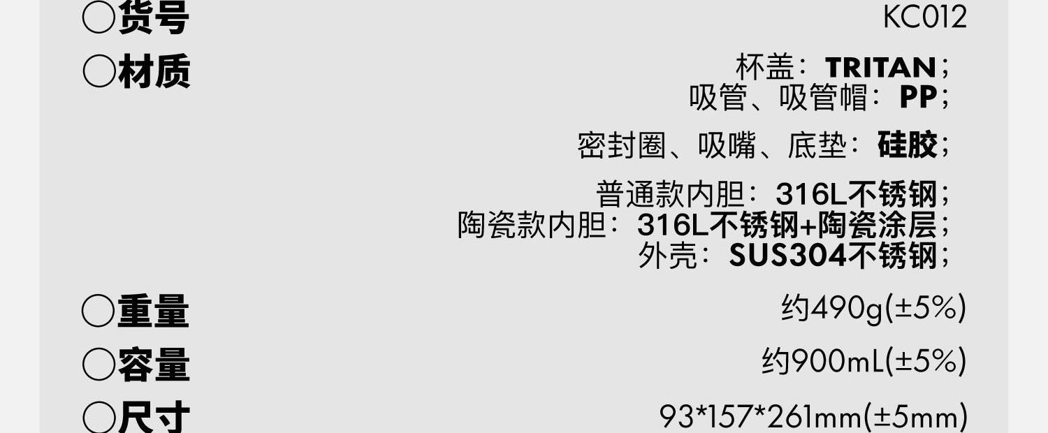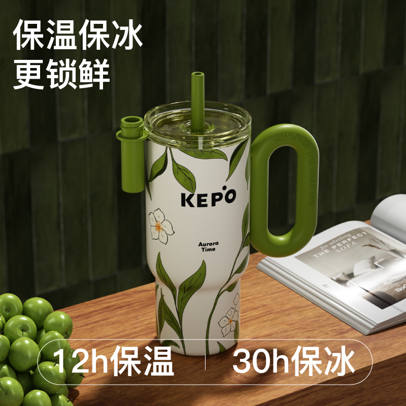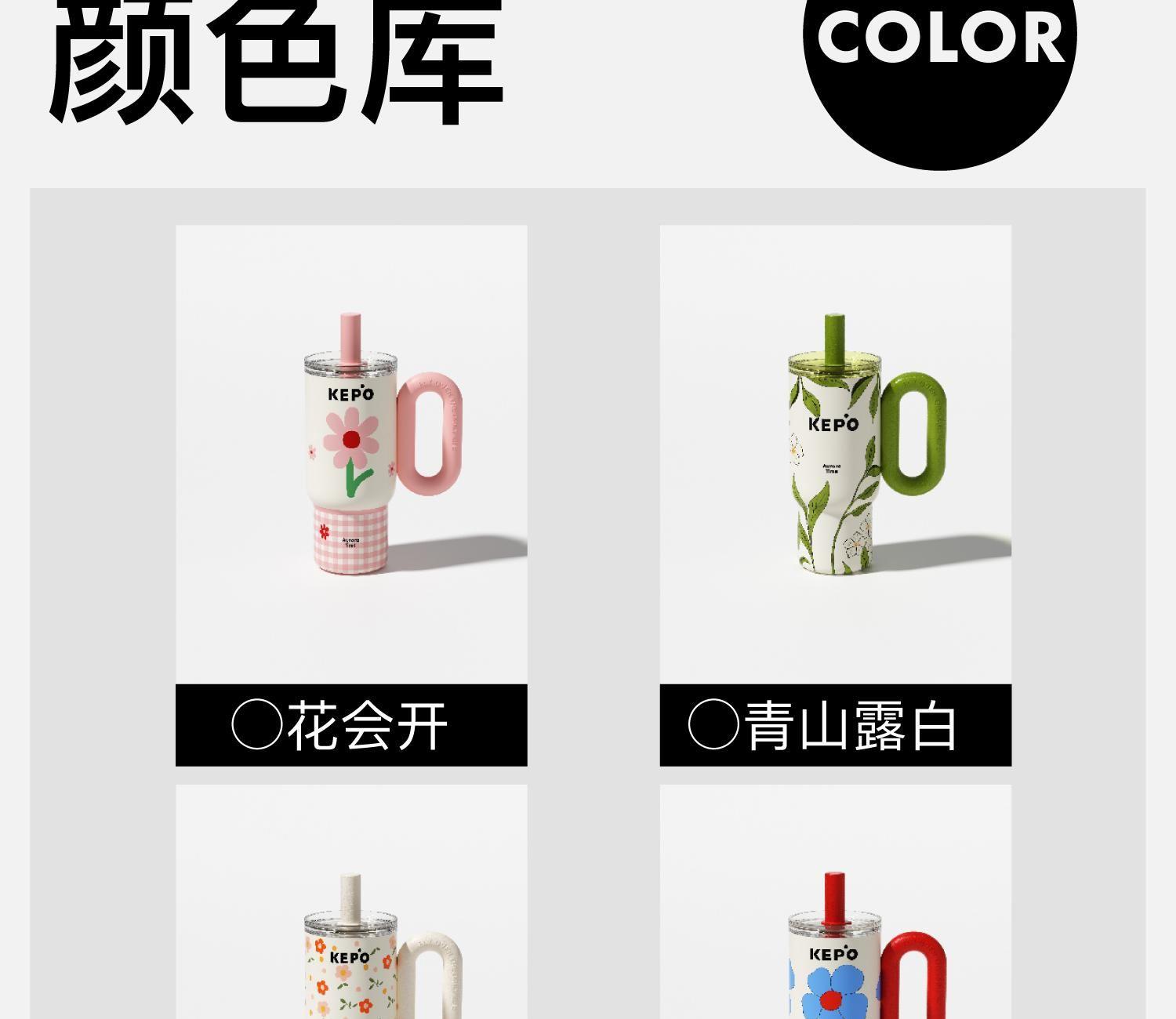 材质:陶瓷覆层内胆、硅胶、Tritan 颜色:浮春、花会开、青山露白、慵懒夏日 包装:彩盒 (1)双重防漏,安心放在包包里 (2)大容量,满足一天的饮水量 (3)车载可用设计 (4)圆润把手,便携外带,握持舒适 (5)长效保温、保冷(12H)