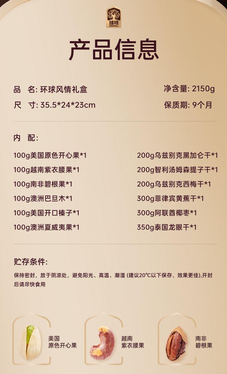 臻味纯坚果礼盒环球风情2150g每日坚果休闲零食企业团购福利 臻味纯坚果礼盒环球风情2150g每日坚果休闲零食企业团购福利
