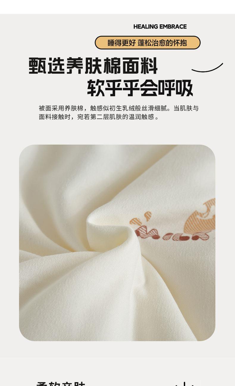 1.被面采用养肤棉,触感似初生乳绒般丝滑细腻。当肌肤与面料接触时,宛若第二层肌肤的温润触感,特别适合敏感肌与追求精致睡眠的人群。