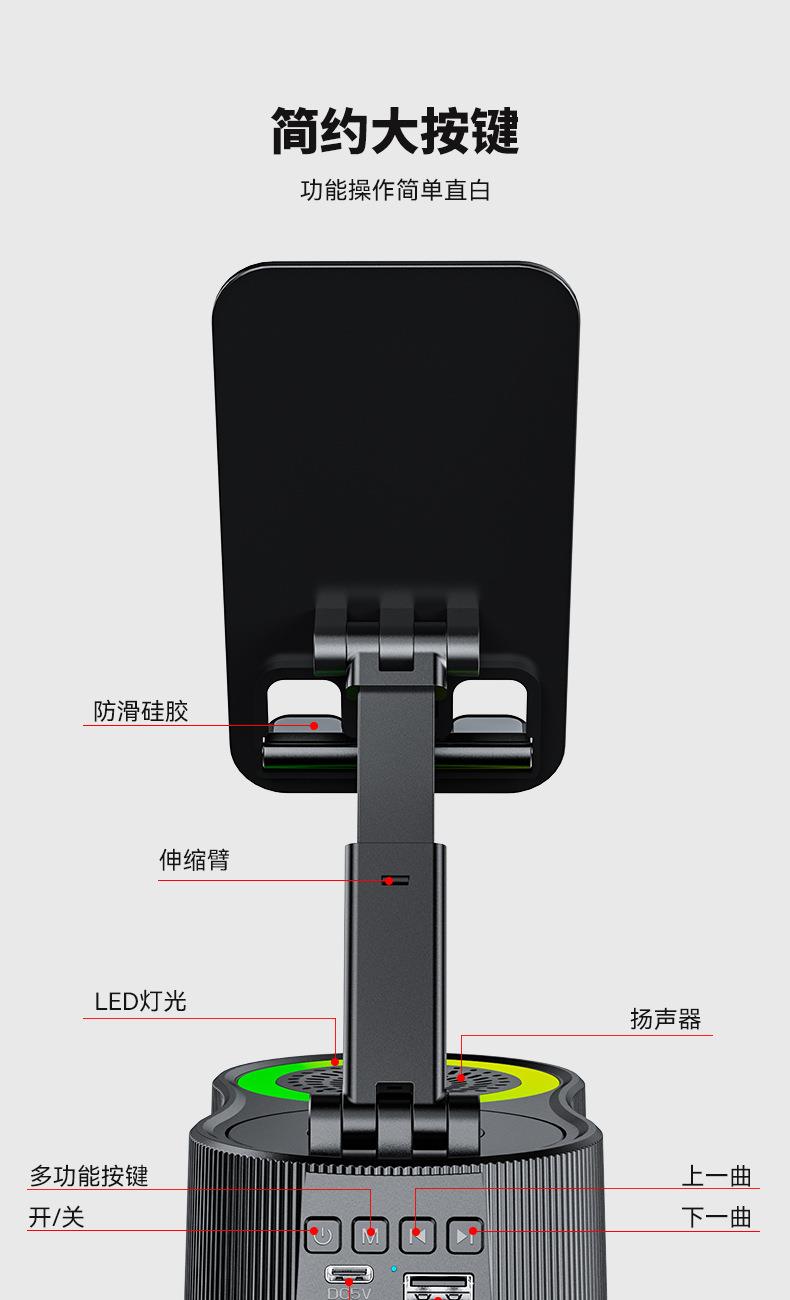 奥苏米三合一手机支架炫彩无线蓝牙音响充电宝