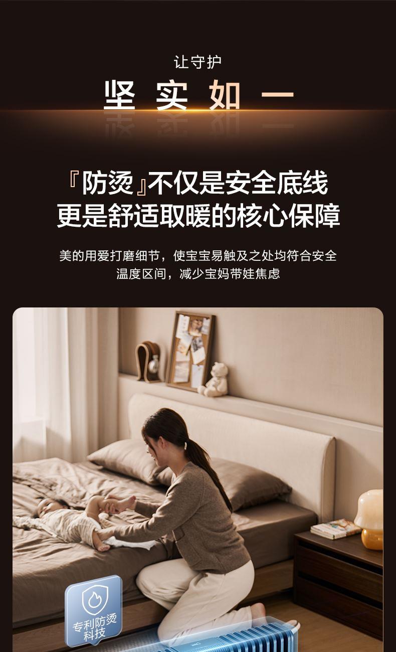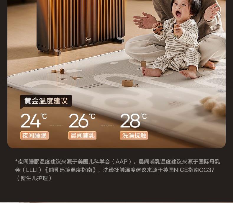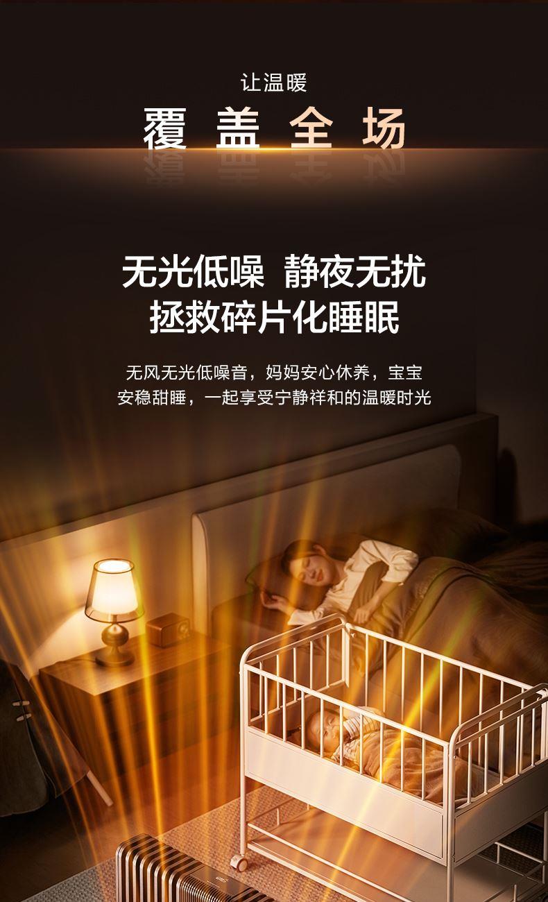 包装尺寸:962 x 205 x 699 mm 商品尺寸:702 x 125 x 568 mm 毛重:19 kg 【温和升温】 告别干燥强风!油汀通过温和的对流方式均匀加热空气,如同阳光般自然舒适。同时升温过程细腻柔和,有效维持室内空气湿度,避免直吹导致宝宝肌肤干燥、呼吸道不适