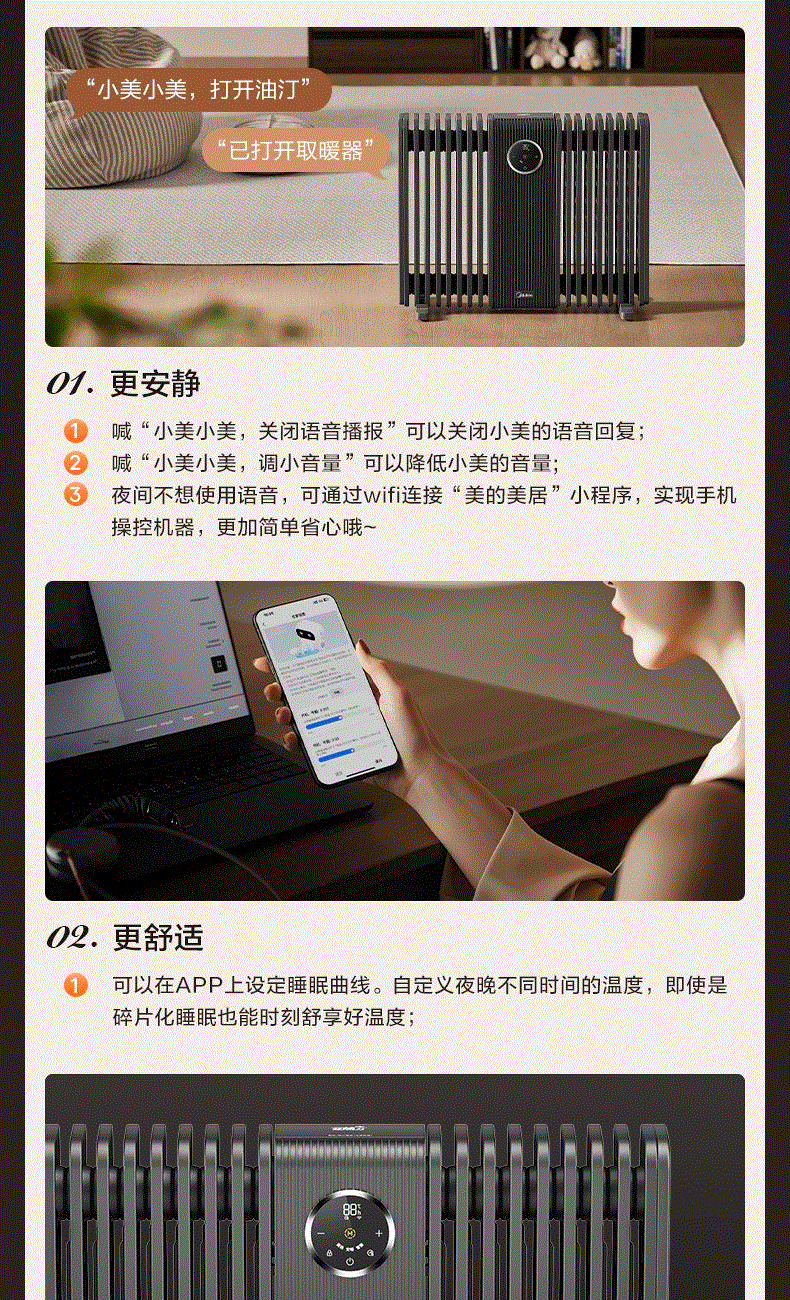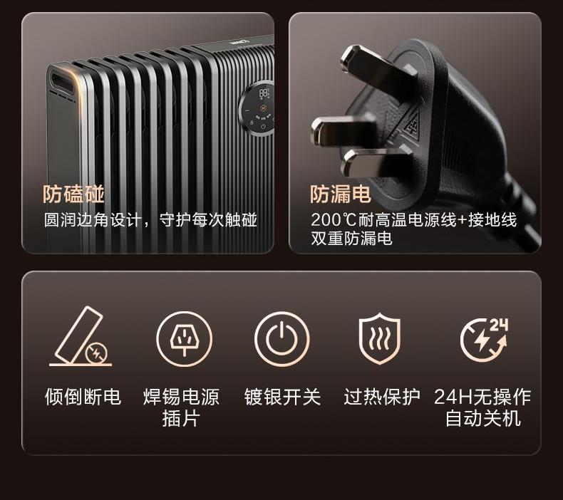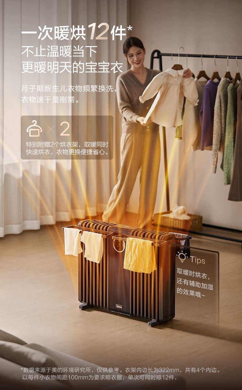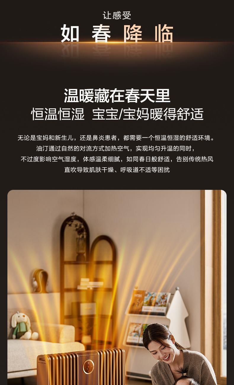 包装尺寸:962 x 205 x 699 mm 商品尺寸:702 x 125 x 568 mm 毛重:19 kg 【温和升温】 告别干燥强风!油汀通过温和的对流方式均匀加热空气,如同阳光般自然舒适。同时升温过程细腻柔和,有效维持室内空气湿度,避免直吹导致宝宝肌肤干燥、呼吸道不适