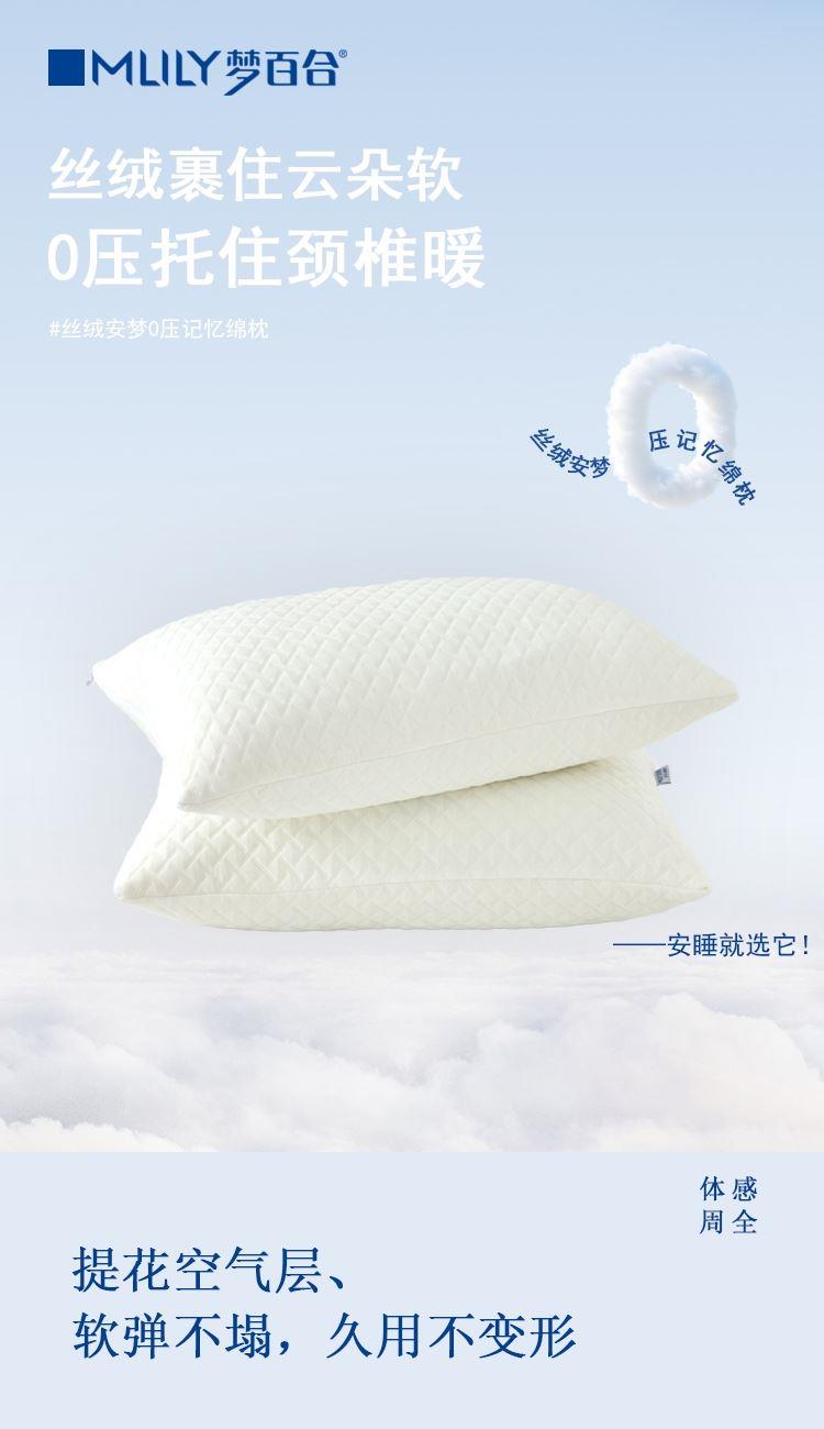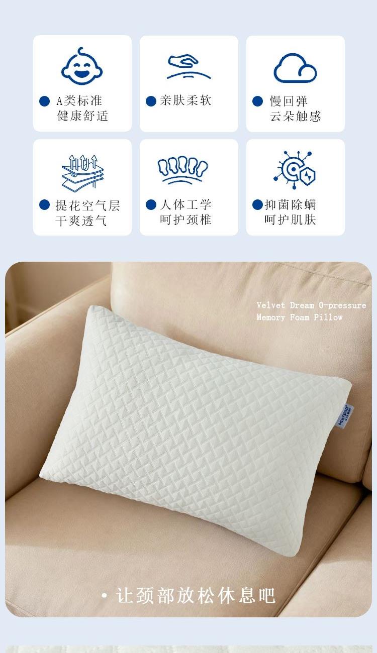 梦百合Mlily丝绒安梦0压记忆绵枕-单只慢回弹记忆棉枕