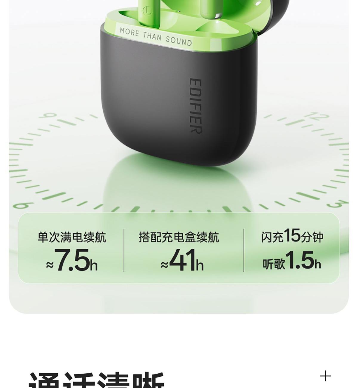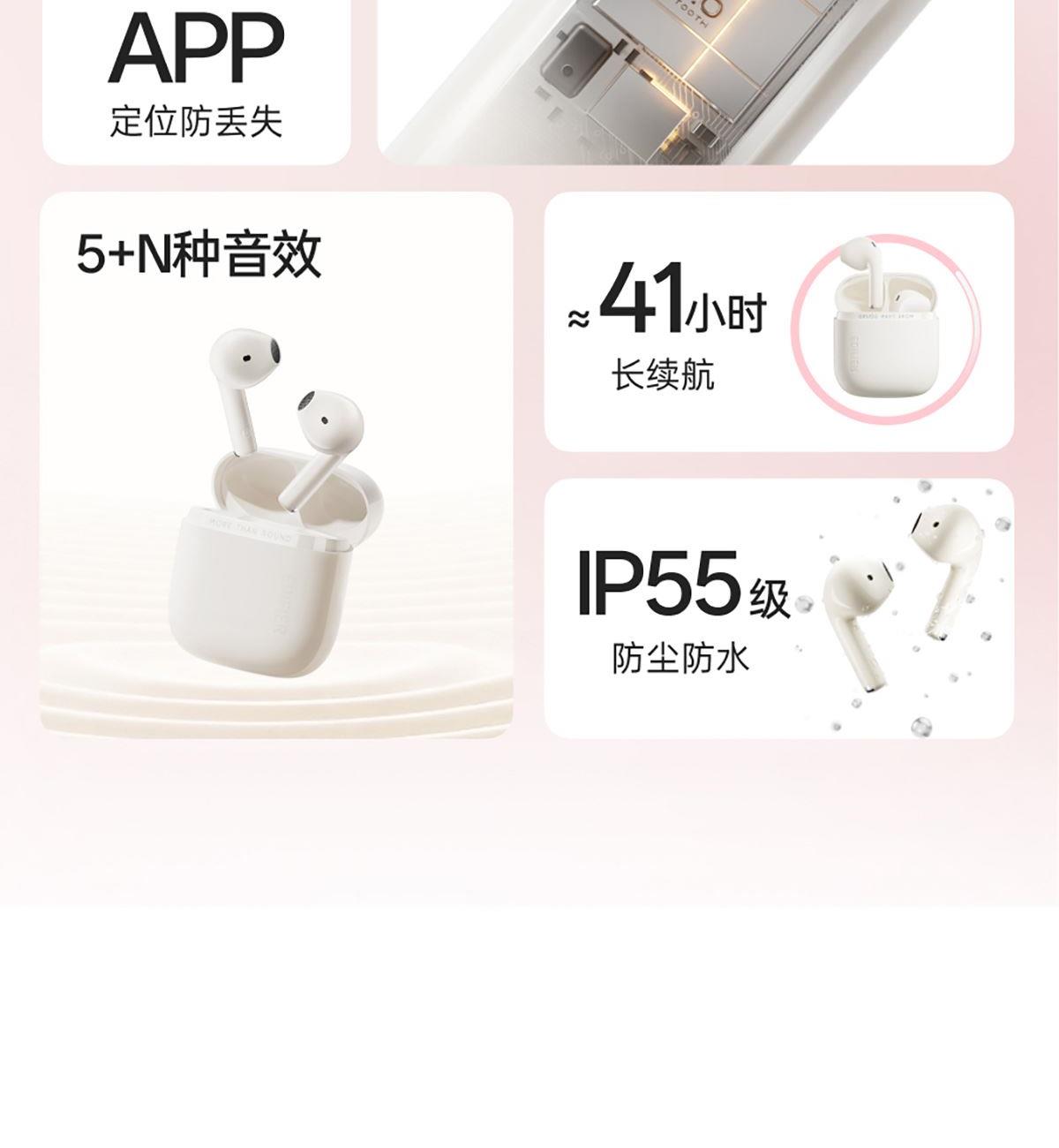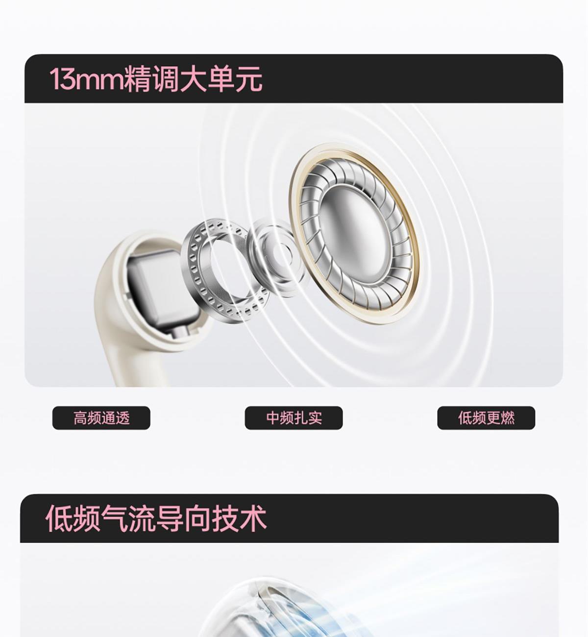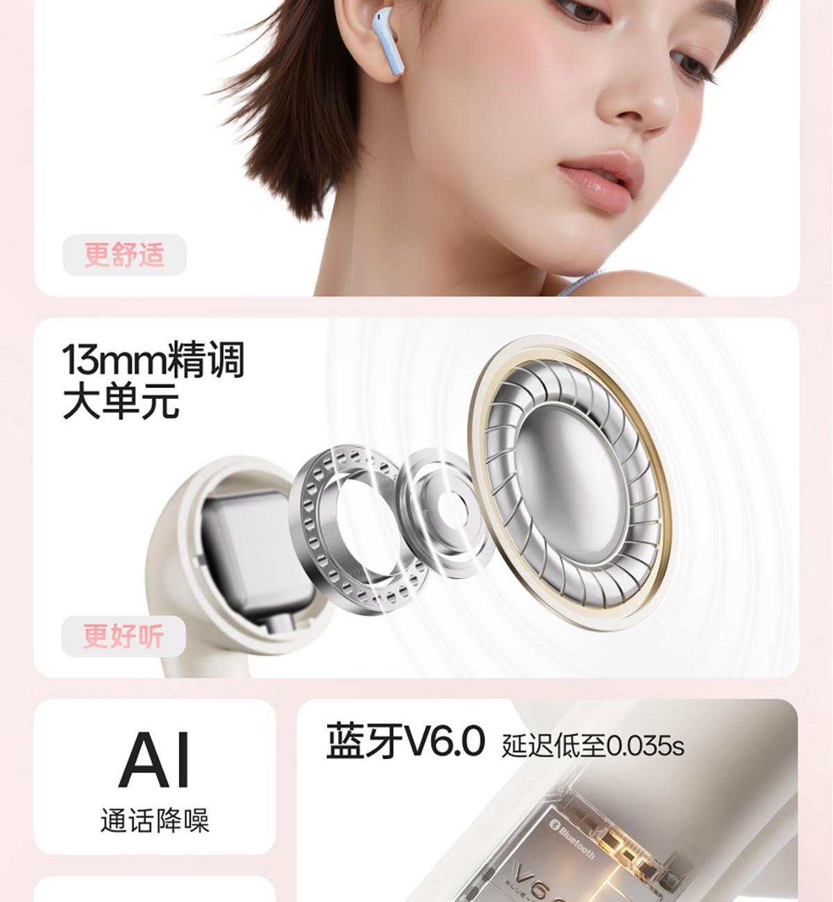 3.5g轻盈半入耳佩戴 13mm精调大单元 AI通话降噪 5+N种音效 IP55级防水防尘
