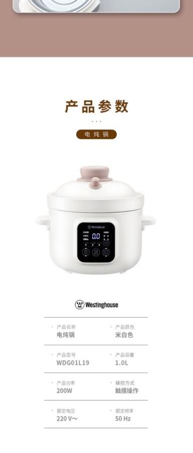 西屋Westinghouse微电脑电炖锅WDG01L19