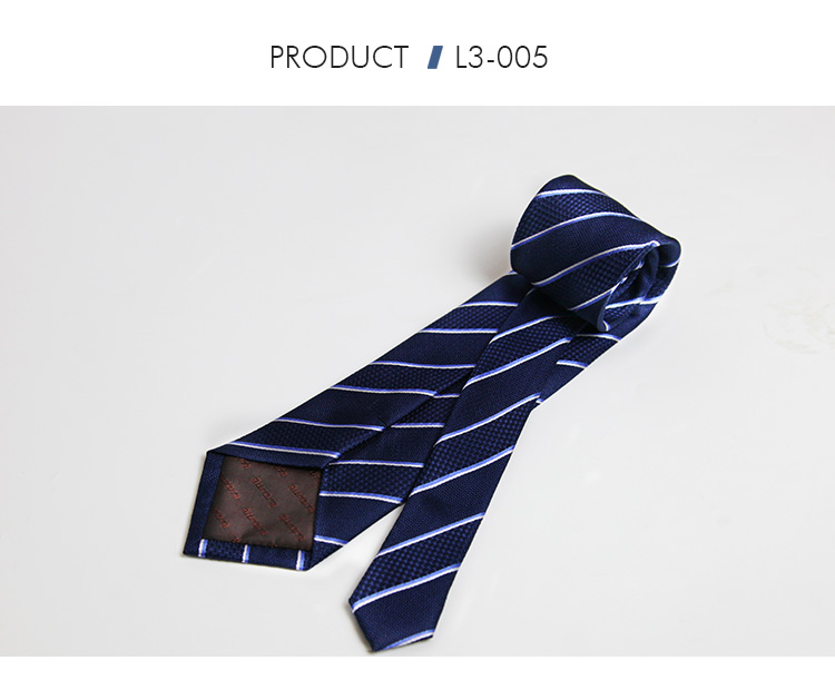 真丝领带 蓝黑条纹领带 商务 送礼伴手礼 精美礼盒礼袋包装 L3系列 蓝黑条纹 成分:桑蚕丝 工艺:真丝提花 尺寸148 x 8cm