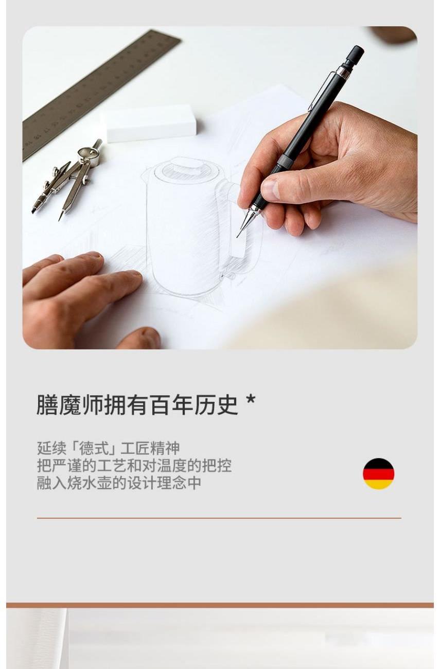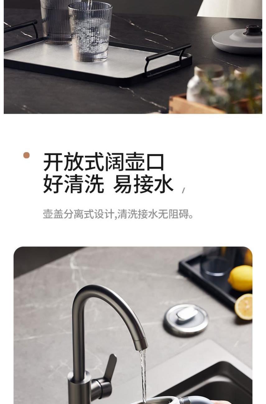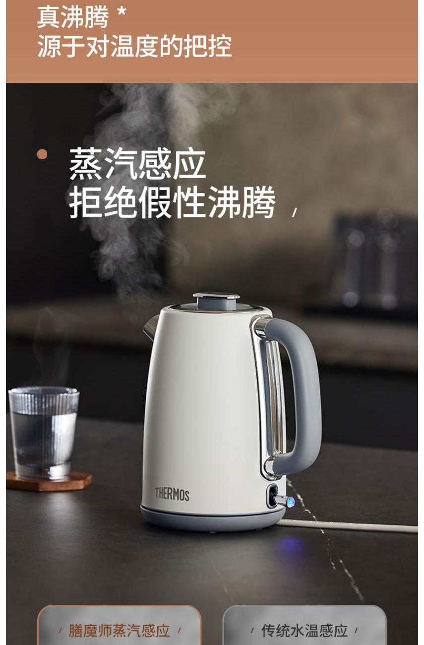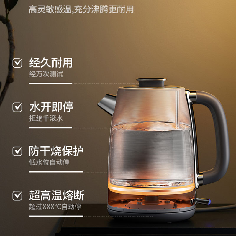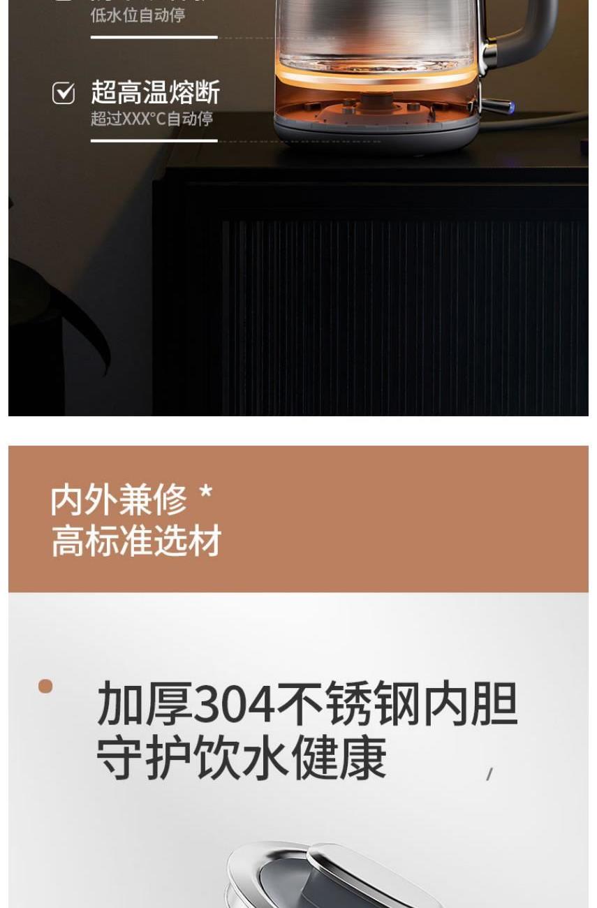 额定电源 :220V~50Hz 额定功率 : 1800W 额定容量:1.7L 加热方式:底盘加热 净 重 :1.03KG 毛重:1.52kg 包装尺寸 :219*219*316mm 简约外观 蒸汽感应沸腾,告别假性沸腾 英国strix温控器,更精 准更耐用 316不锈钢内胆,耐高温耐腐蚀 1.7L大容量,满足全家饮水量