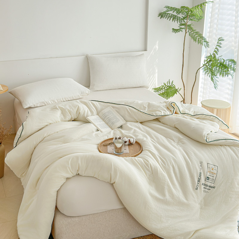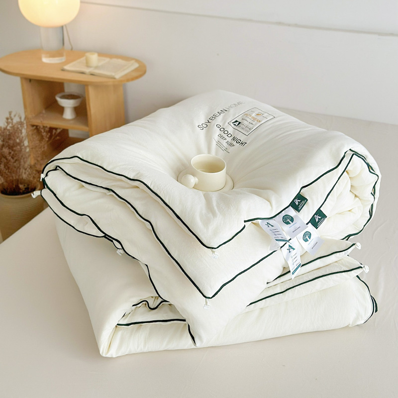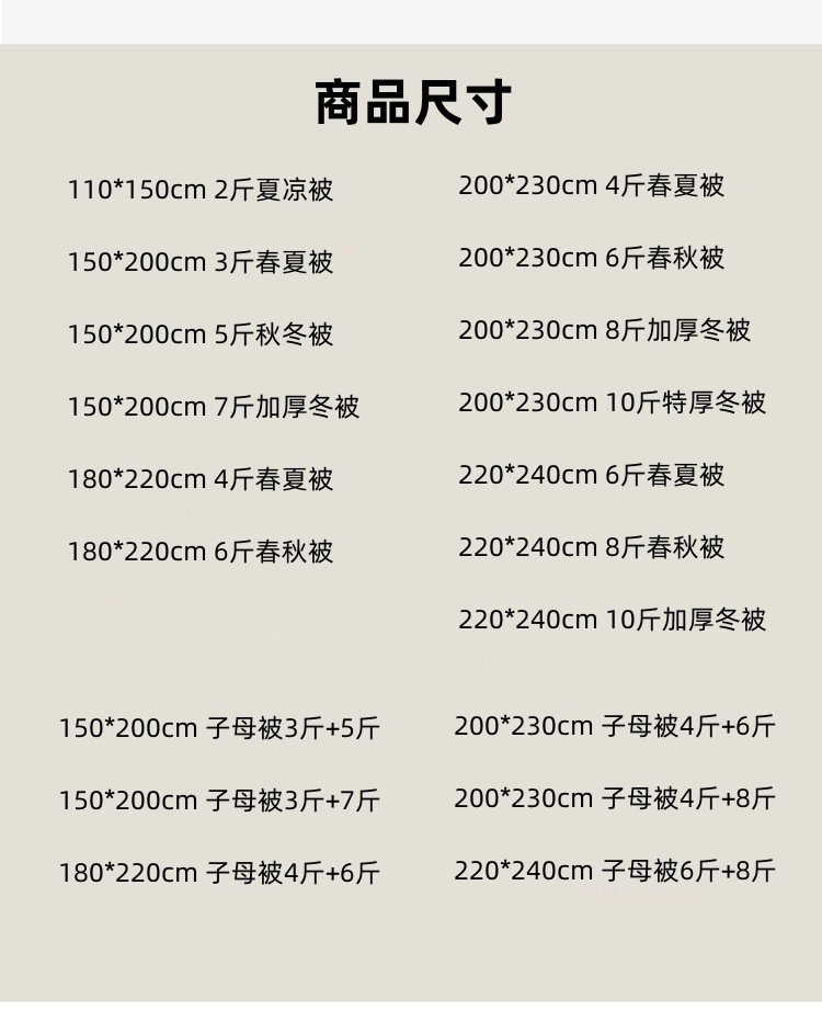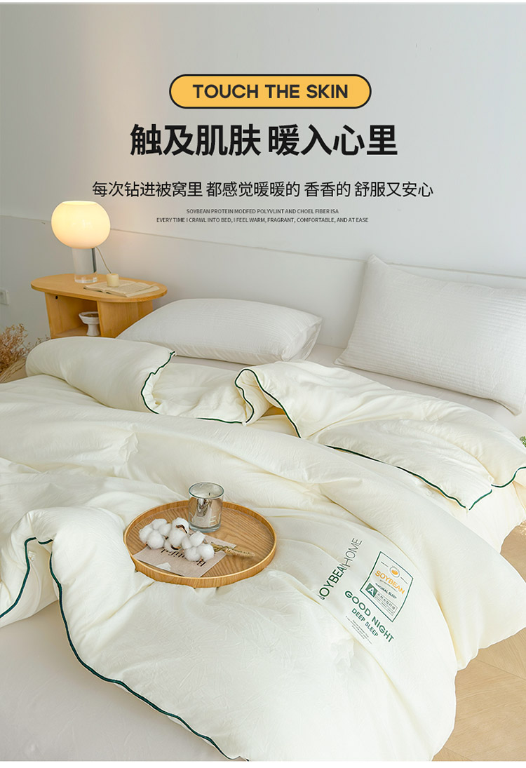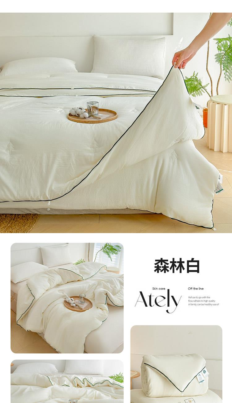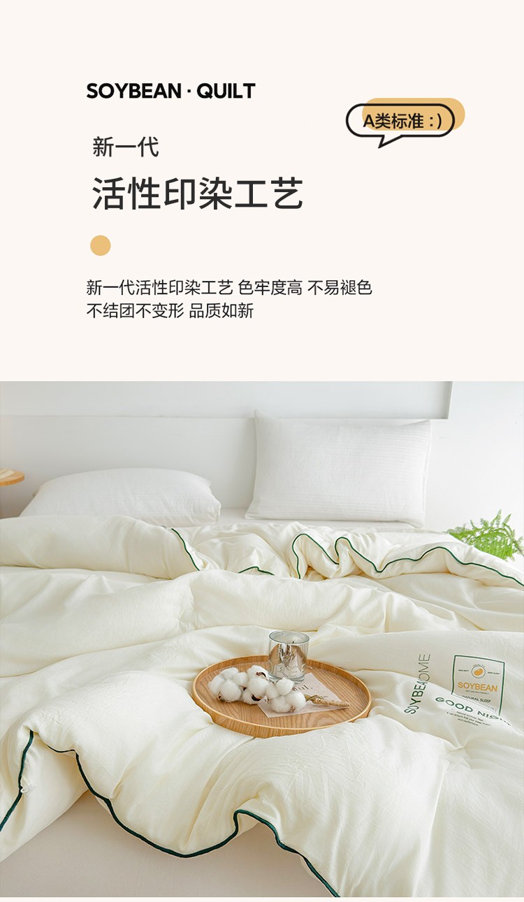 规格:150*200cm 5斤 面料:聚酯纤维 填充:大豆纤维+聚酯纤维 花色:深林白 采用A类亲肤面料,软糯细腻,透气不闷热,轻盈干爽入眠;新一代活性印染工艺,色牢度高,不易褪色;绗缝定位,针脚细腻,不易跑棉不结团不变形;立体滚边,美观时尚,不易脱边;10%大豆纤维+90%聚酯纤维,填充均匀,蓬松柔软;多种规格可选,一年四季可用。