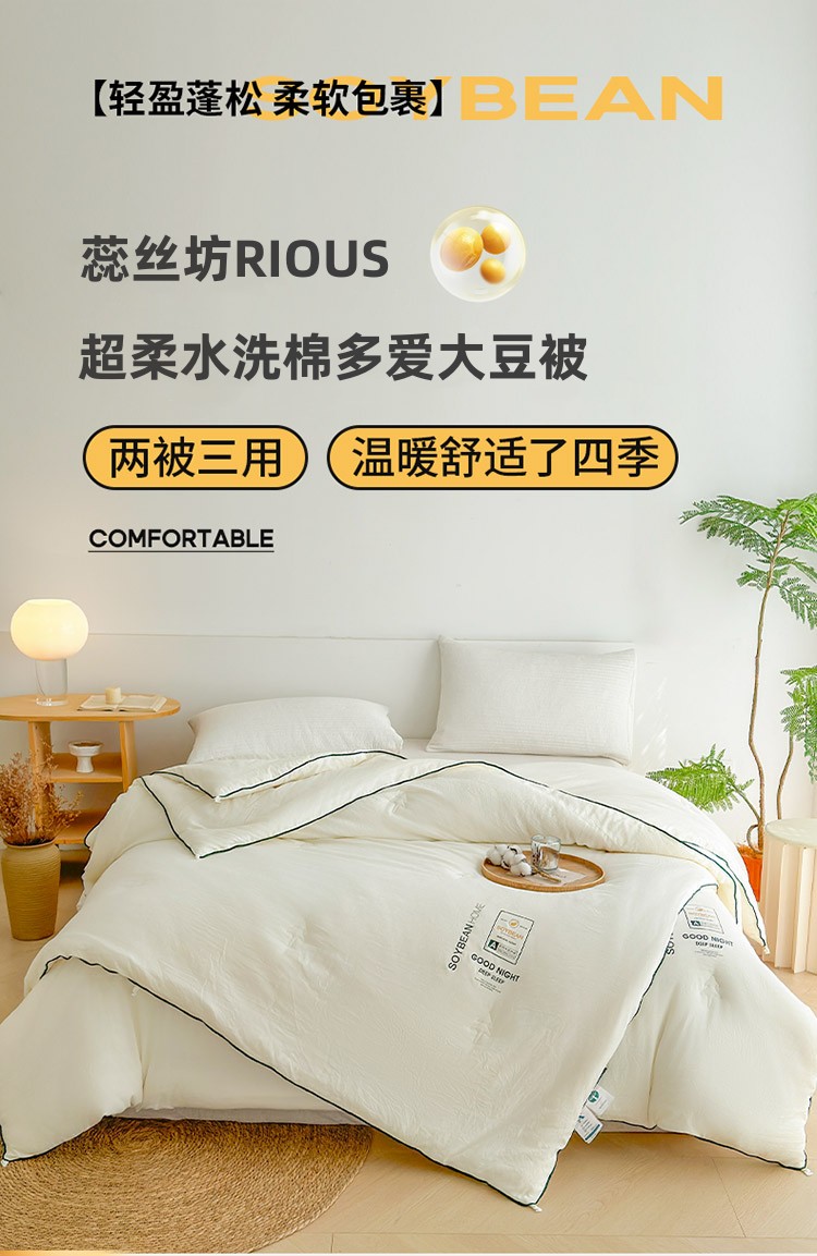 蕊丝坊家纺超柔水洗棉多爱大豆秋冬被150*200cm5斤