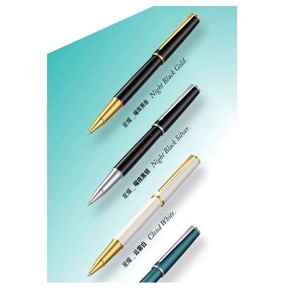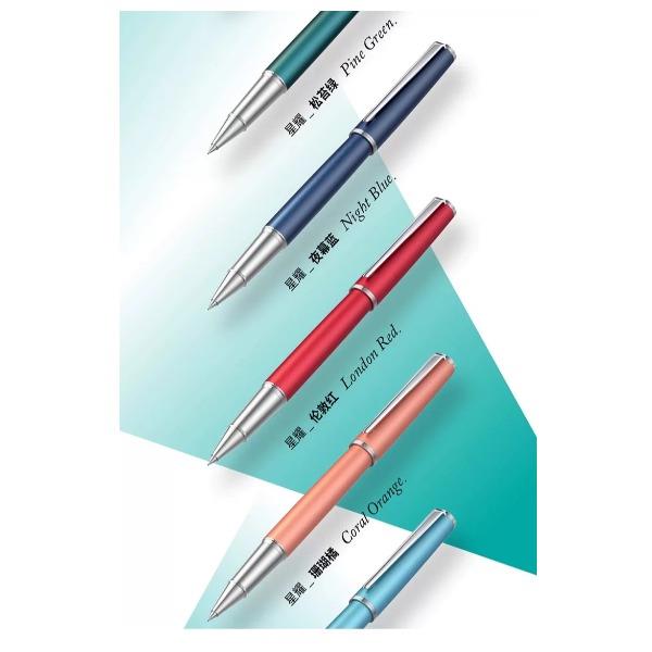 型号:星耀系列签字笔 类型:可替换芯宝珠笔 重量:墨水/宝珠笔25g/30g 颜色分类:曜夜黑金/曜夜黑银/黎雾灰/松苔绿/夜幕蓝/伦敦红/珊瑚橙/云雾白尼斯蓝/丁香雪 书写粗细:0.6mm 整笔材质:铝铜 笔盖:卡扣嵌套设计 笔握:24mm中距笔握 套餐类型:官方标配 包装方式:鸿运笔记本礼盒装 适用场景:送礼书写 适用人群:文艺青年 笔杆材质:金属笔身纹理:磨砂