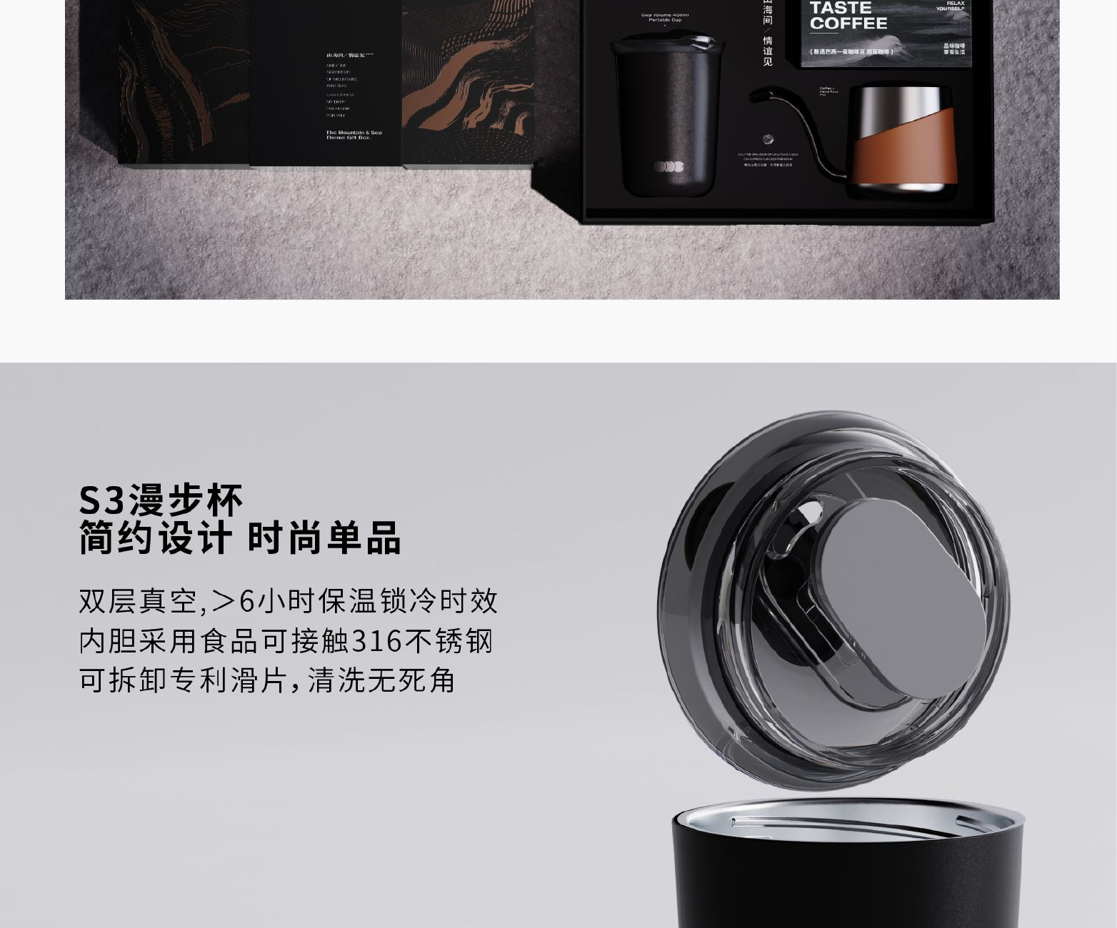 2、时尚随手漫步杯,荣获DIAZ中国设计制作大奖。可拆卸砖利滑片,清洗无死角。双层真空,>6小时保温锁冷时效,内胆采用食品可接触316不锈钢。产品容量:400ml,产品净重:240g。