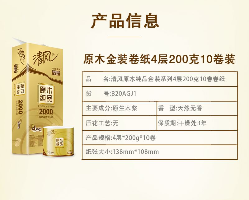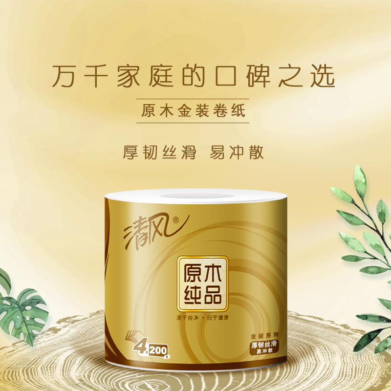 清风原木金装4层200克/卷*2提(20卷)筒卫生纸