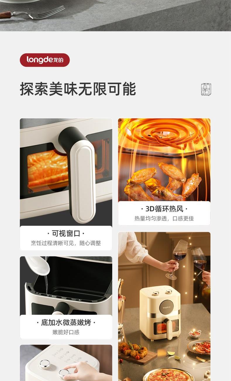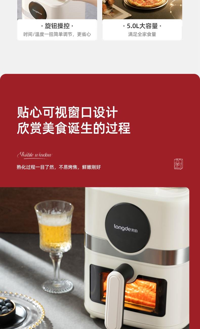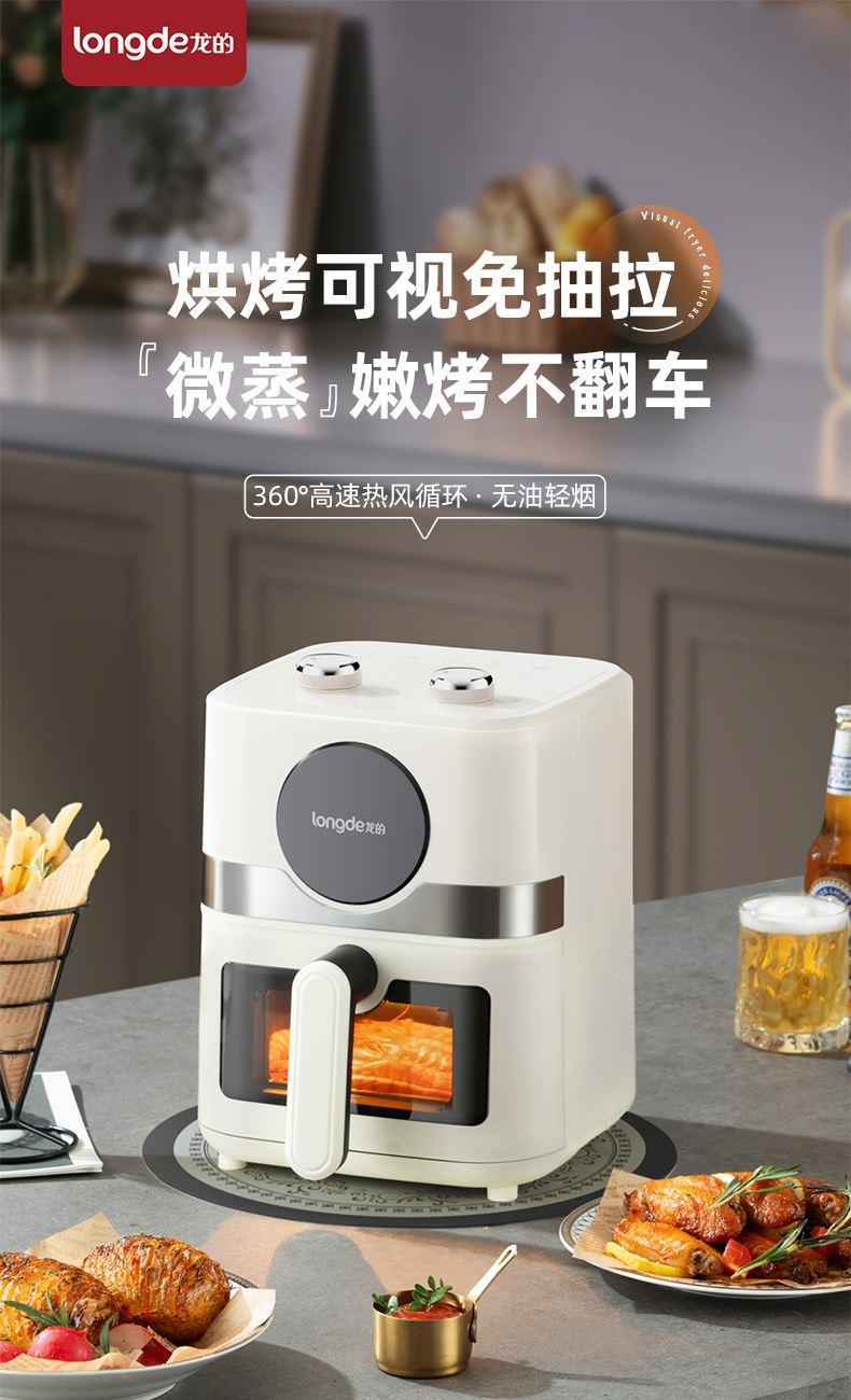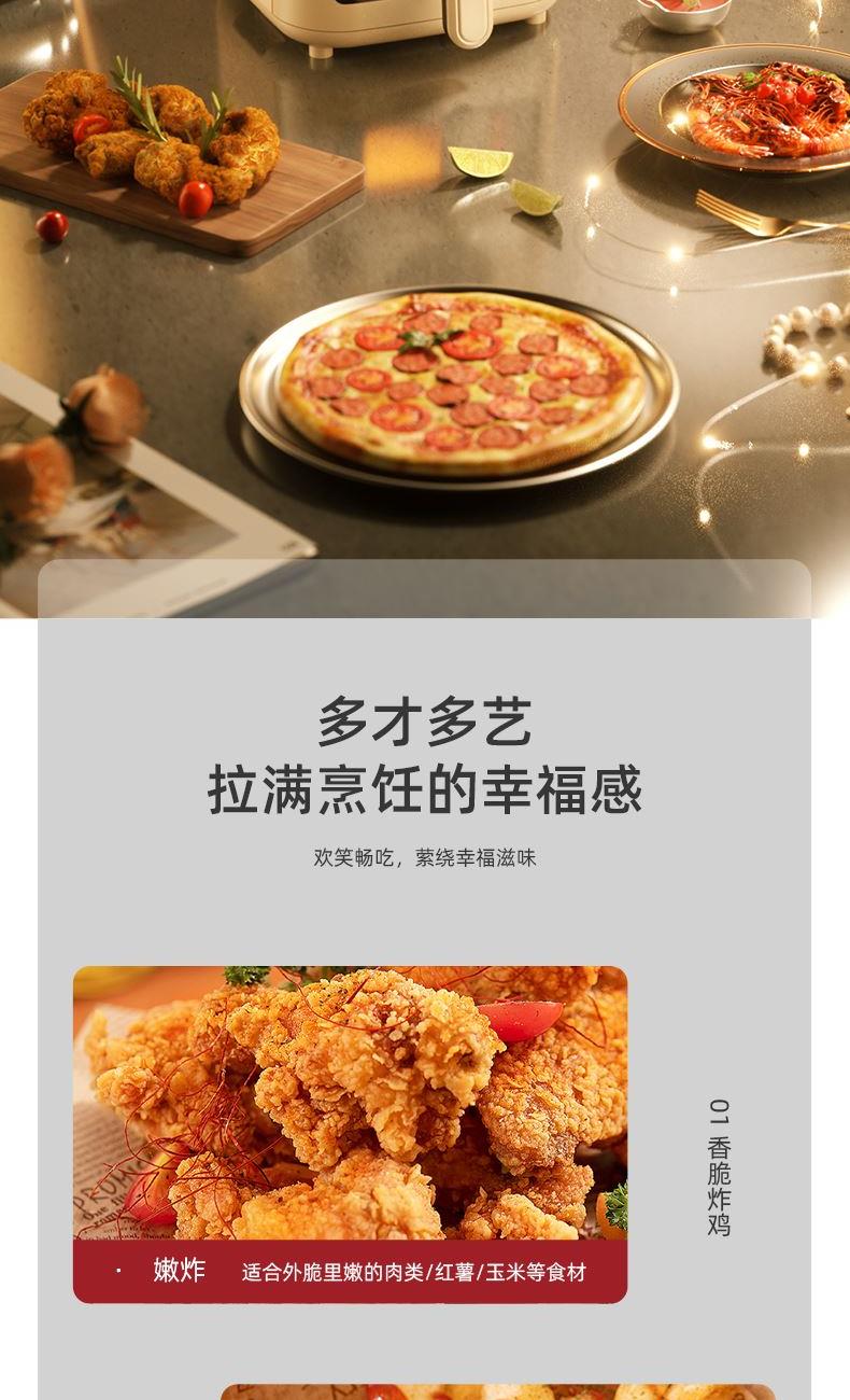 额定功率:1200W 产品容量:5.0L 额定电压:220V~ 产品频率:50Hz 产品净重:2.9kg 产品毛重:3.4kg 整箱重量:14.5kg 装 箱 数:4台/箱 可视大窗口烹饪状态清晰展现,不易烤焦 底加水微蒸汽嫩烤高温热风无油烘炸配合注水快速蒸汽补水,保持食物口感酥嫩 智能触摸面板时间/温度/菜单随心调控,满足多种烹饪需求 抽桶断电记忆抽离炸篮自动停止工作,加料自由