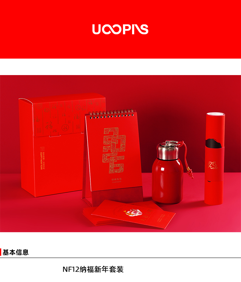 UOOPINS(优品序)纳福新年保温杯台历春联套装