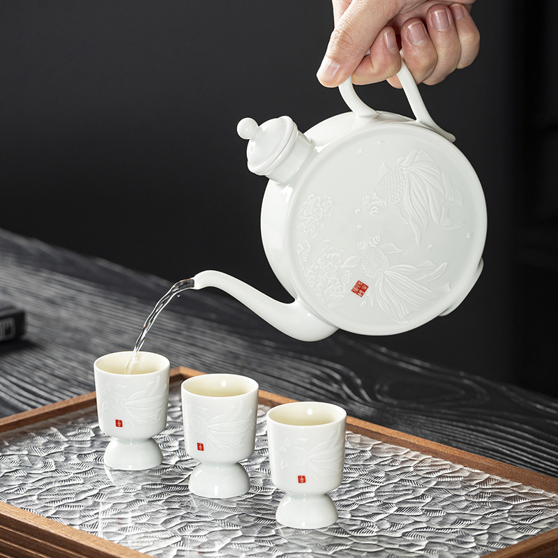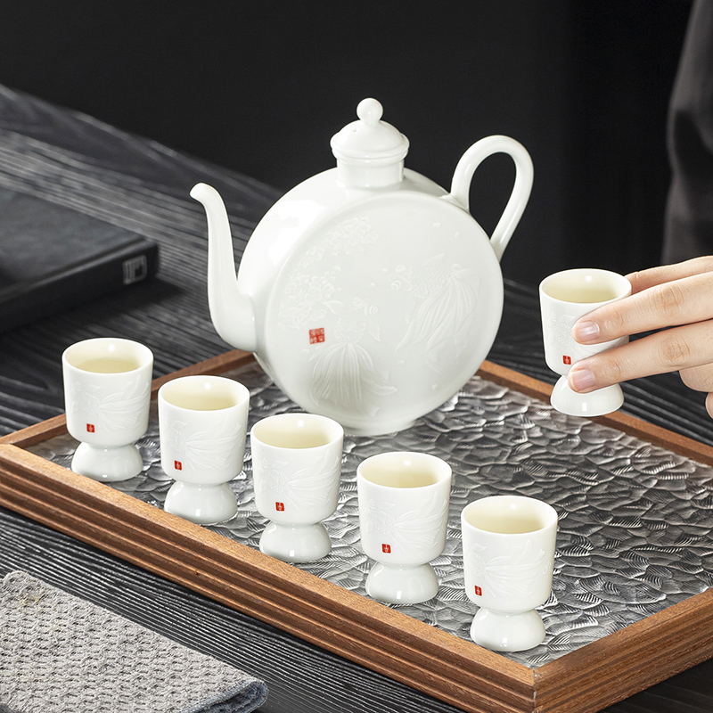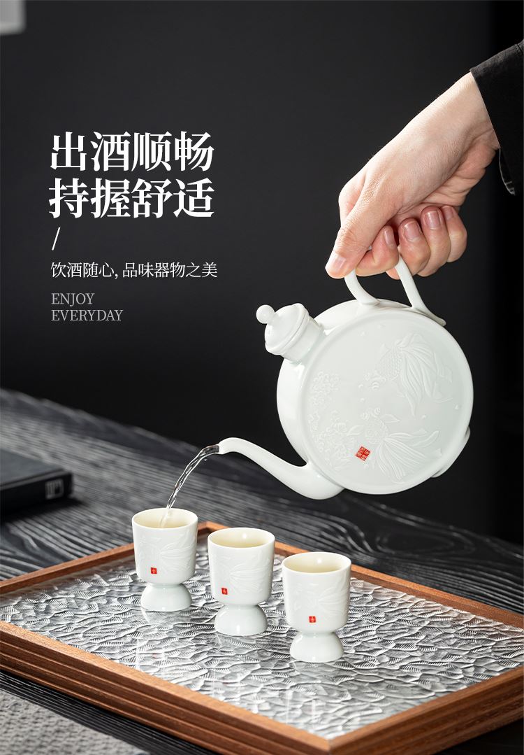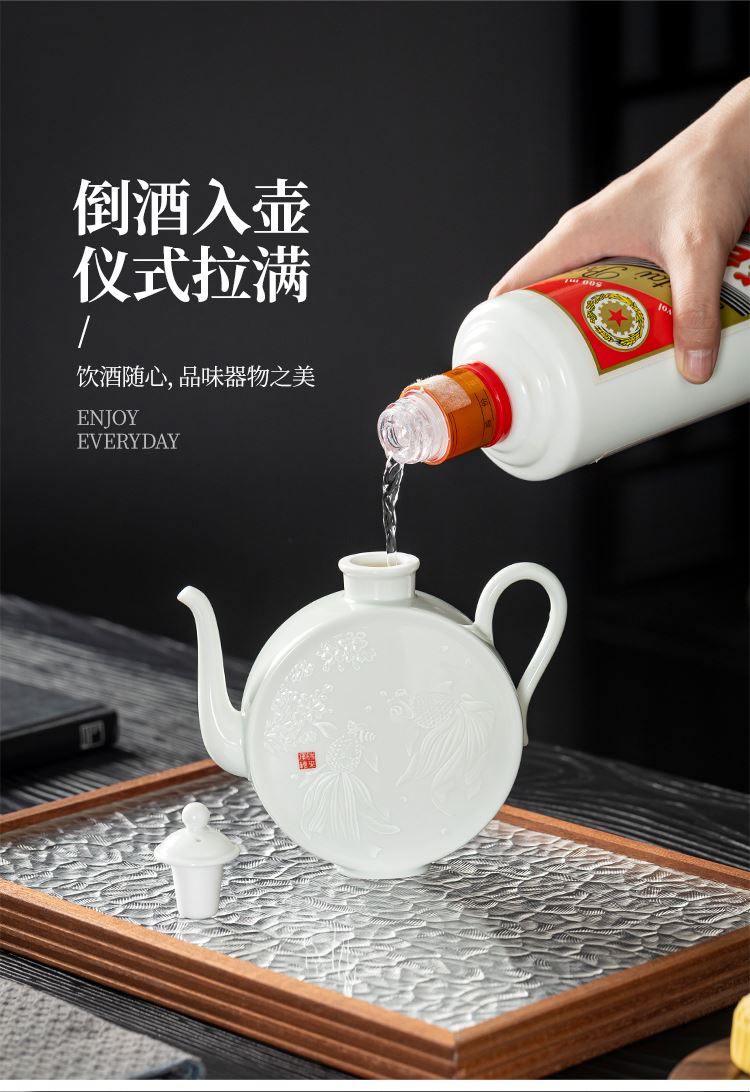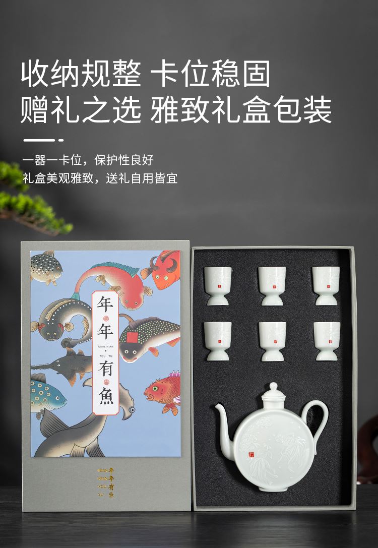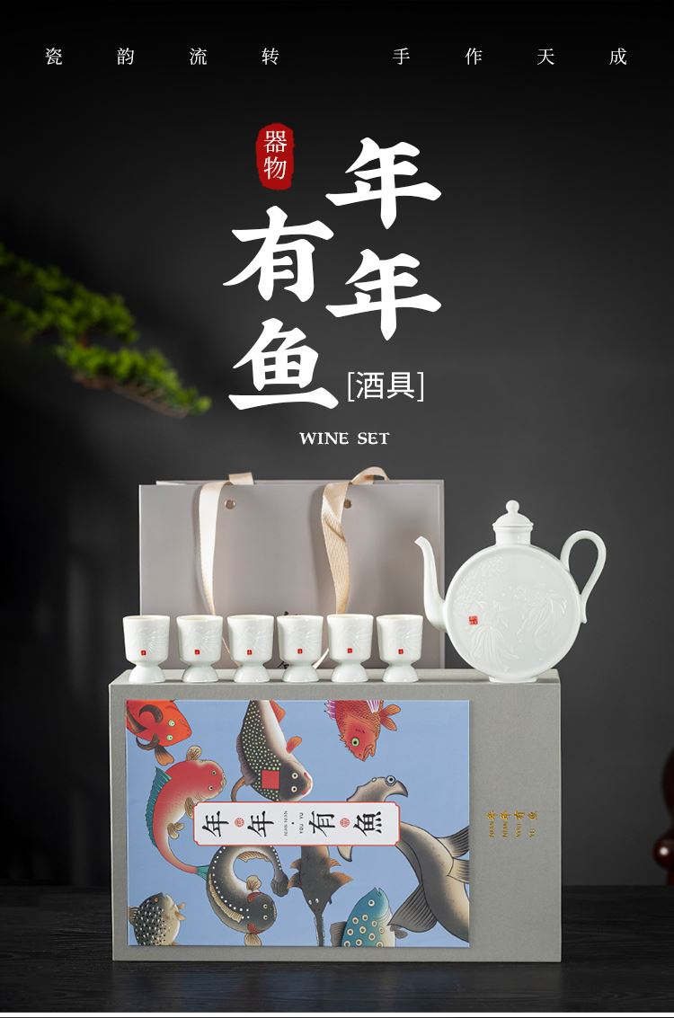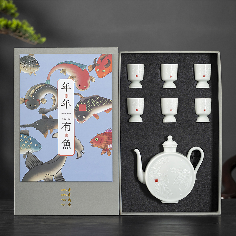 云博陶瓷影青鱼跃龙门酒具套装年年有鱼汾酒器中国风商务礼品