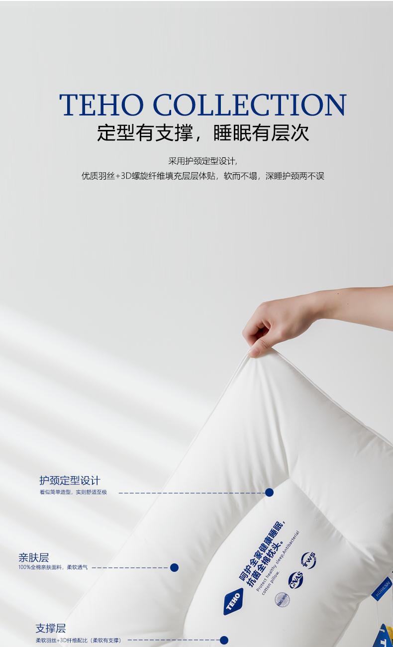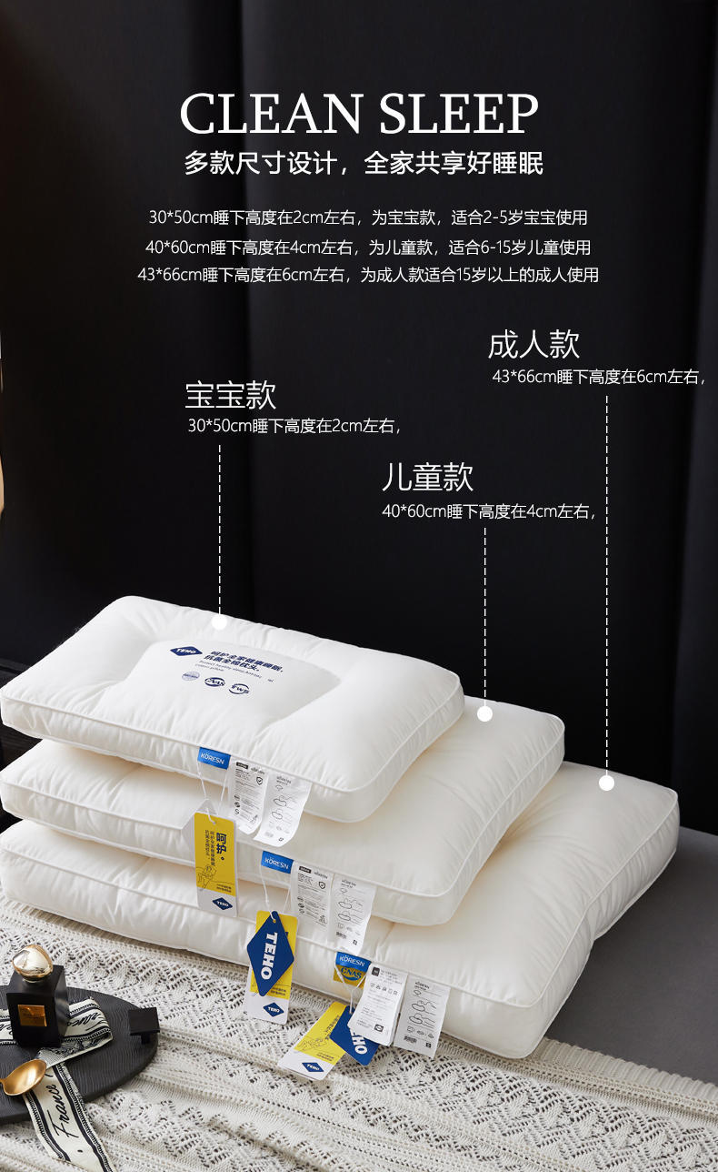 规格: 成人枕43*66cm(睡下高度6cm左右) 面料:全棉防螨面料 填充:超柔羽丝+3D螺旋纤维(聚酯纤维) 单位:个 全棉防螨面料,有效抑制螨虫及细菌滋生,敏感肌也能呵护到位,安心好睡眠;优质羽丝+3D螺旋纤维填充,护颈定型设计,软而不塌,深睡护颈两不误;多款尺寸可选,全家共享好睡眠。