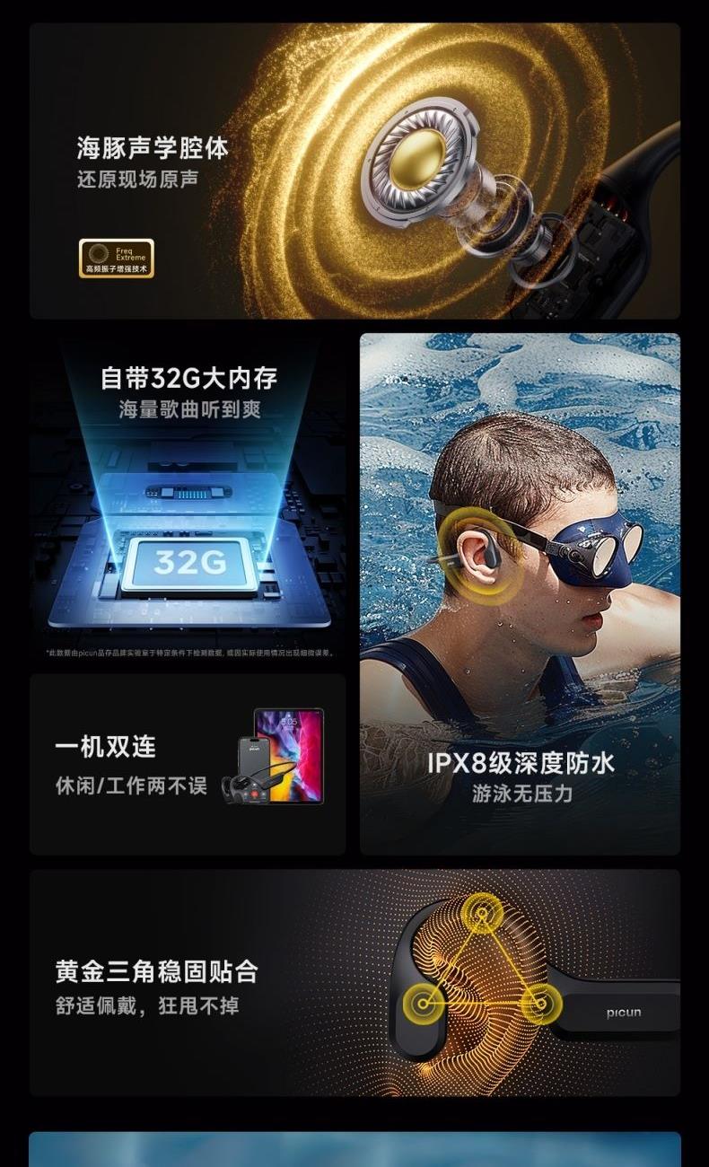 picun品存骨传导耳机T2黑色