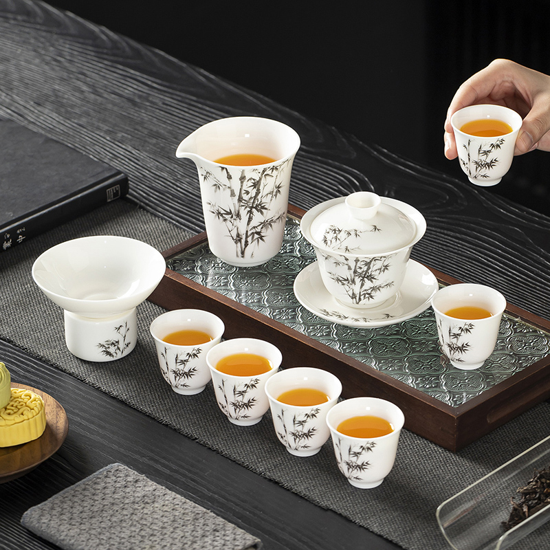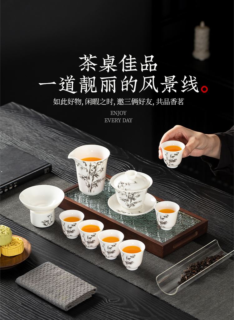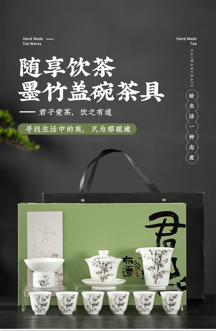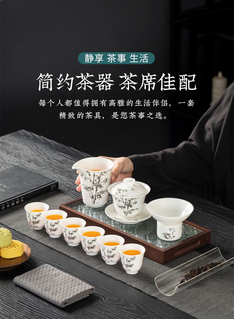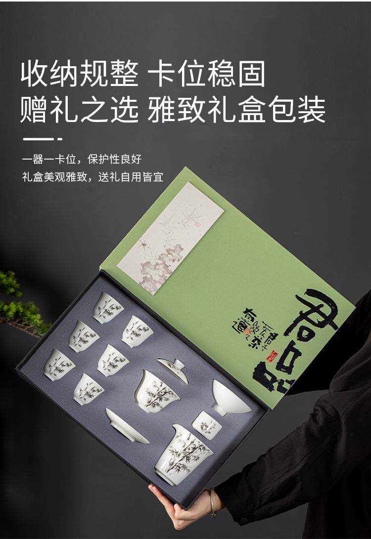 云博陶瓷节节高升10头羊脂玉瓷茶具套装中国风商务礼品随手礼