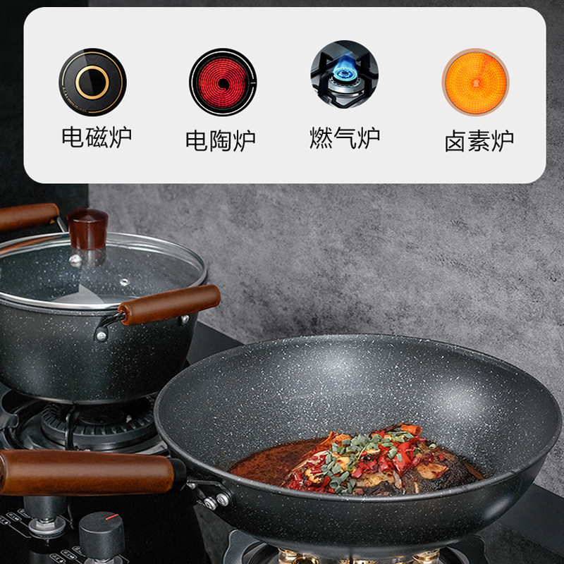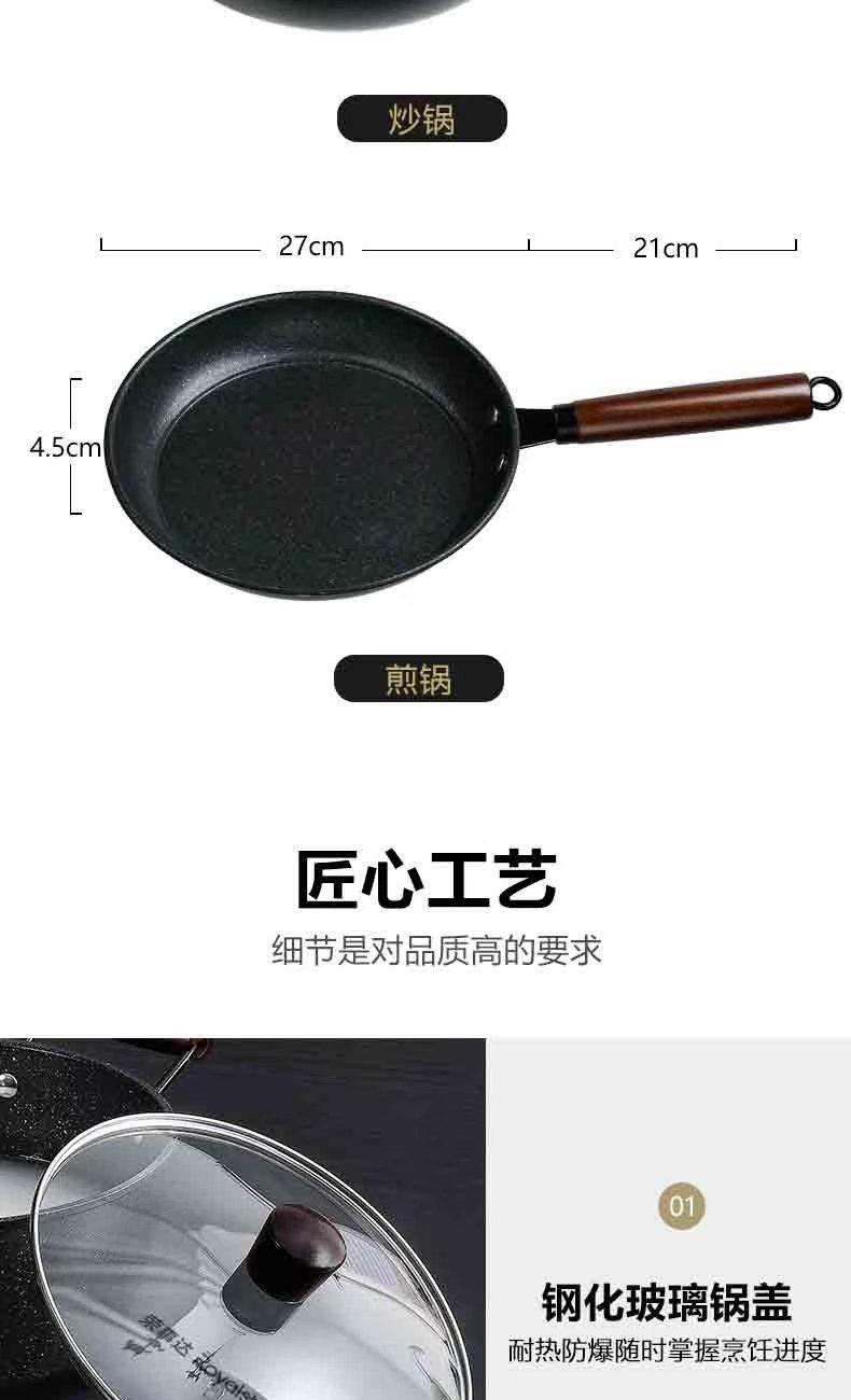 【材 质】 精铁 【规 格】 32cm+22cm+26cm 【彩盒尺寸】 600X 130X 345mm 【外箱尺寸】 685X 615X 360mm 套锅精铁材质制造,传热更快,节能环保,造型优雅大方,尽享时尚烹饪生活; 符合卫生标准不粘工艺,健康安全,放心使用,让您烹饪更轻松 锅体卷边设计,坚固大方,锅体加厚材质,使用寿命更久; 隔热防烫手柄,木质手柄,不烫手、不发霉、不生菌; 锅底采用聚能环设计,节省燃气、电费;