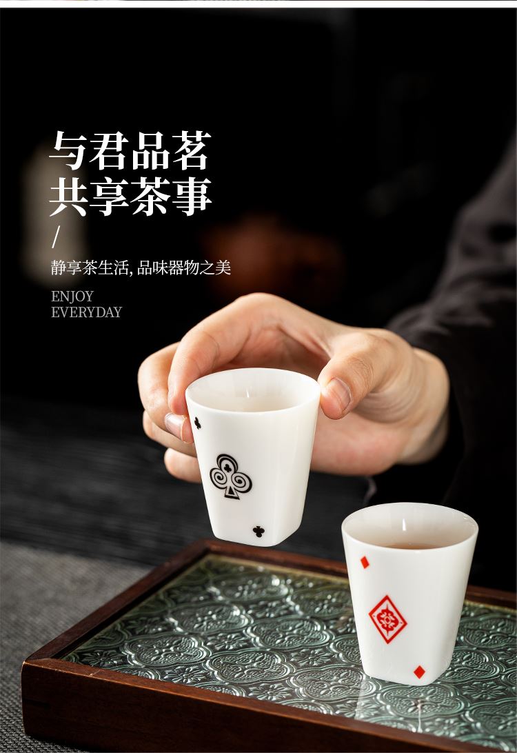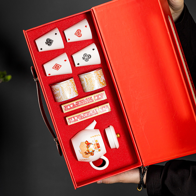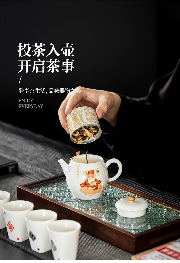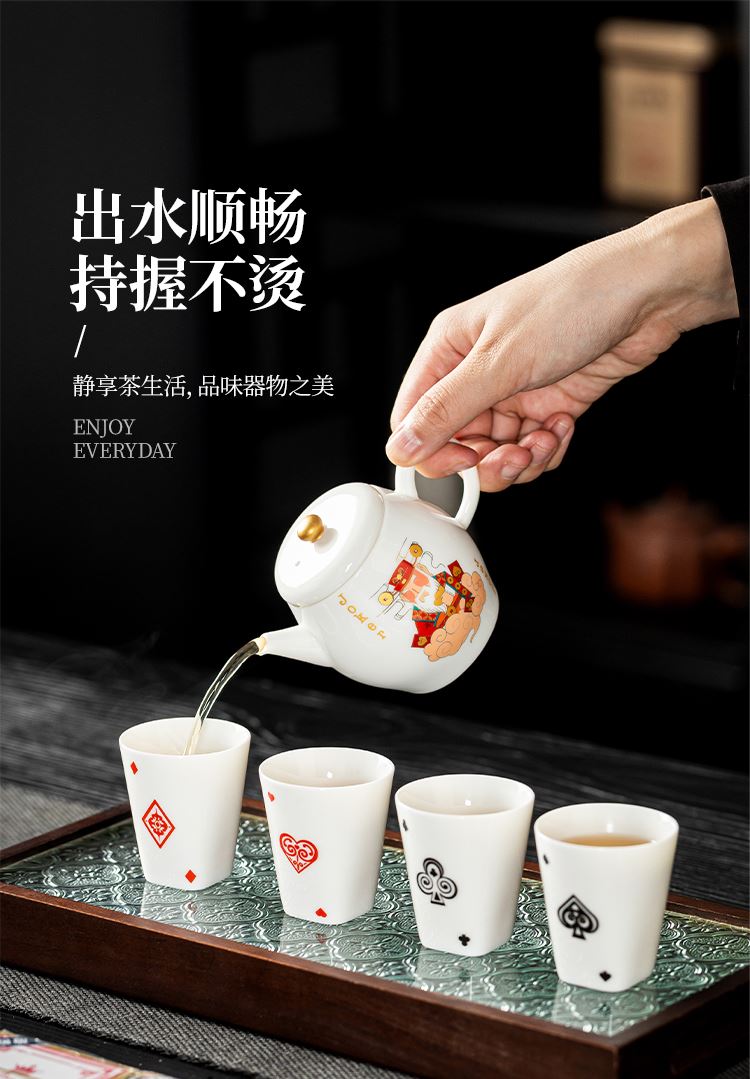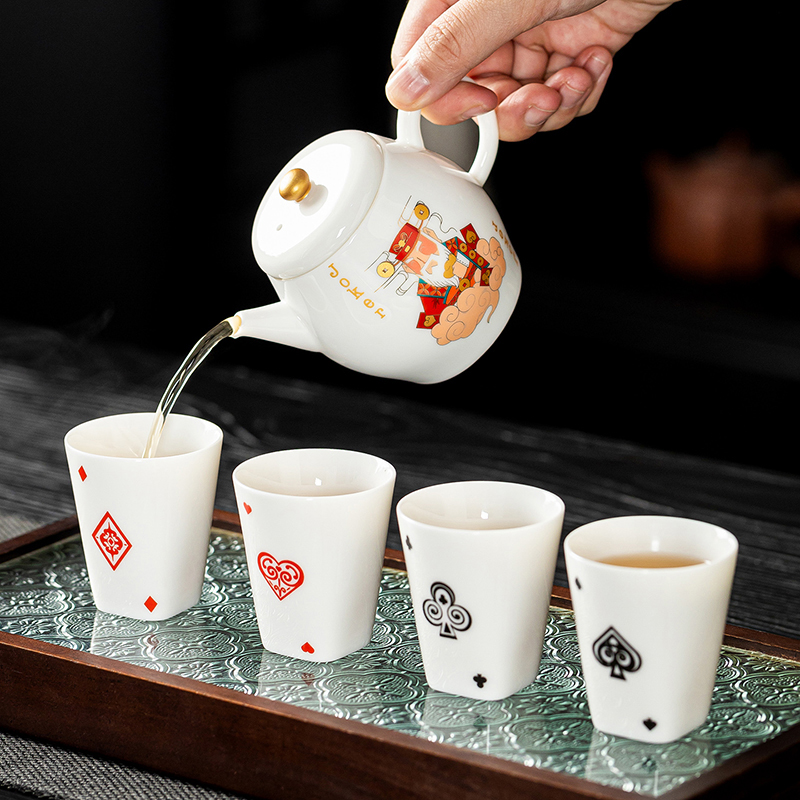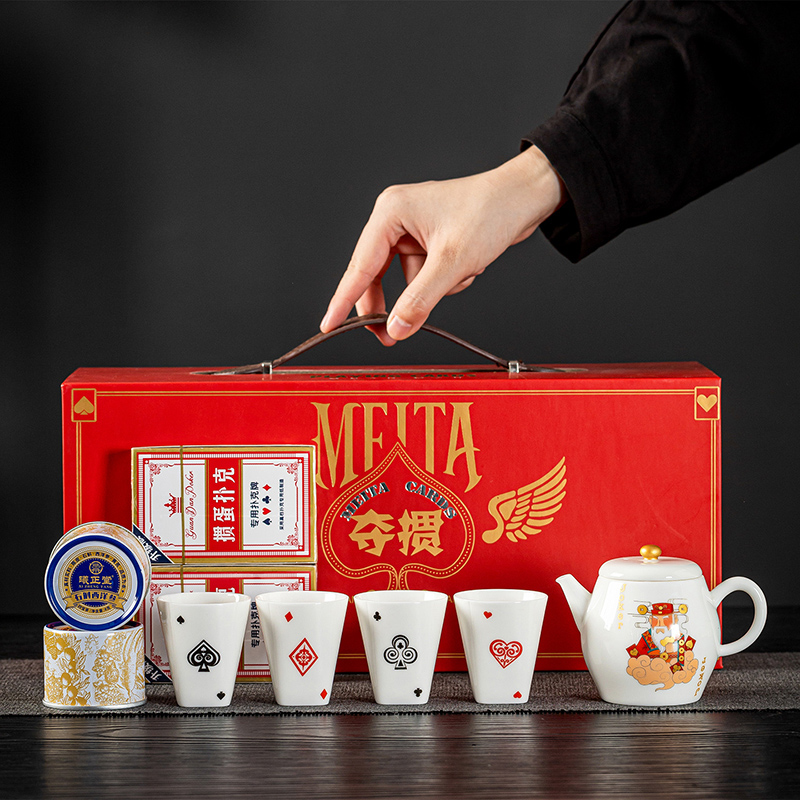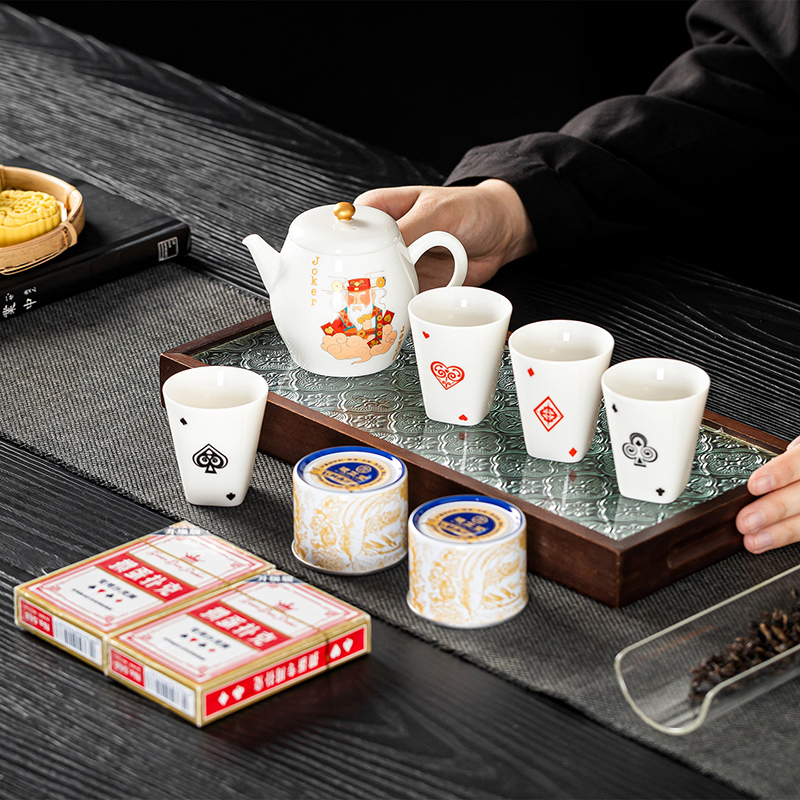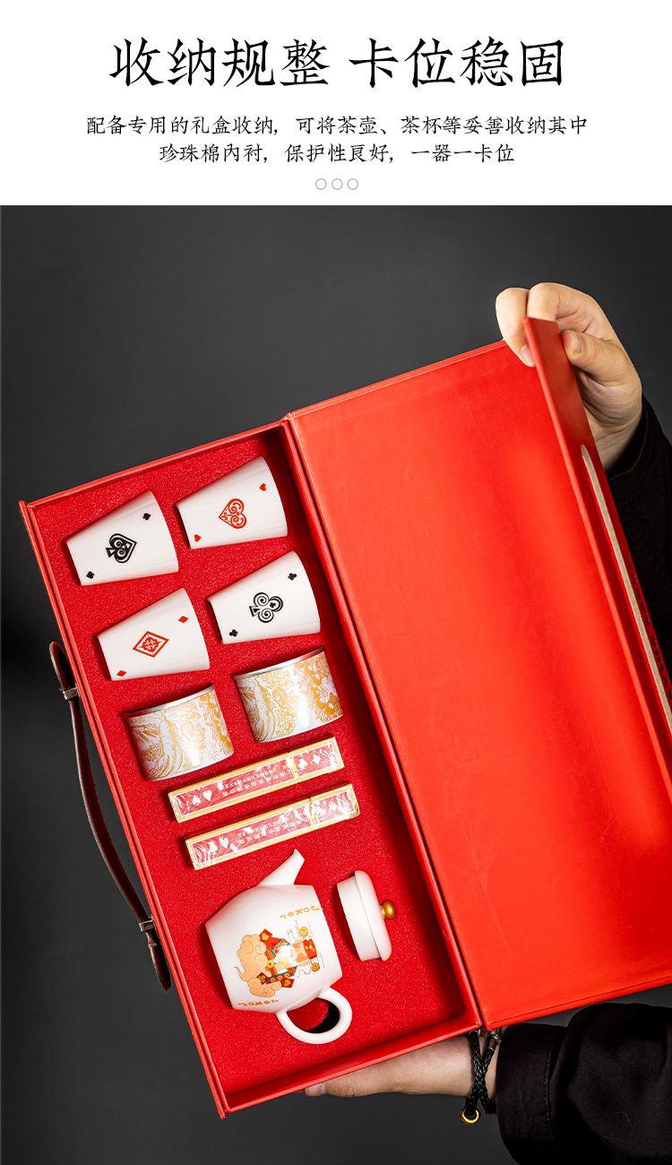 云博陶瓷羊脂玉瓷掼蛋组合养生茶套装户外扑克牌一壶四杯商务礼品