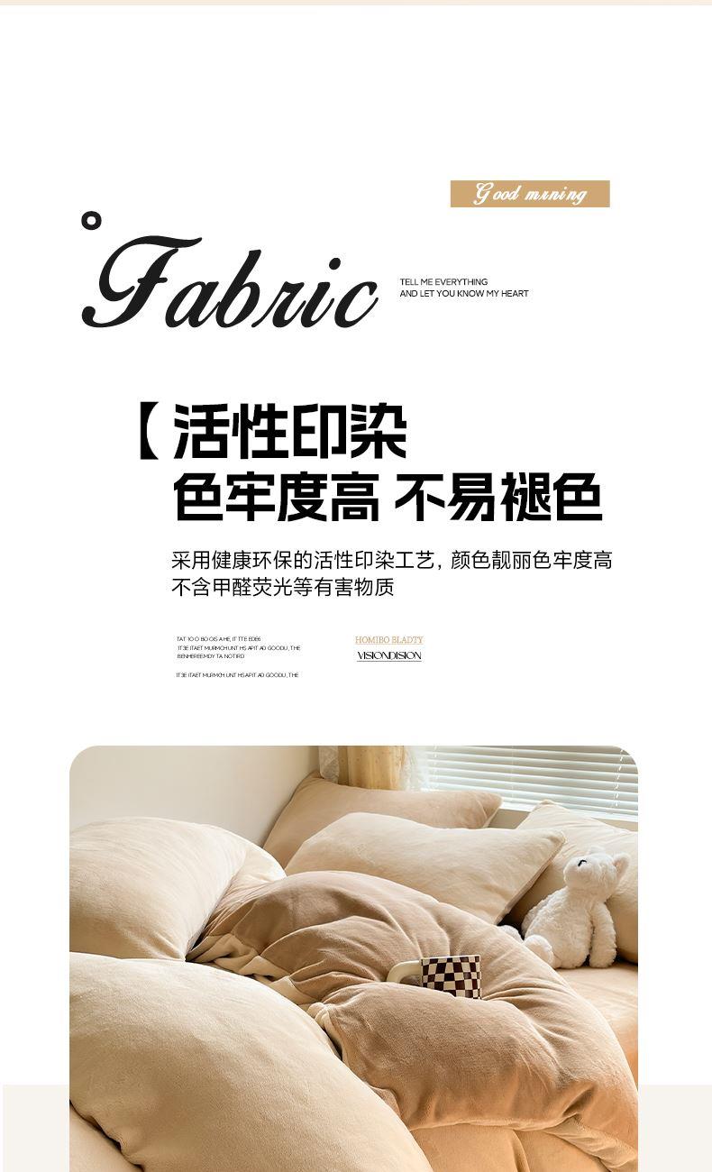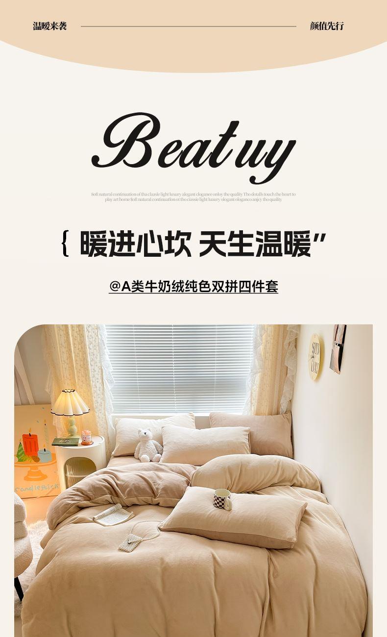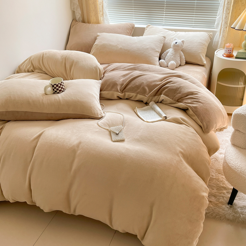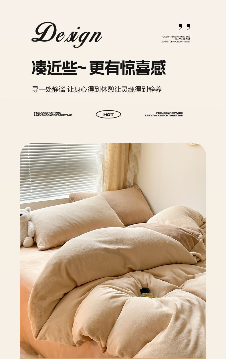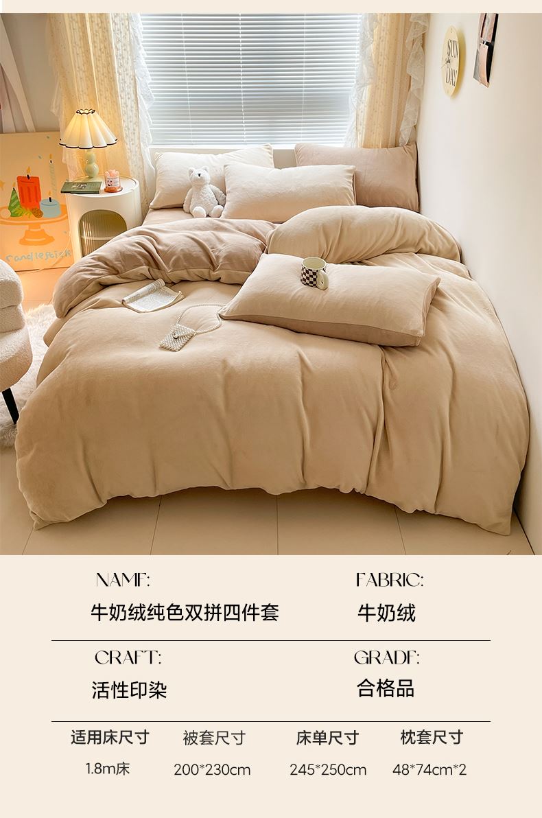 百丽安娜纯色牛奶绒四件套-杏咖色