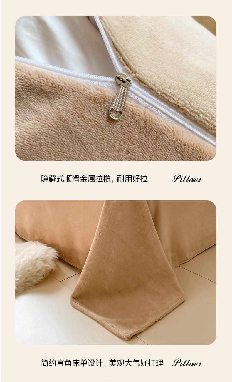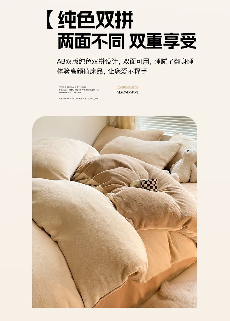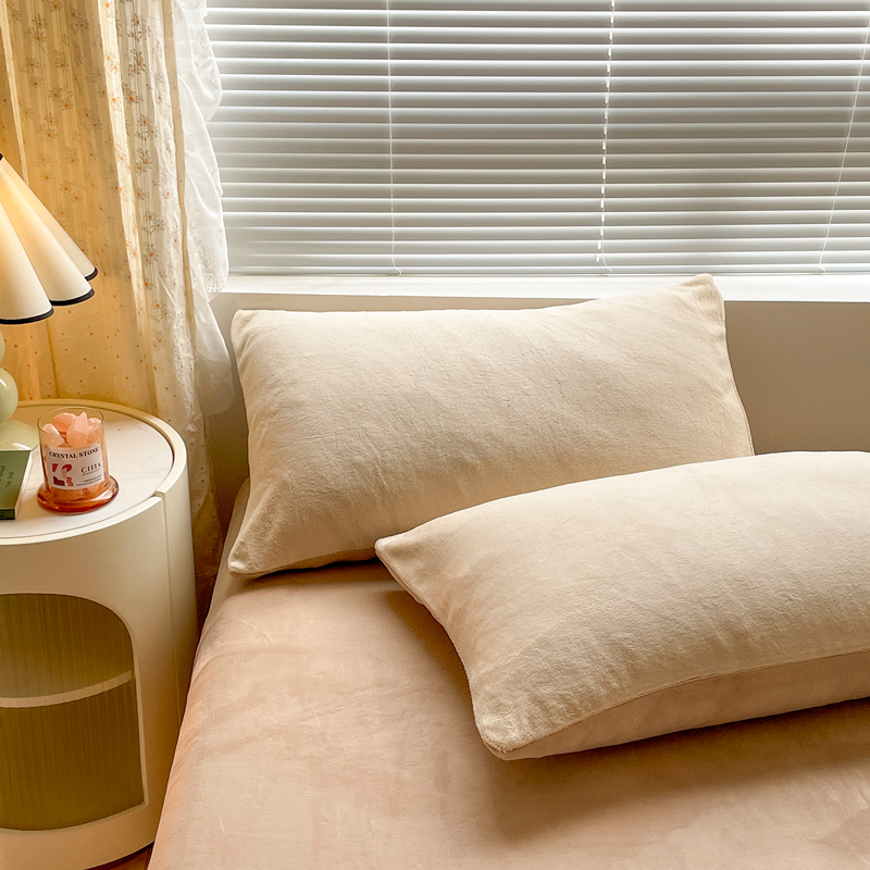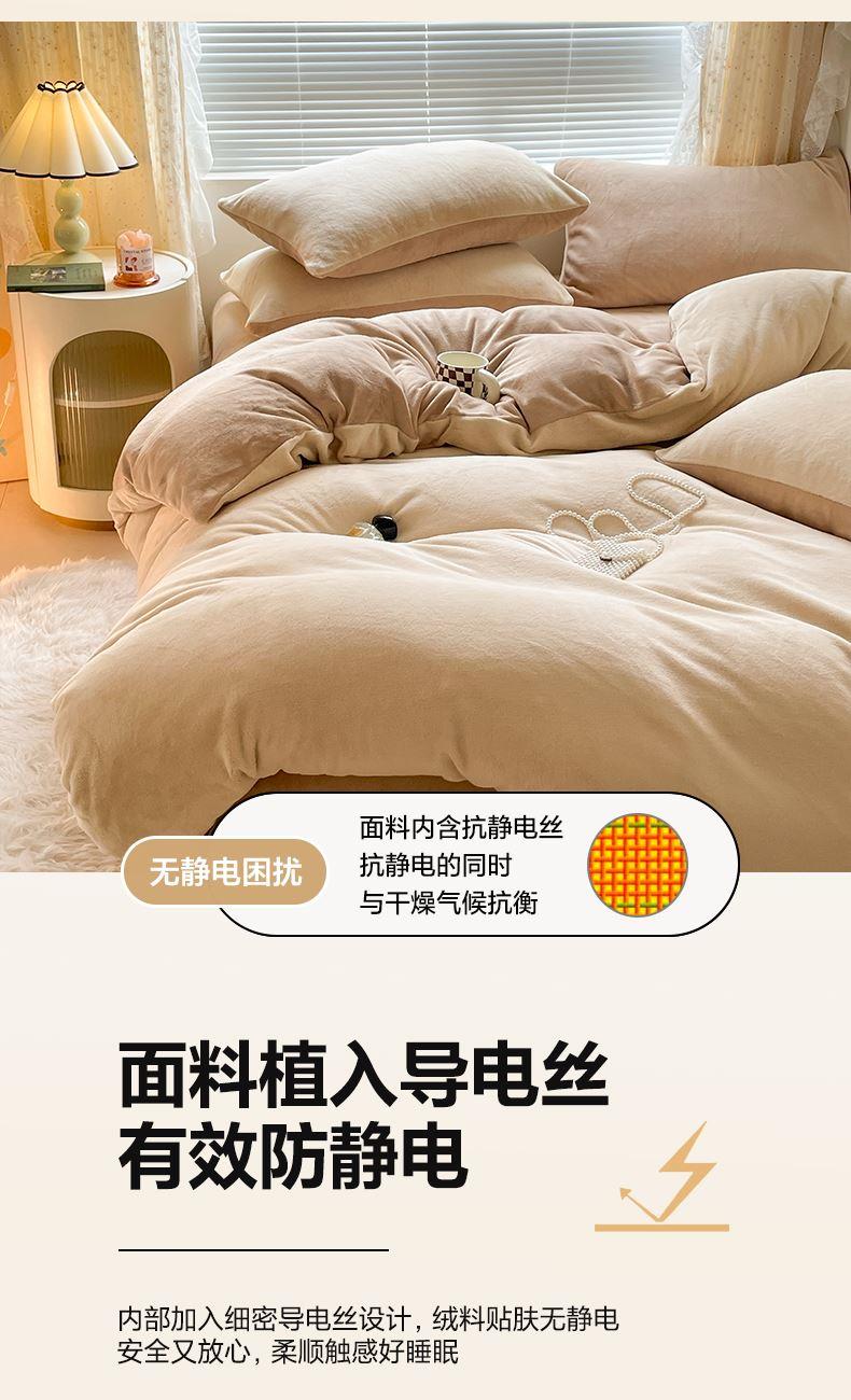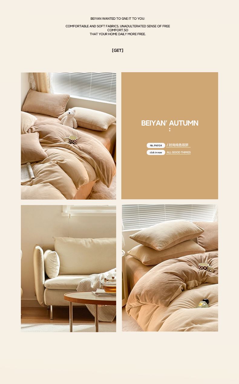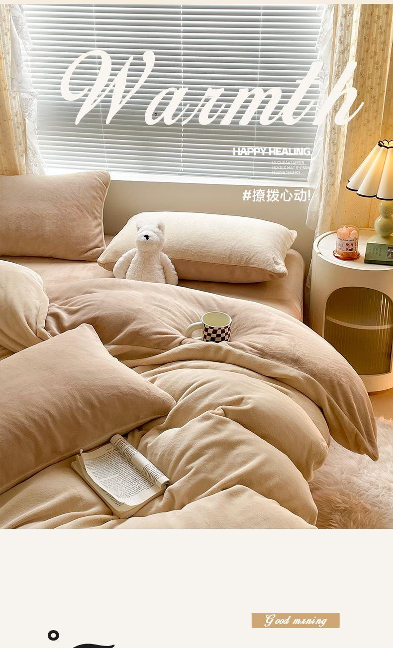百丽安娜纯色牛奶绒四件套-杏咖色