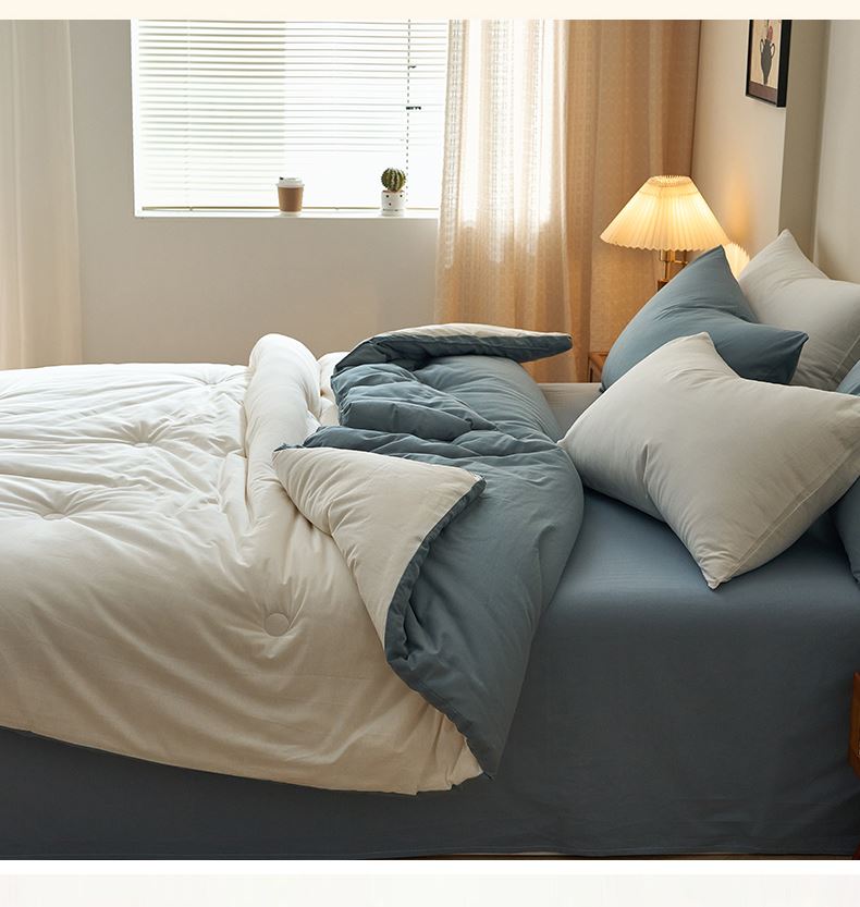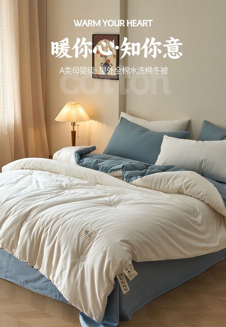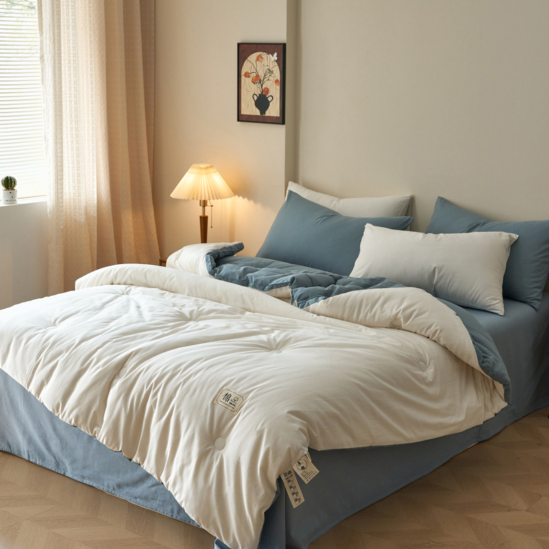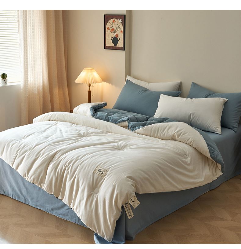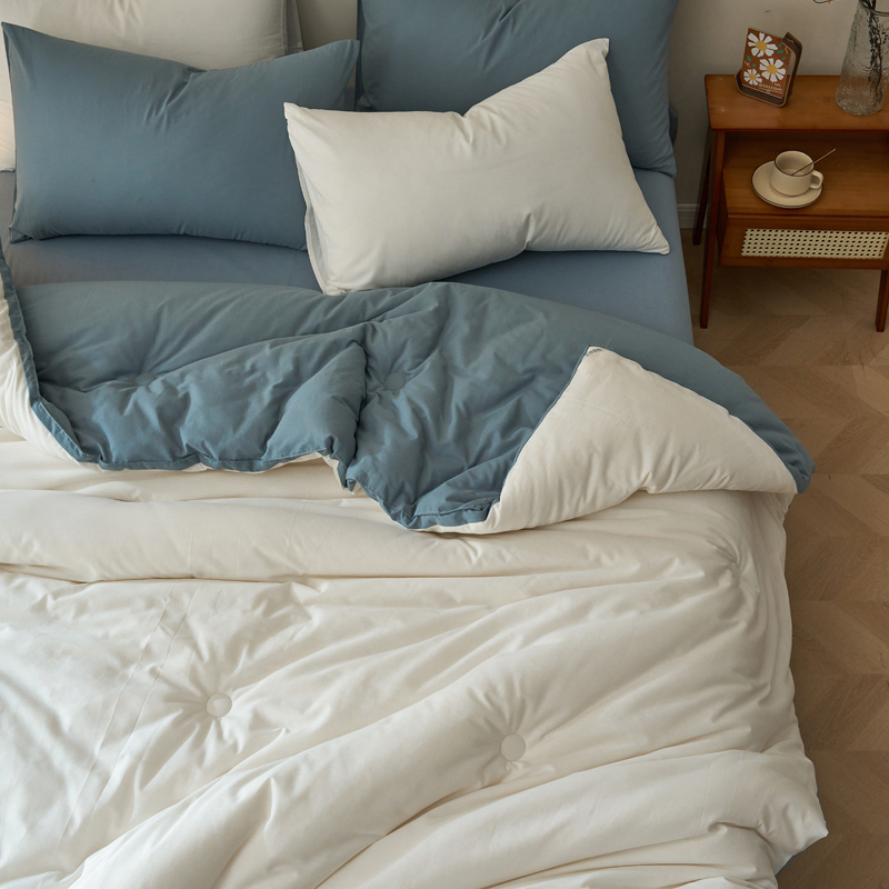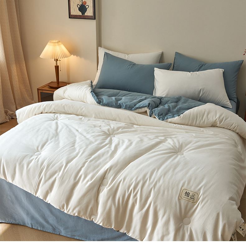 百丽安娜全棉简约风棉花被-蓝白