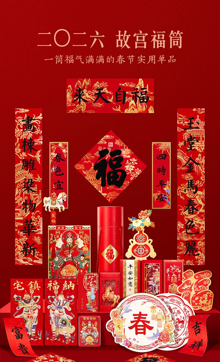 故宫福筒2026春联马年对联文创新年春节装饰本命年礼物