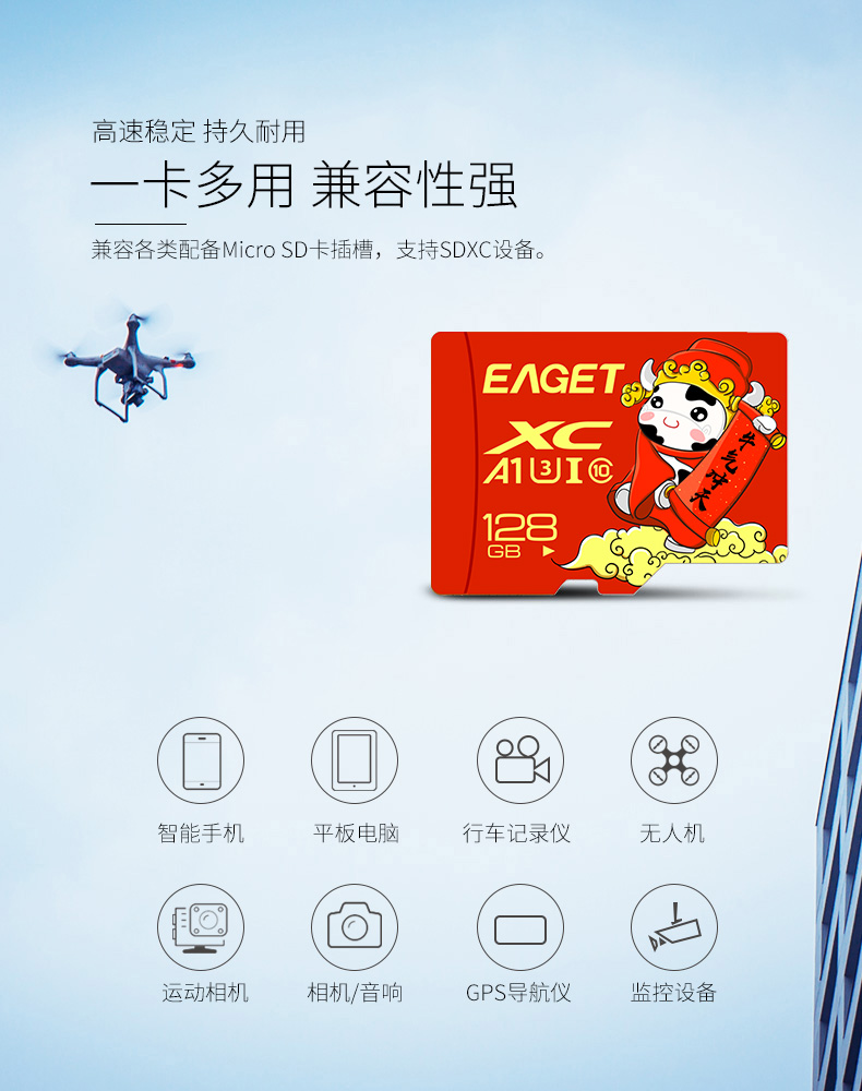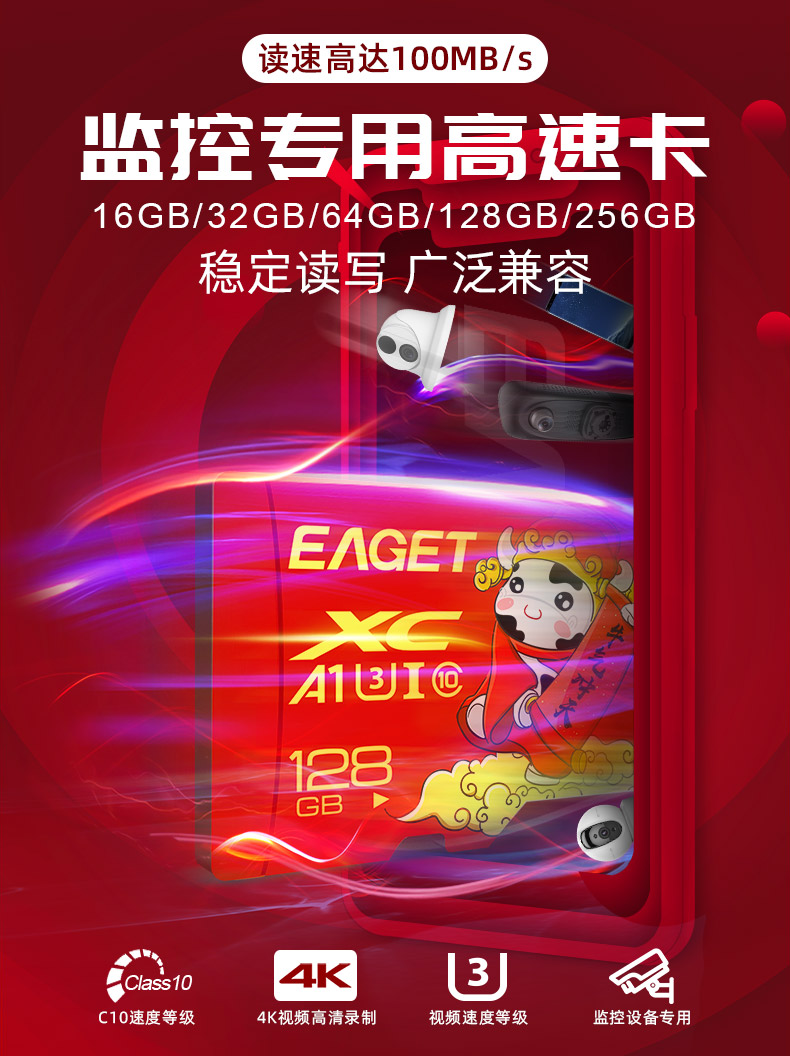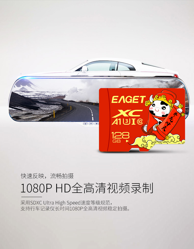 (EAGET)忆捷手机监控摄像高速行车记录仪TF卡128GB