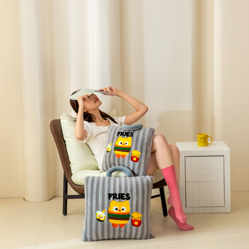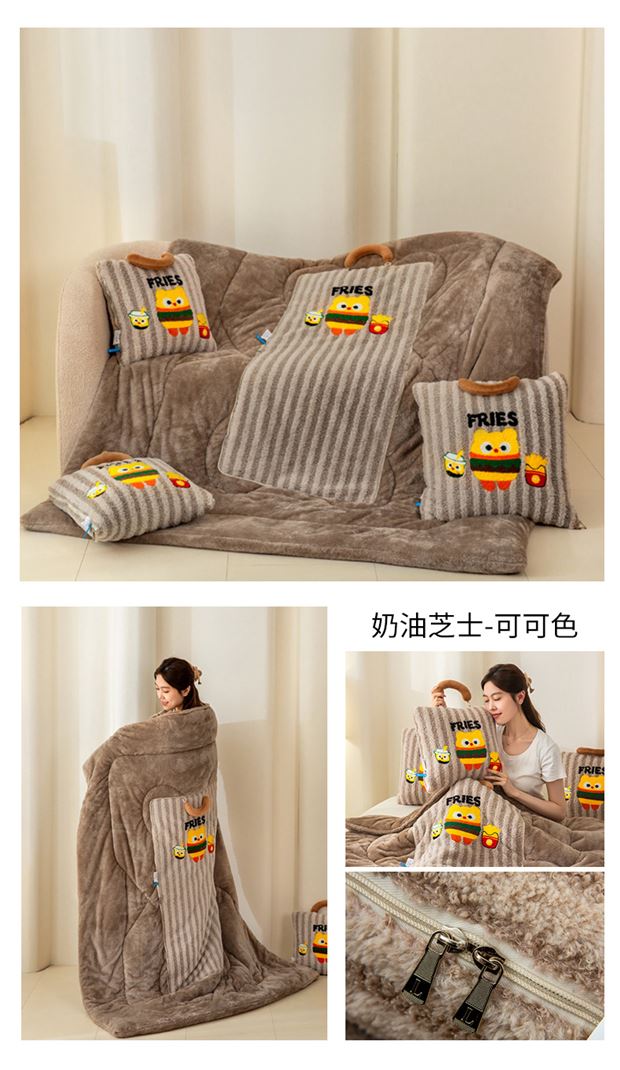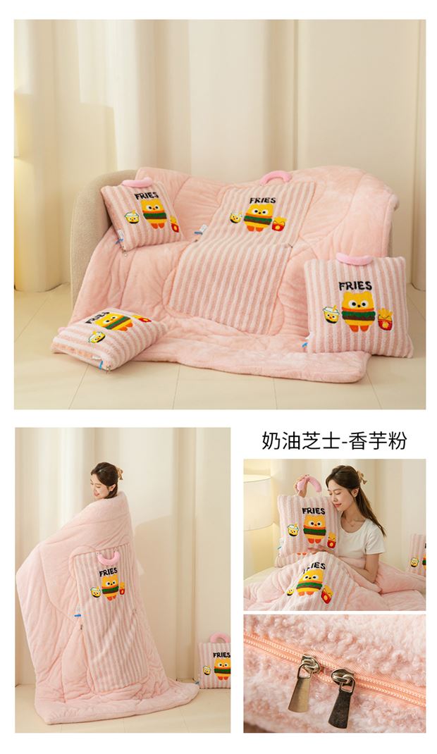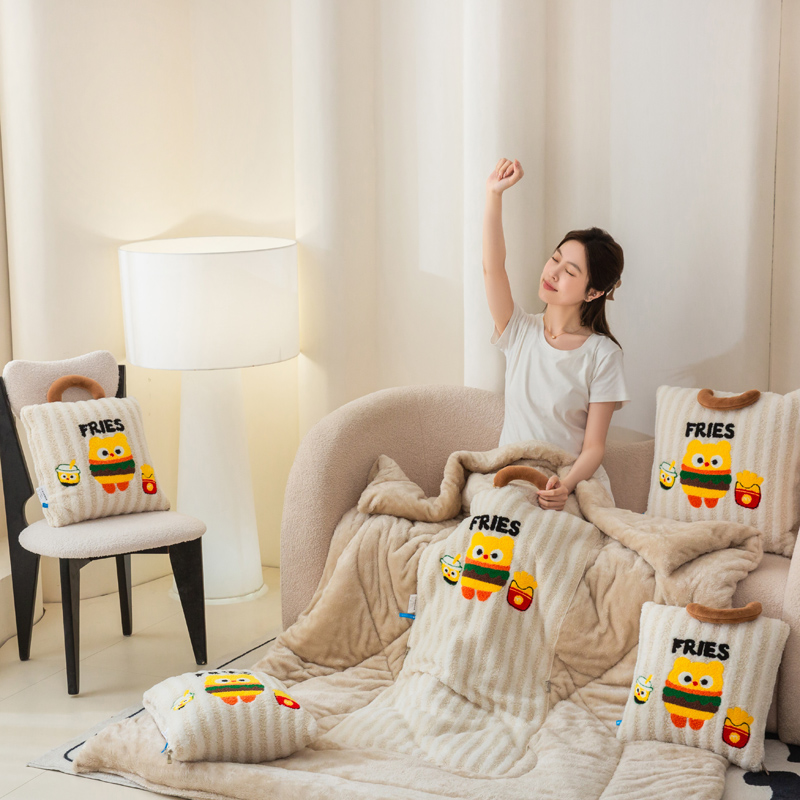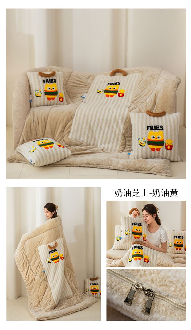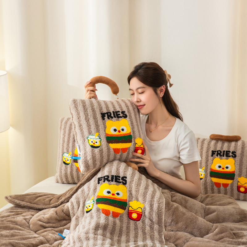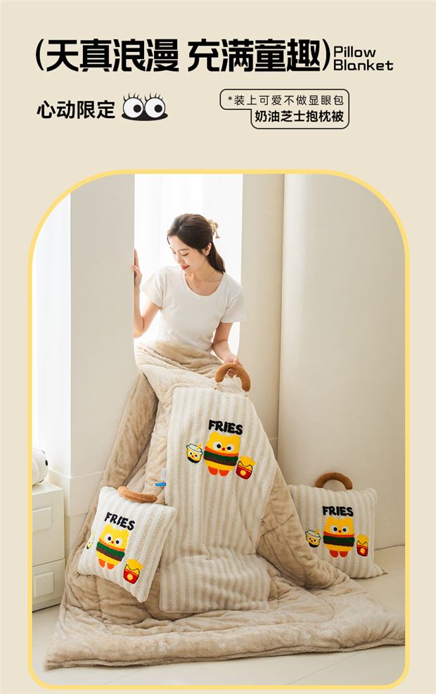 给您带来全新的产品享受!面料色彩艳丽,持久光鲜!不褪色!被子全部采长毛绒面料,柔软质感,吸湿透气, 舒适亲肤,四季好用!被子采用绗缝工艺,支持机洗、水洗! 面料:兔毛绒+泰迪绒 填充:整张羽丝棉 工艺:重工贴布绣+绗缝工艺 尺寸:40*40cm 打开100*150cm