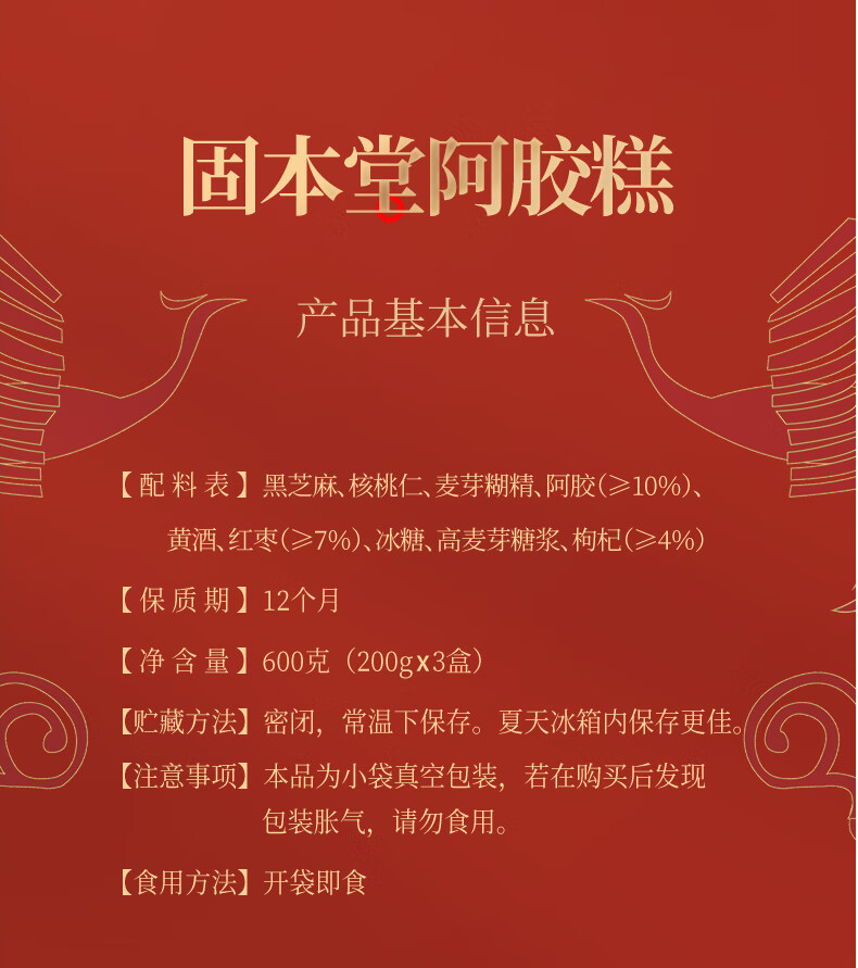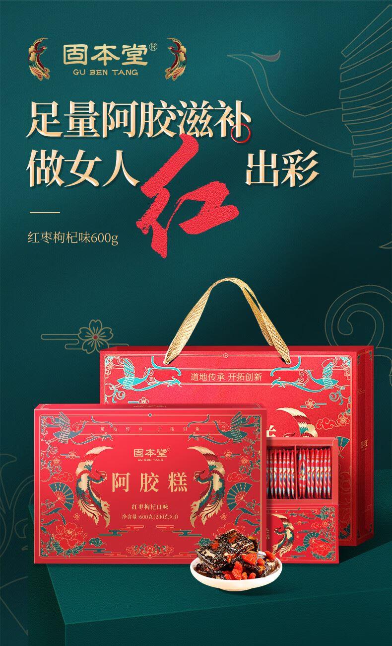 固本堂红枣枸杞阿胶糕600克礼盒(200克/盒*3)