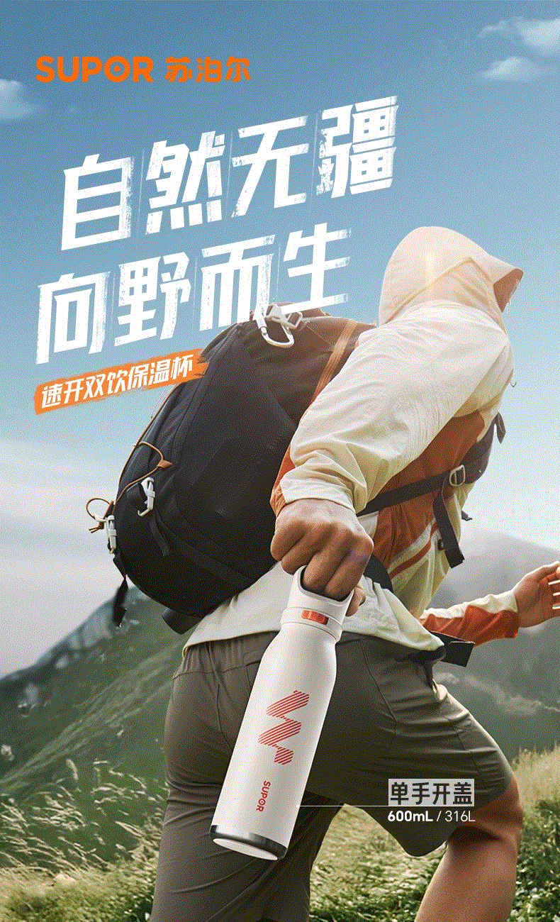 苏泊尔速开双饮运动保温杯KCV60DL20
