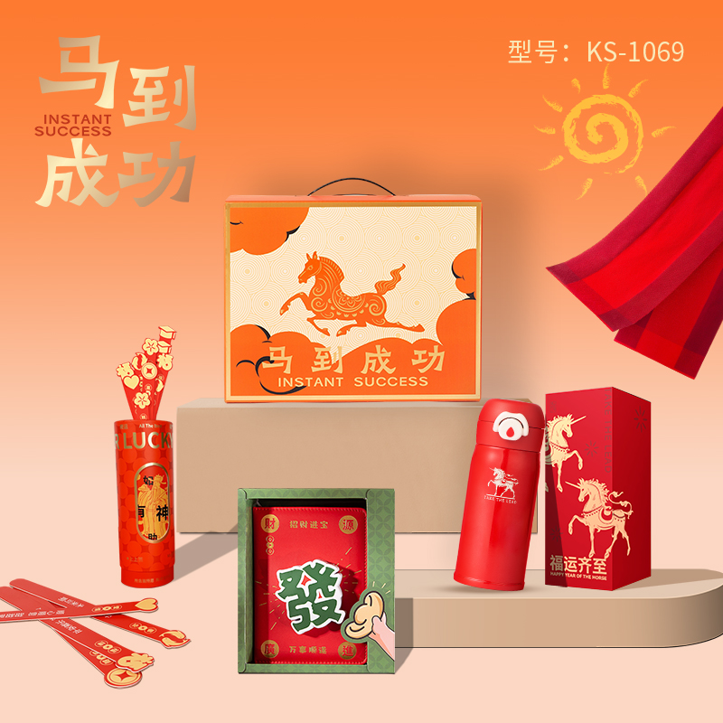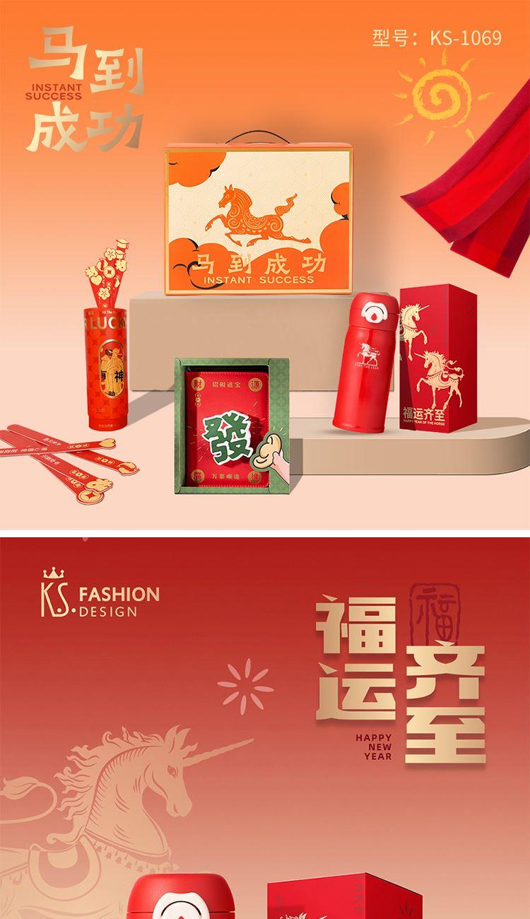 橙米撞色礼盒,搭配烫金复古骏马主题插画,时尚亮眼,新年氛围瞬间拉满。“马到成功”,是更适合商务伙伴与新老客户的新年祝福佳品,心意与寓意兼得。