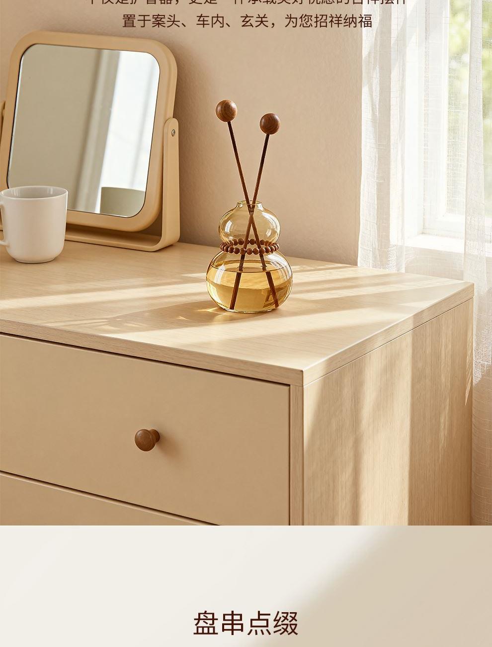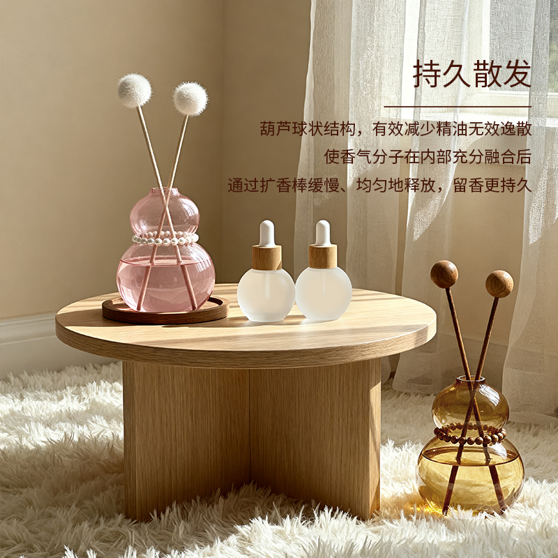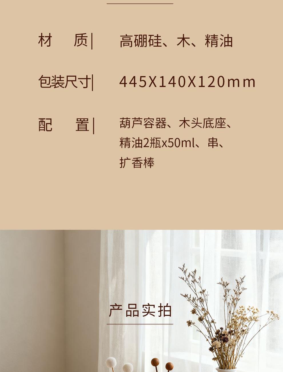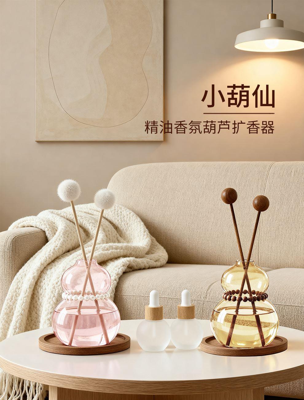 设计师说 “琉璃”呼应玻璃的通透澄澈,暗合佛家“明心见性”之境;“纳福”既指聚气生香,亦寓吉祥圆满。 匠心打造的通透琉璃葫身,如冰似玉,光影流转间美不胜收。葫芦乃中华传统吉祥符号,寓意“福禄双全”,不仅是香薰,更是一件守护家宅、招祥纳瑞的雅致摆件。 无声胜有声,有香如仙至 产品配置:小葫芦容器1,香薰精油50ml×2,檀木串1,扩香棒1